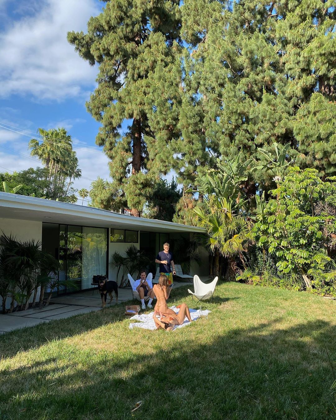 Эмили с мужем Себастьяном Бир-Макклардом и друзьями проводят карантин вместе. Обе пары в честь праздника развлекались в самоизоляции в саду и загорали.