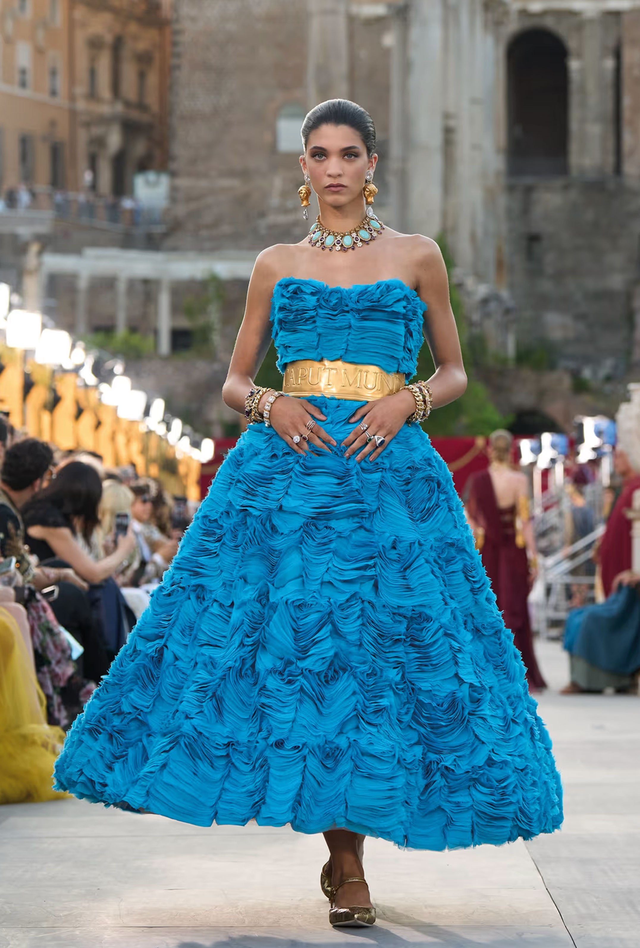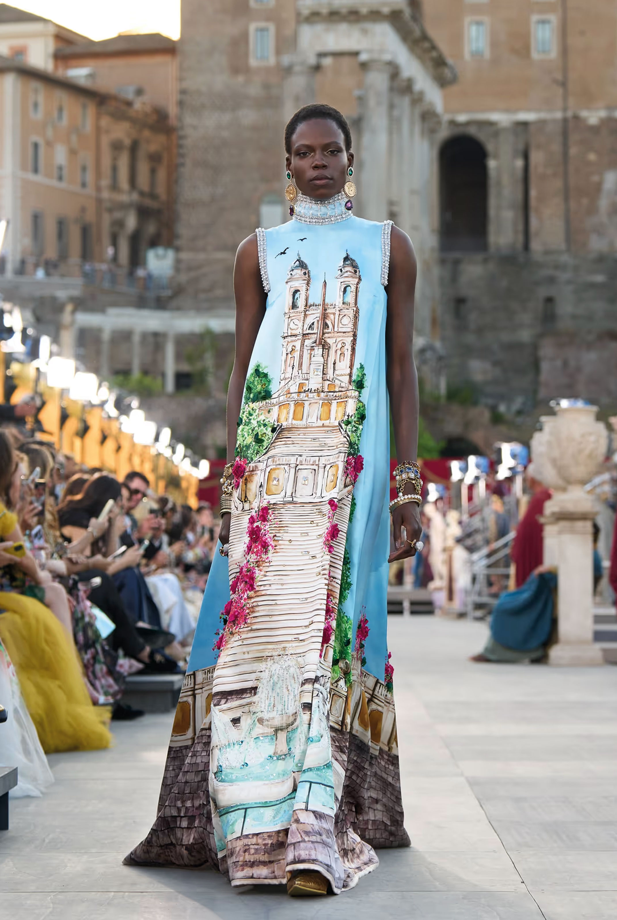 Римський форум — частина археологічного комплексу Parco Archeologico del Colosseo й колишній центр політичного та культурного життя Римської імперії — став локацією для показу колекції Dolce&Gabbana Alta Moda. Унікальні кутюрні образи органічно вписалися у простір Via Sacra, надавши йому позачасової виразності.