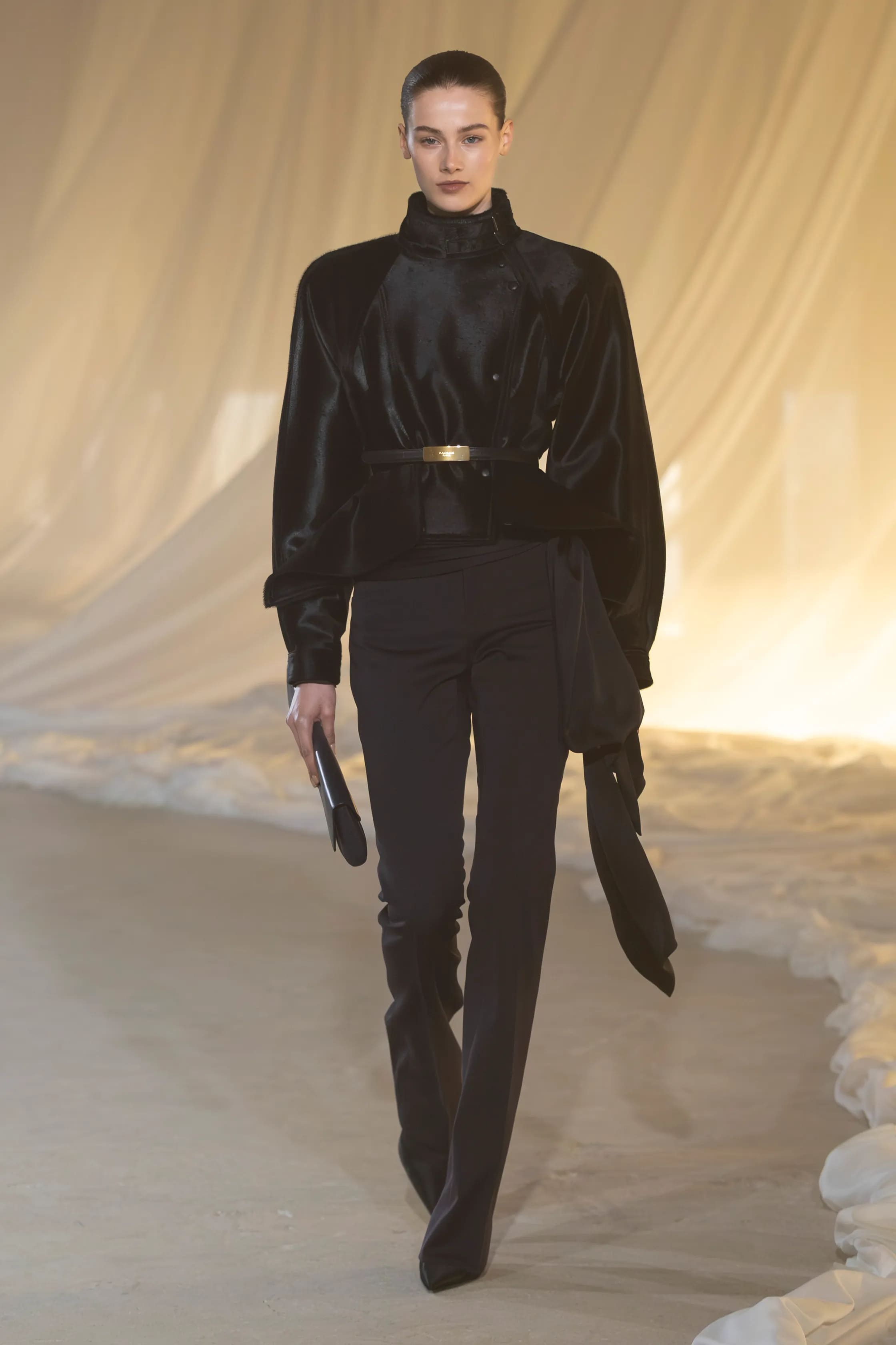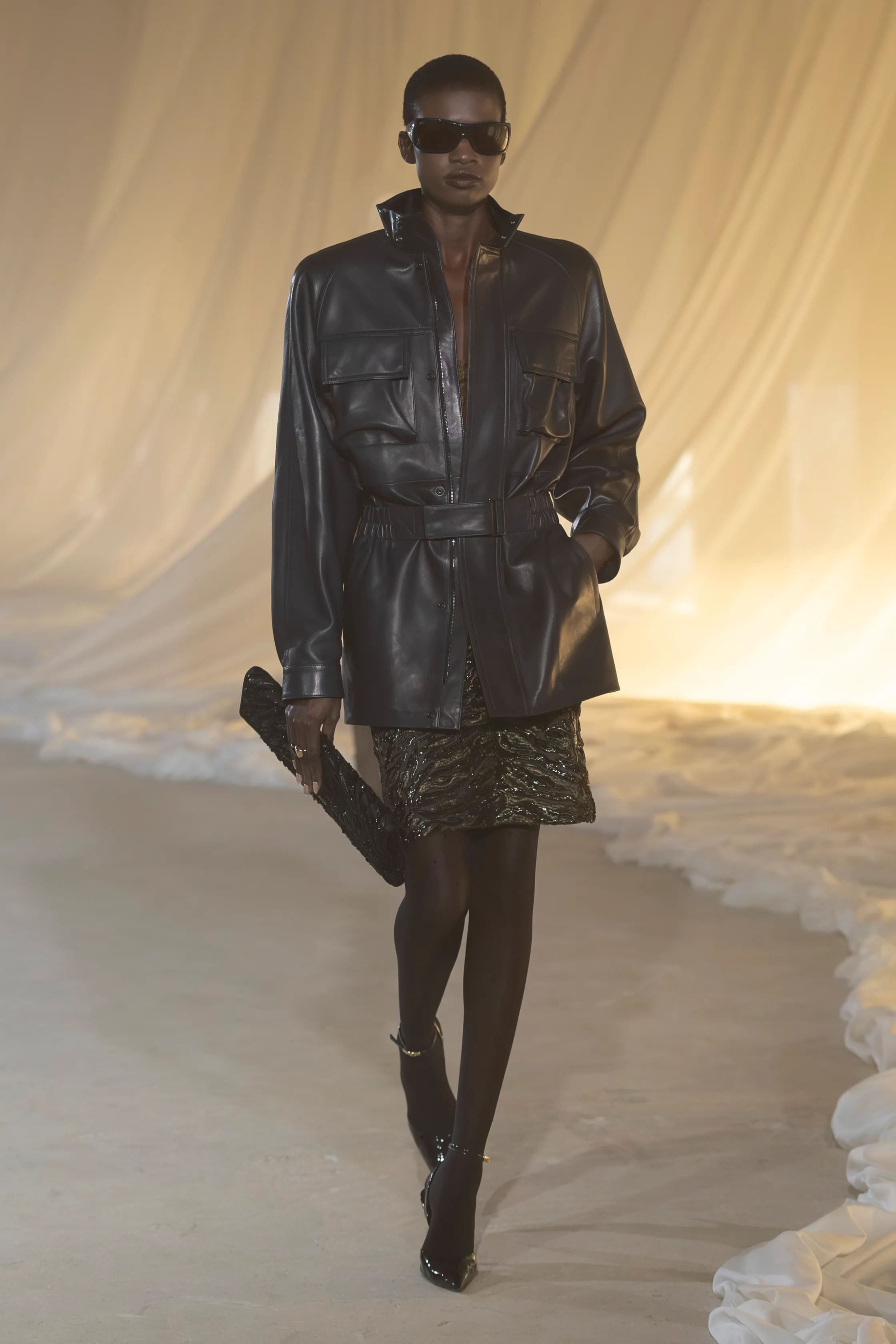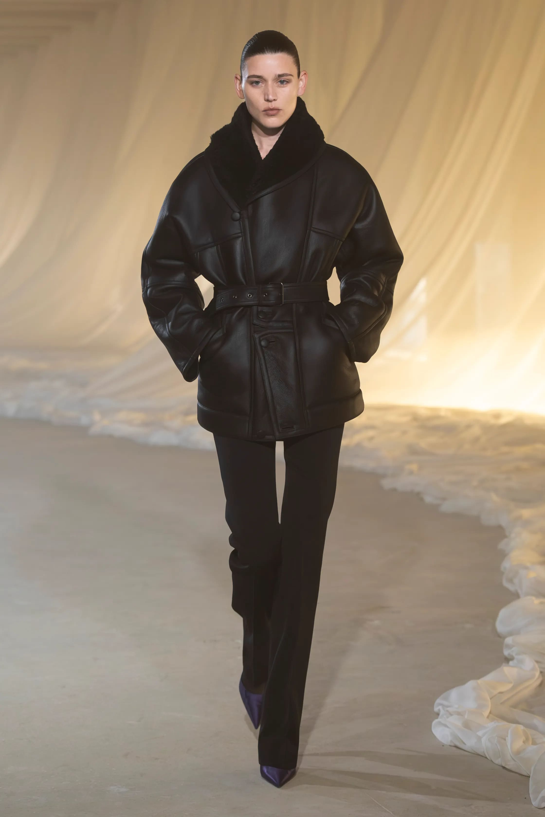 У дебютному образі з колекції fall-winter — 2026/27 Антонен Трон поєднав матову шкіряну куртку з класичними брюками. Водночас інша частина шоу відтворювала ранні етапи кар’єри П’єра Бальмена та становлення його як кутюрьє. М’які лінії контрастували з графічними формами, шкіра змінювала вовну та шовк, а анімалістичні мотиви доповнювалися безпрограшною комбінацією з чорним.