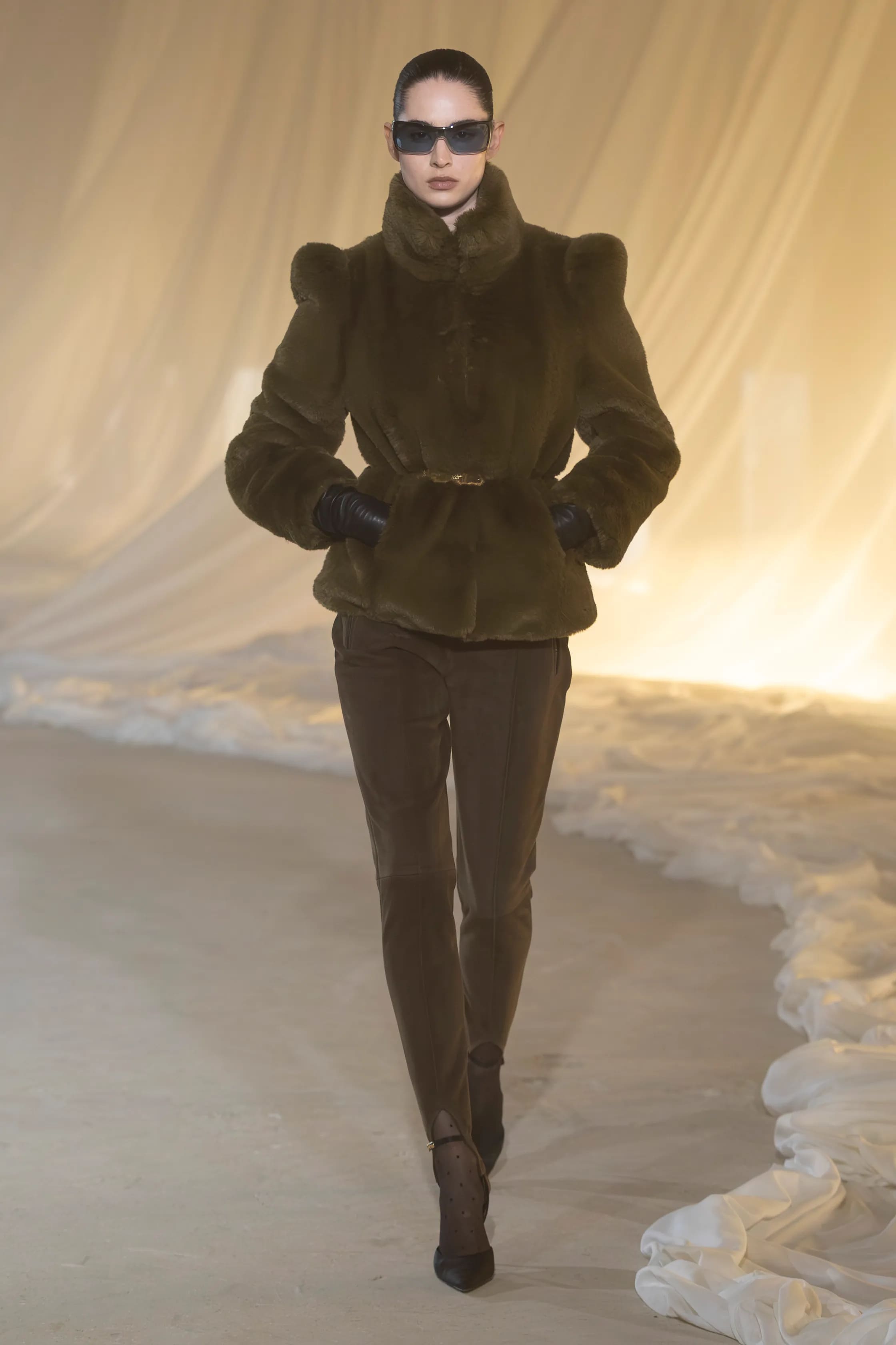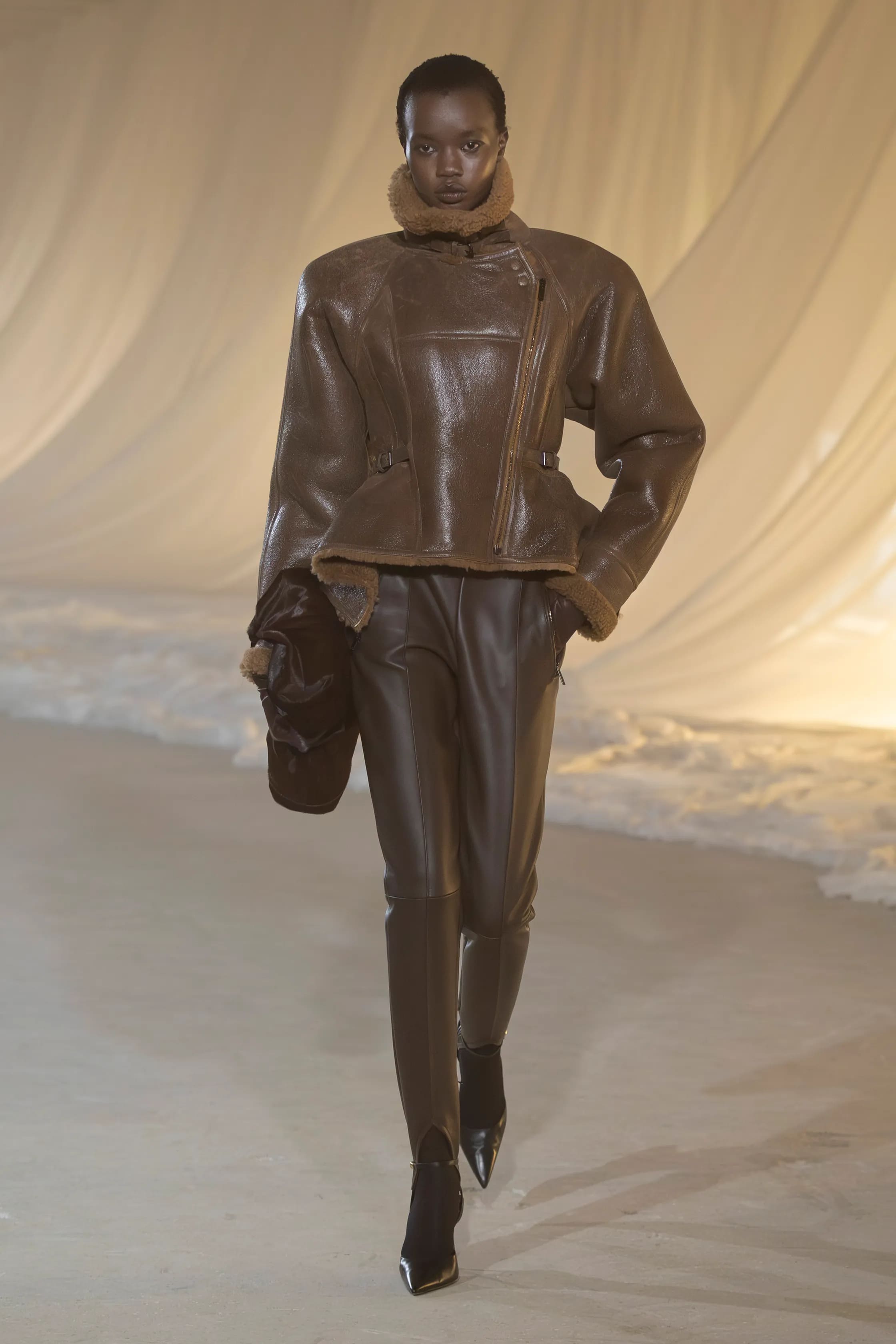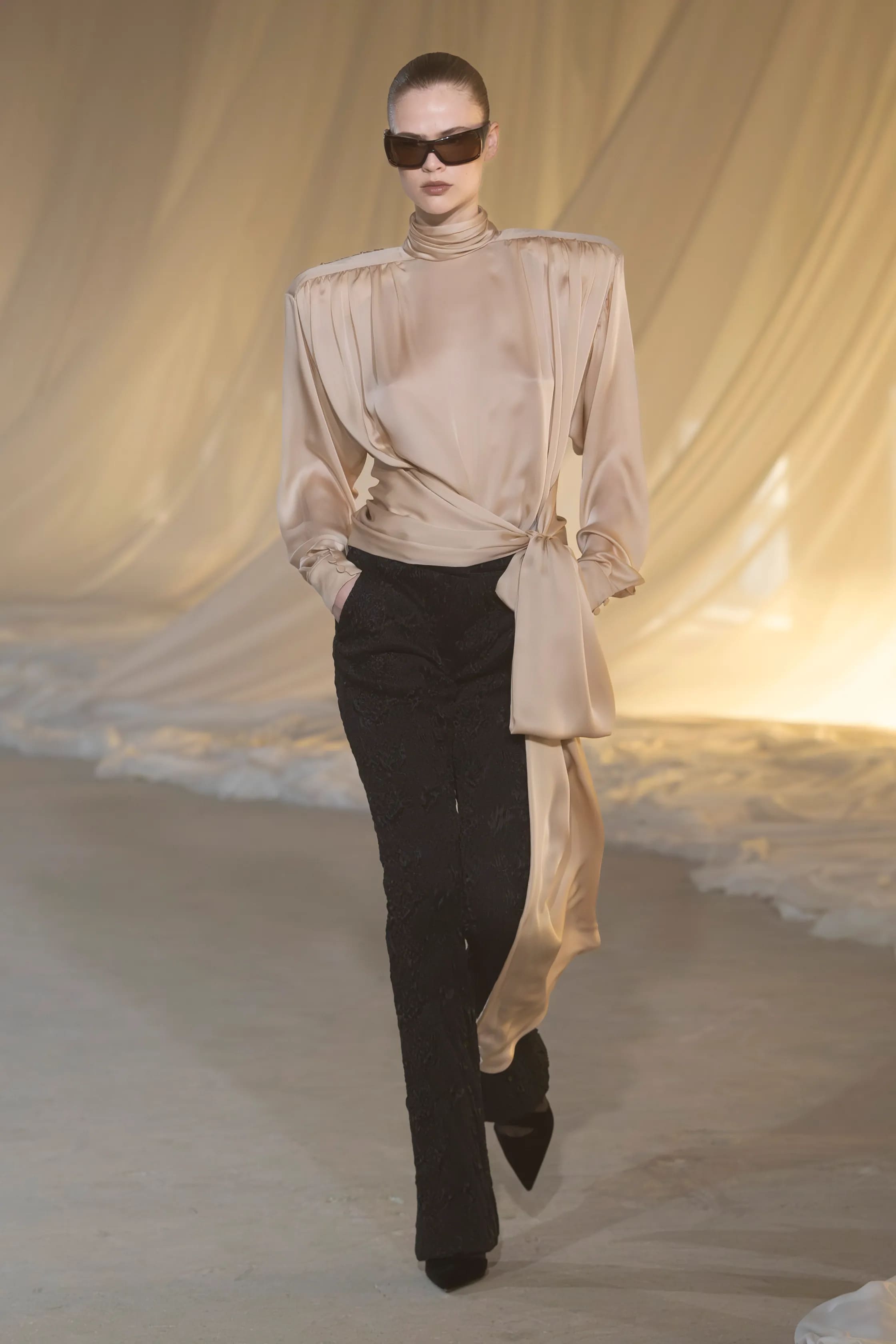 У дебютному образі з колекції fall-winter — 2026/27 Антонен Трон поєднав матову шкіряну куртку з класичними брюками. Водночас інша частина шоу відтворювала ранні етапи кар’єри П’єра Бальмена та становлення його як кутюрьє. М’які лінії контрастували з графічними формами, шкіра змінювала вовну та шовк, а анімалістичні мотиви доповнювалися безпрограшною комбінацією з чорним.