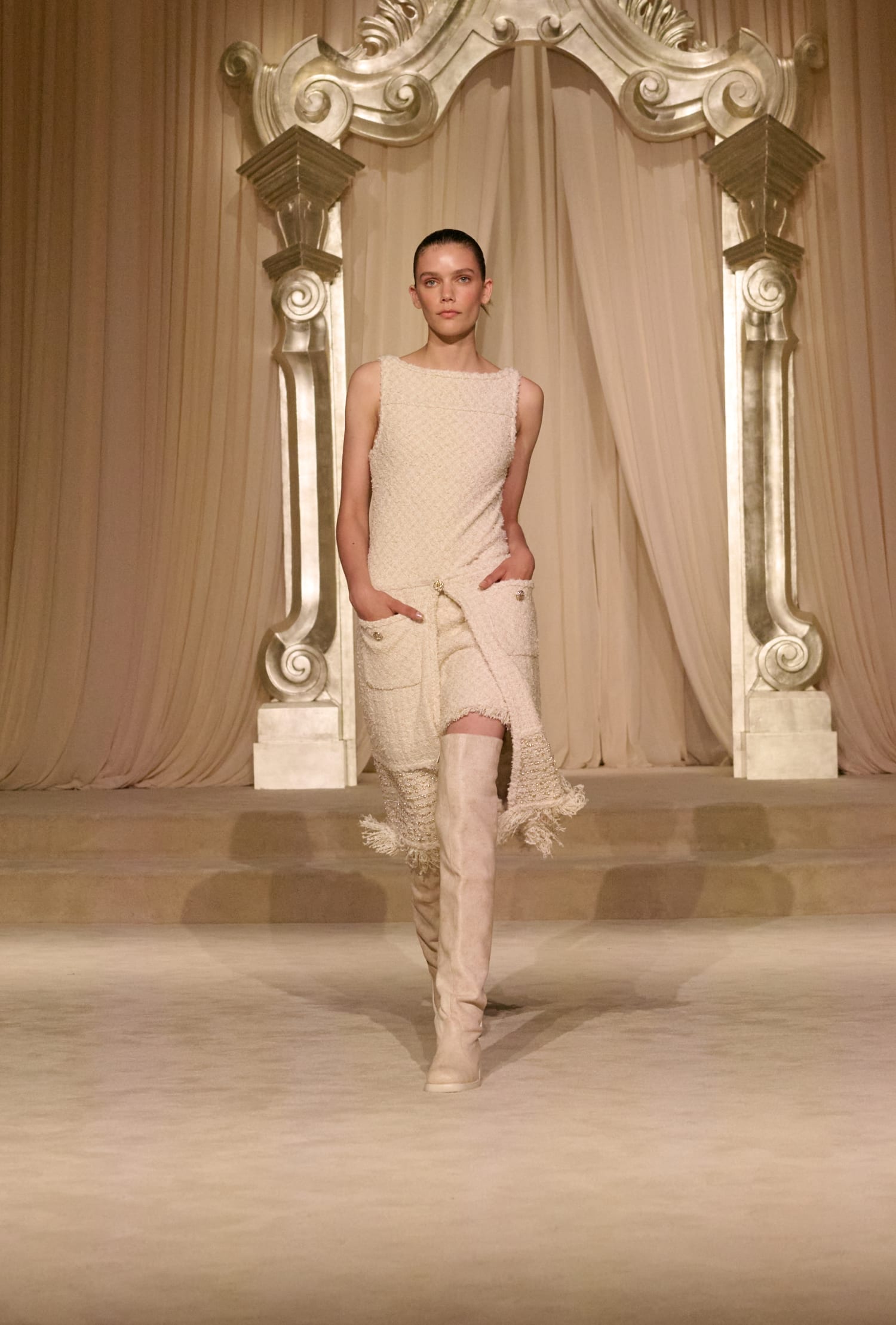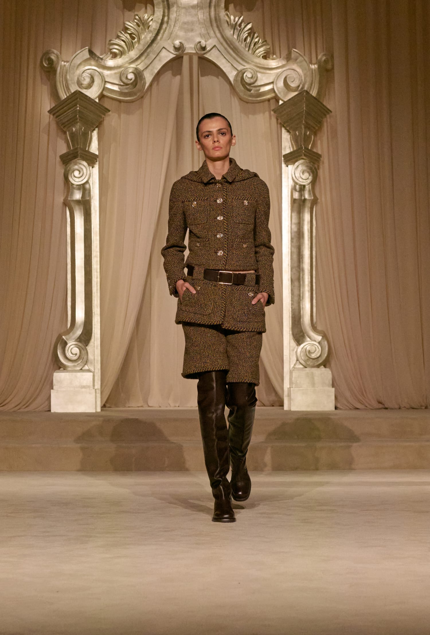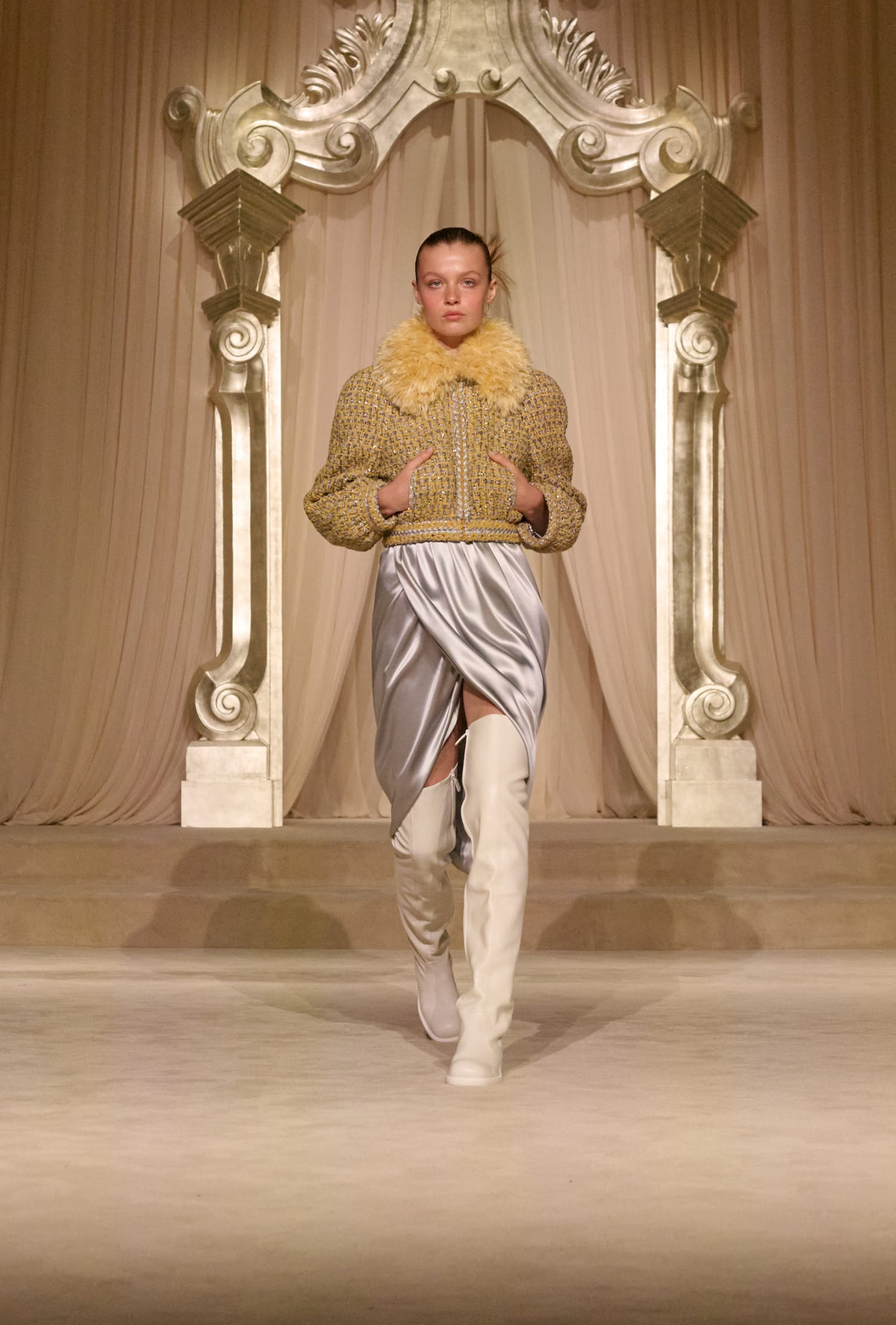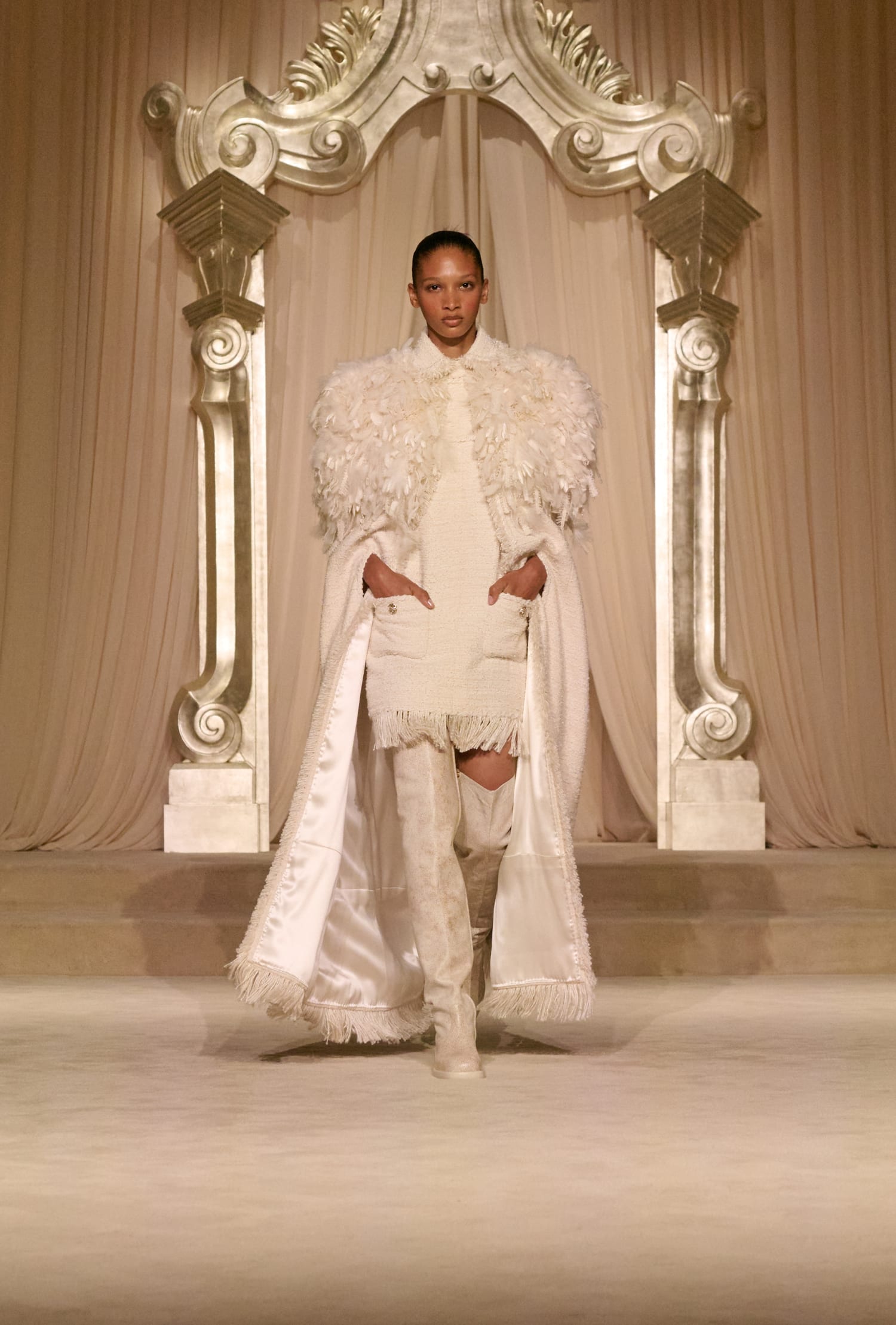 Для показу кутюрної колекції fall-winter — 2025 Сhanel перевтілили залу Grand Palais в салон на вулиці Рю Камбон. У своєму новому шоу для паризького Тижня моди Дім звертався за натхненням до внутрішньої жаги Габрієль Шанель до простоти та легкості. Ці ж мотиви креативне ательє дому втілило у новій колекції, яка відзначилася пасторальними мотивами.