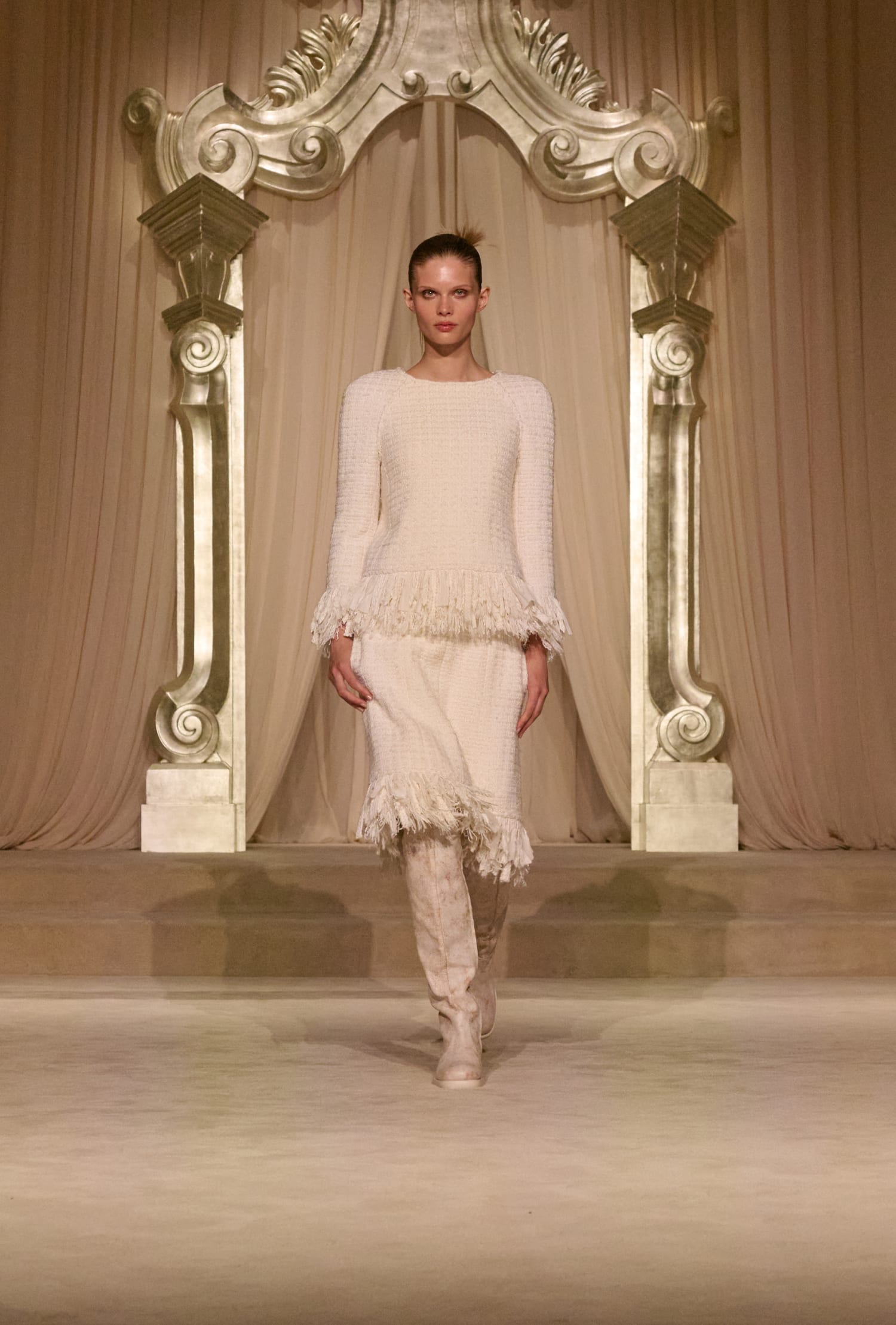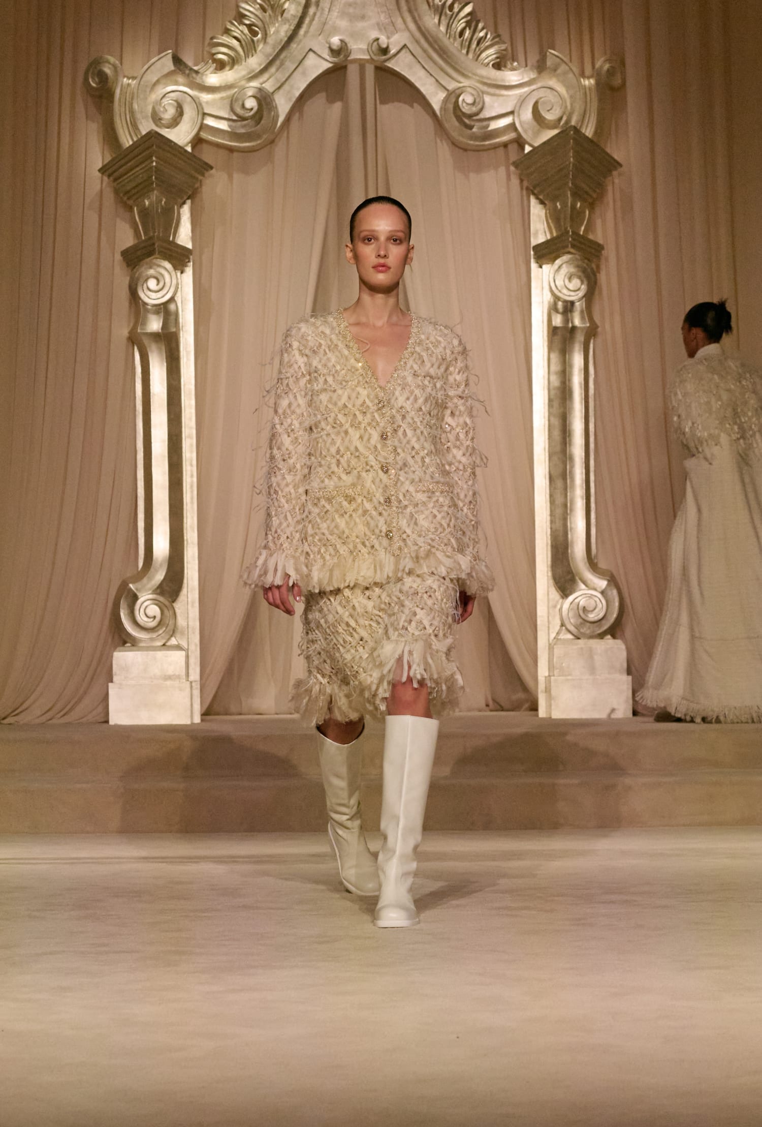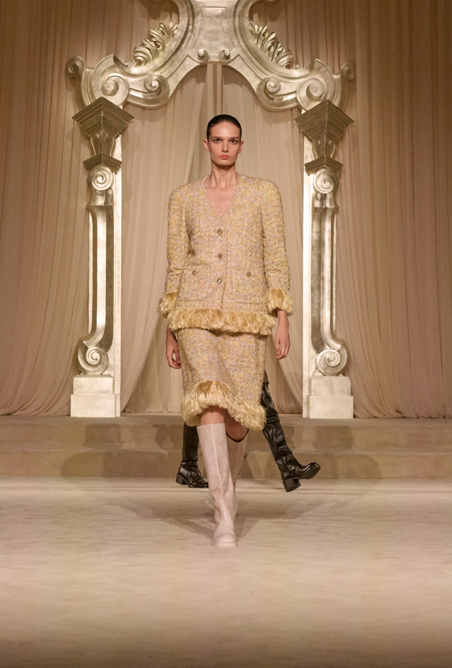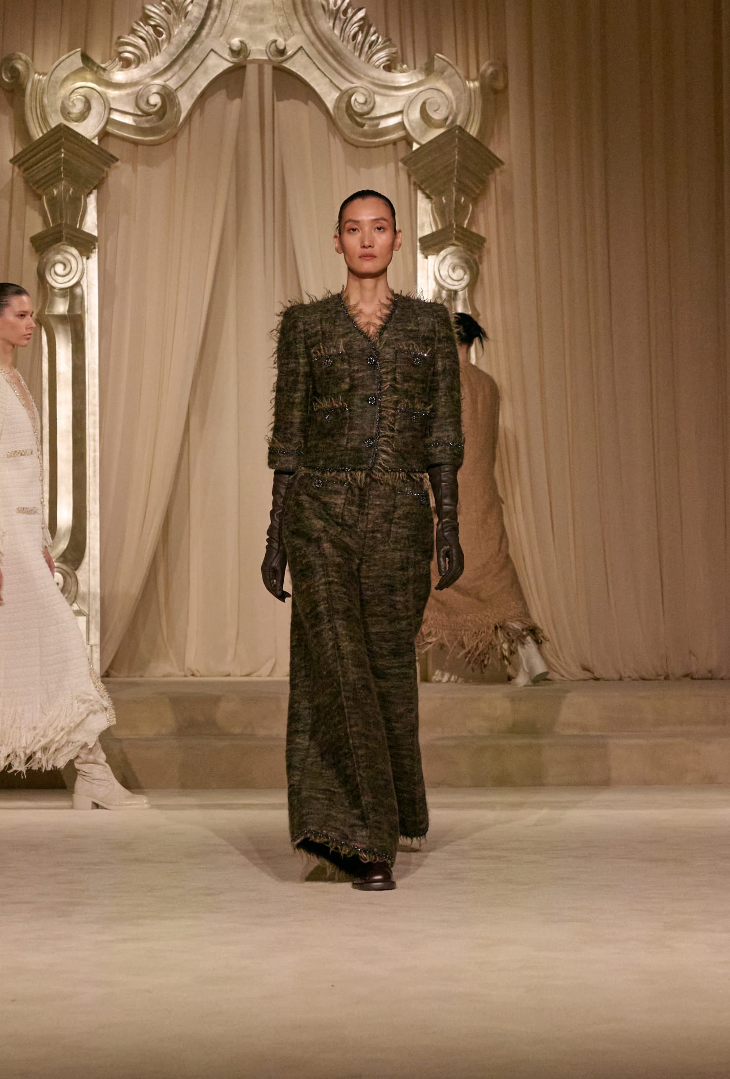 Твід у кутюрній колекції сезону fall-winter — 2026 здобув різних варіацій. Окрім класичних його текстур, на подіумі з’явився «пухнастий» костюм-двійка зі спідницею, а також твід, розшитий натуральним пір’ям. Інших об’ємних декоративних елементів теж виявилося немало: образи прикрашала вишивка квітами та лелітками, бахрома та драпірування з хутра та фатину.