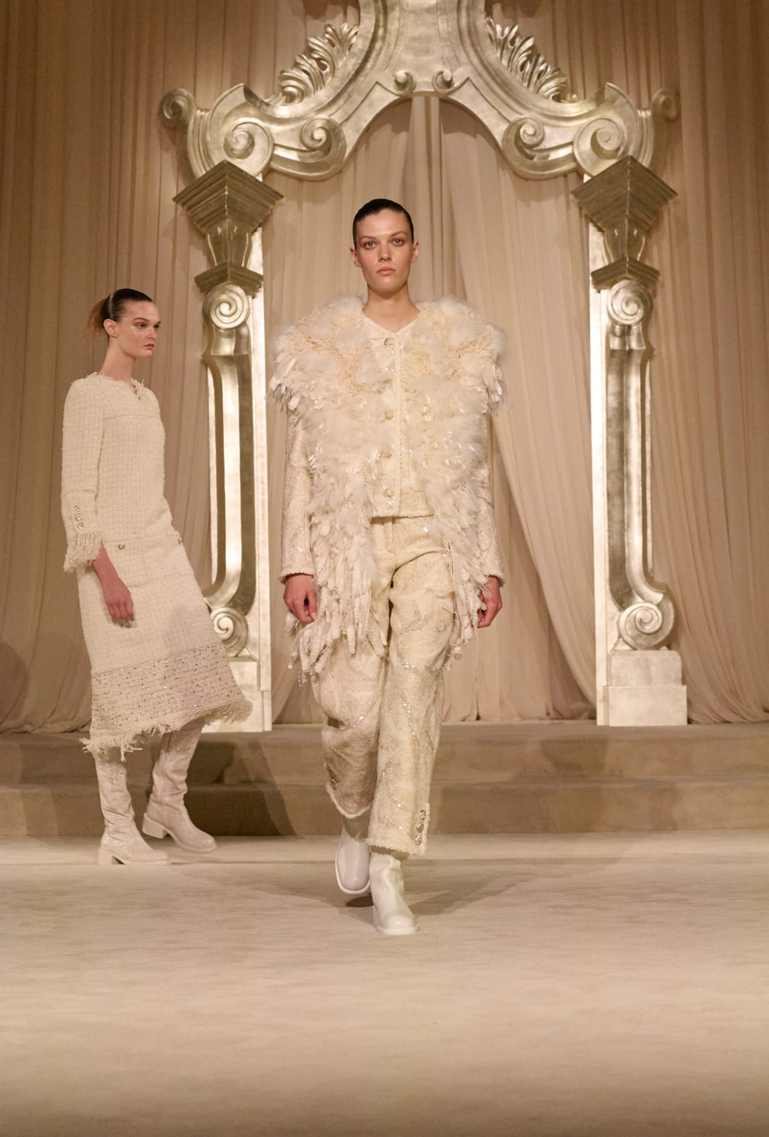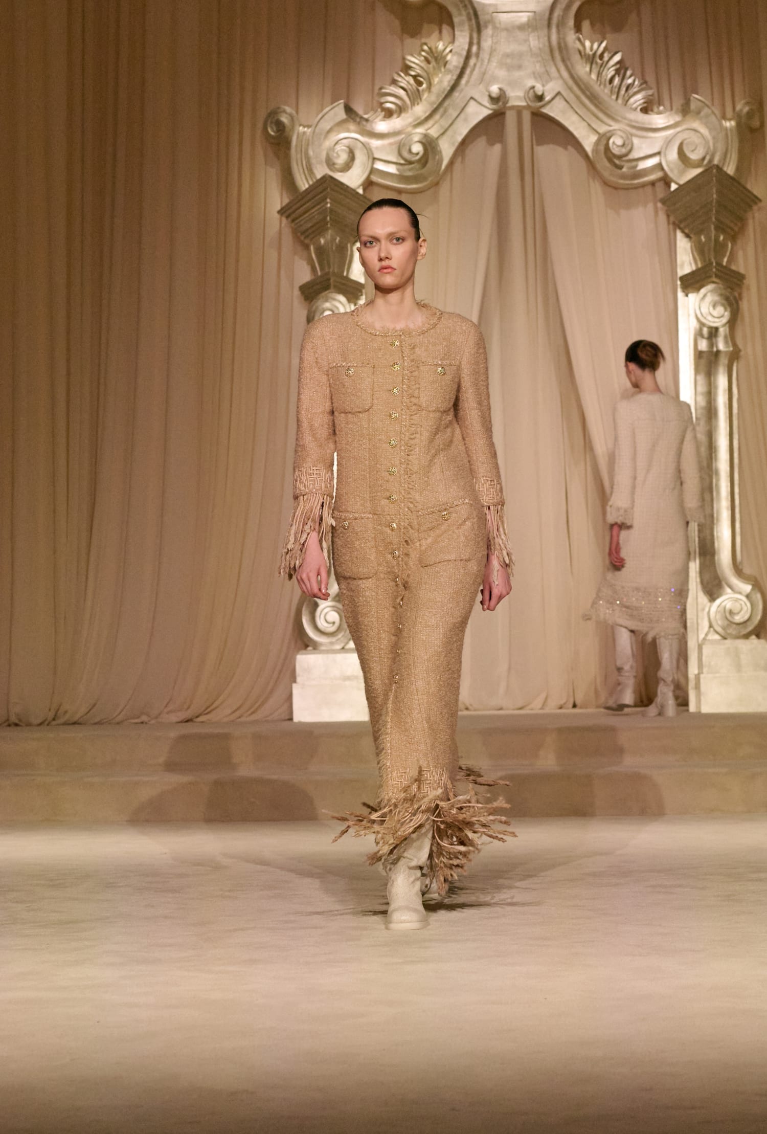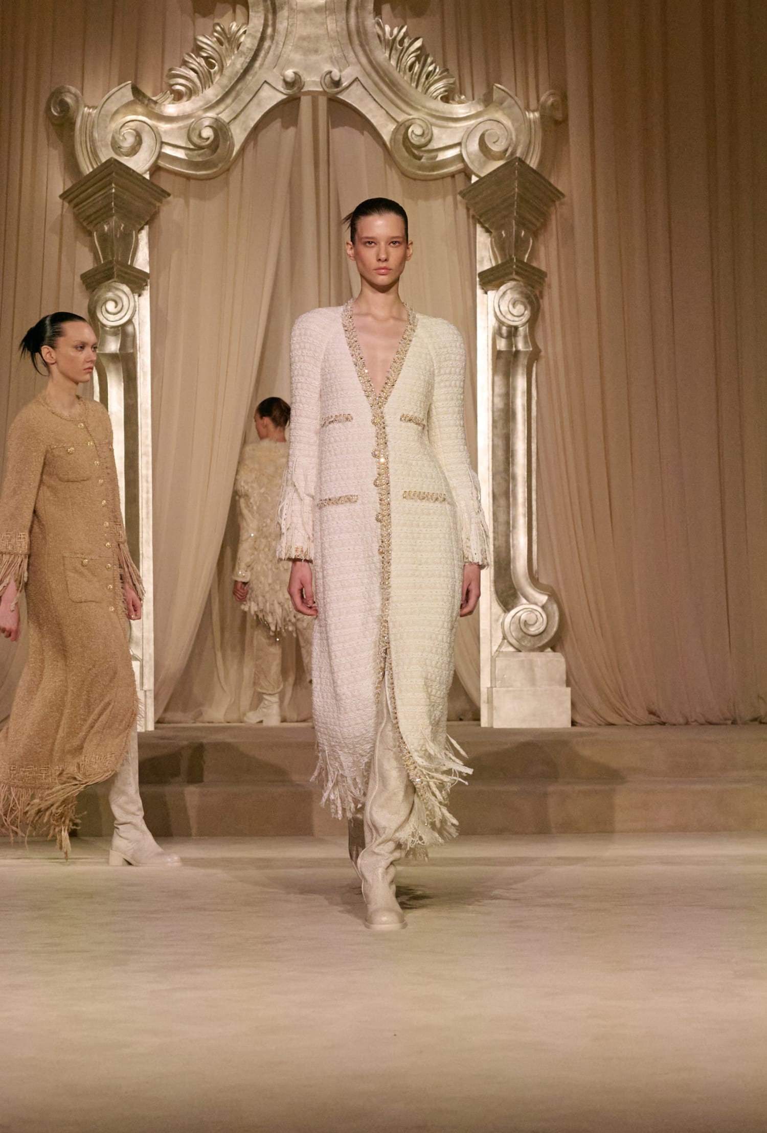 Твід у кутюрній колекції сезону fall-winter — 2026 здобув різних варіацій. Окрім класичних його текстур, на подіумі з’явився «пухнастий» костюм-двійка зі спідницею, а також твід, розшитий натуральним пір’ям. Інших об’ємних декоративних елементів теж виявилося немало: образи прикрашала вишивка квітами та лелітками, бахрома та драпірування з хутра та фатину.