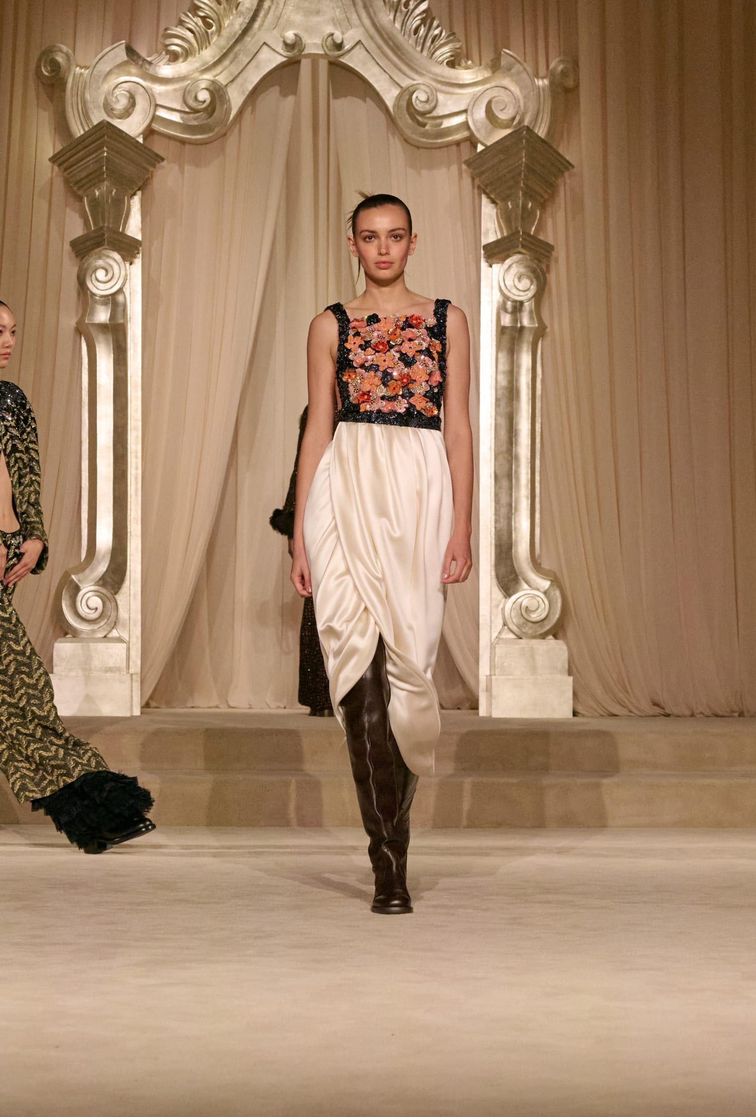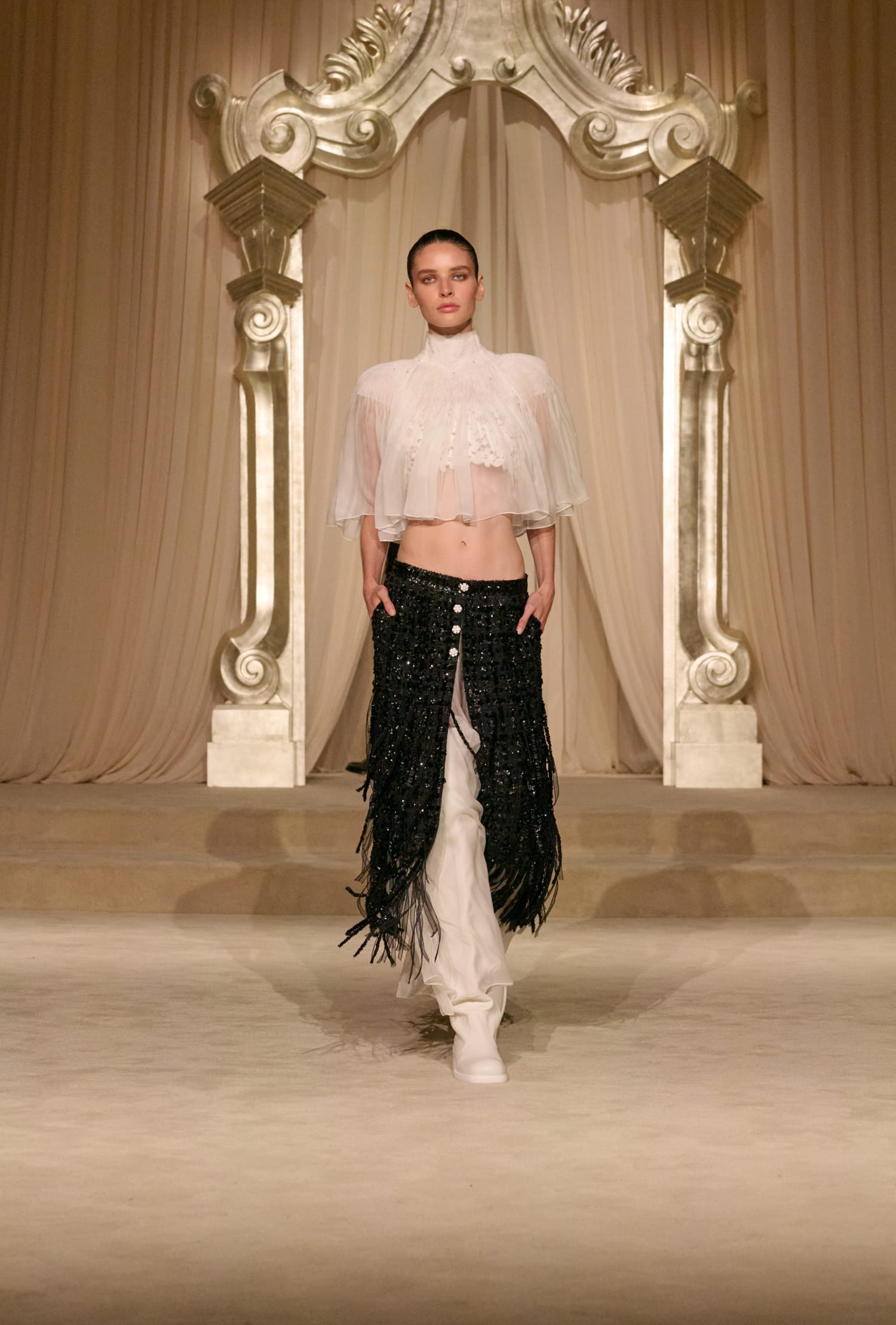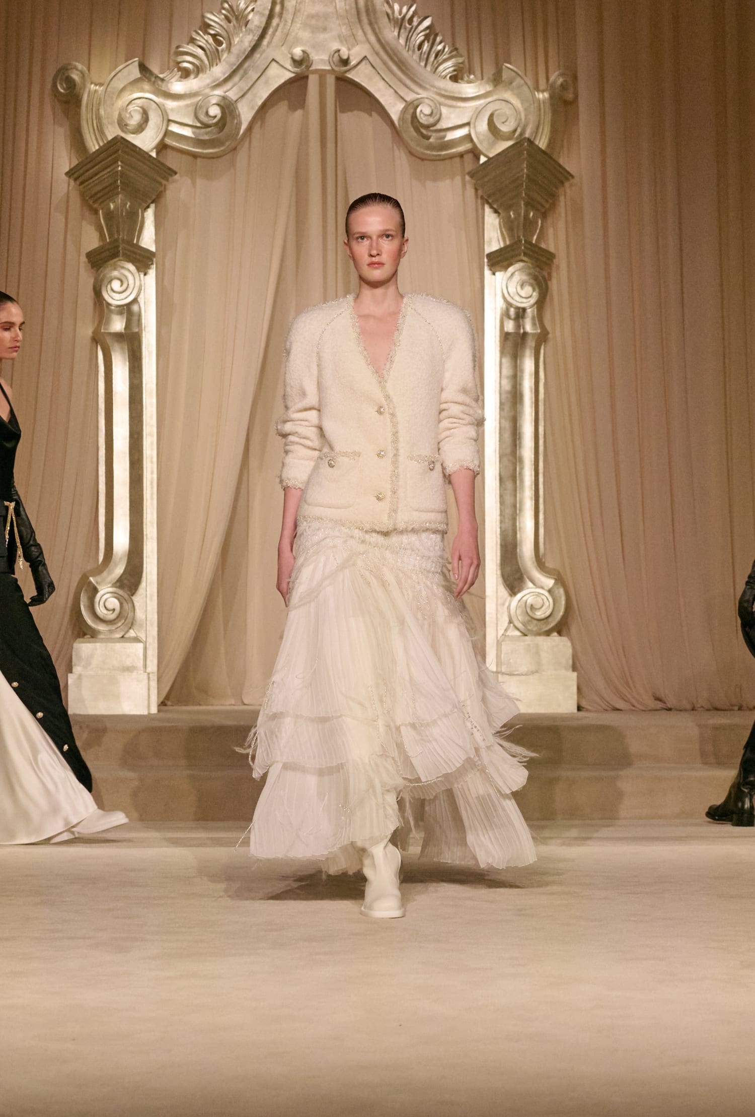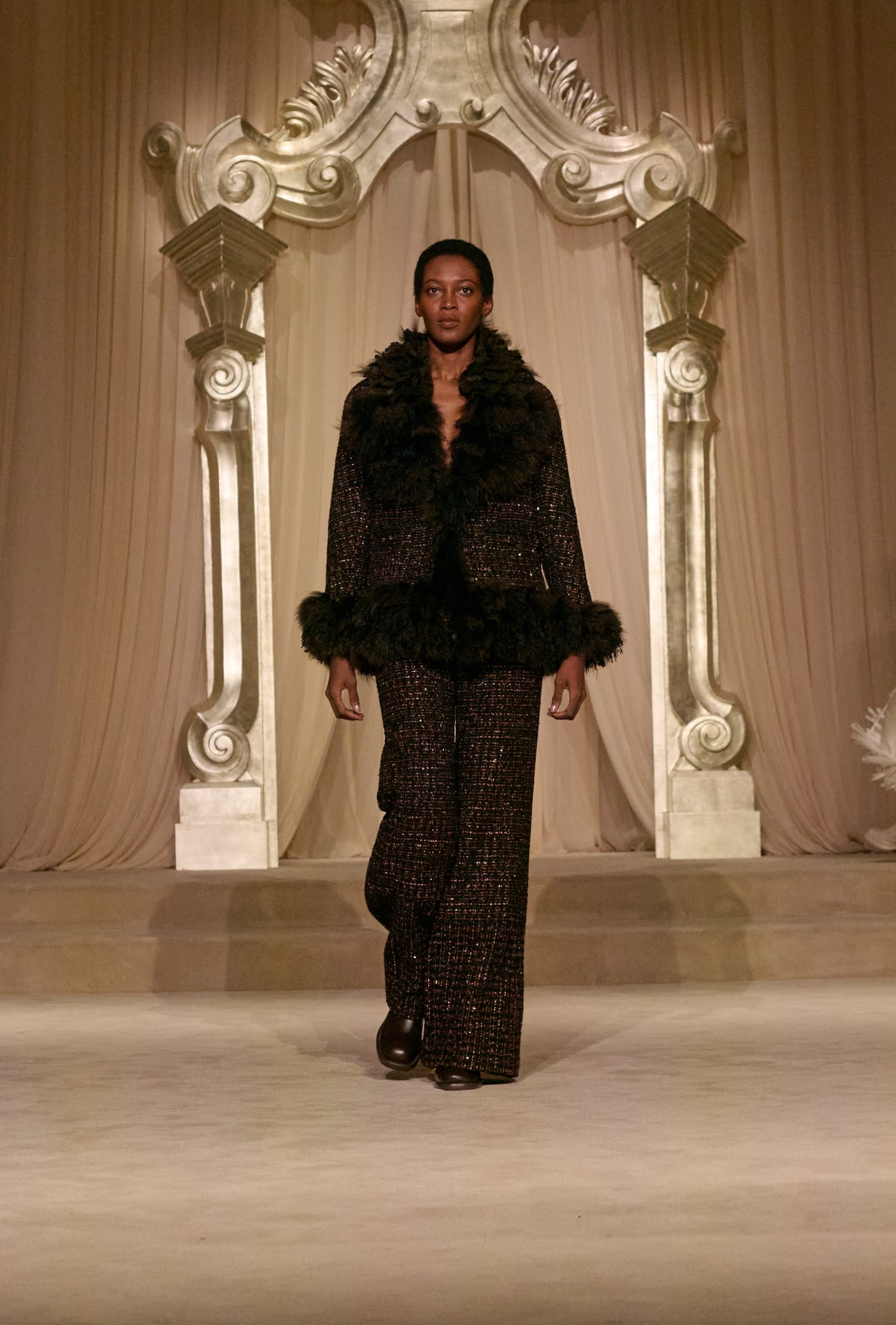 Твід у кутюрній колекції сезону fall-winter — 2026 здобув різних варіацій. Окрім класичних його текстур, на подіумі з’явився «пухнастий» костюм-двійка зі спідницею, а також твід, розшитий натуральним пір’ям. Інших об’ємних декоративних елементів теж виявилося немало: образи прикрашала вишивка квітами та лелітками, бахрома та драпірування з хутра та фатину.