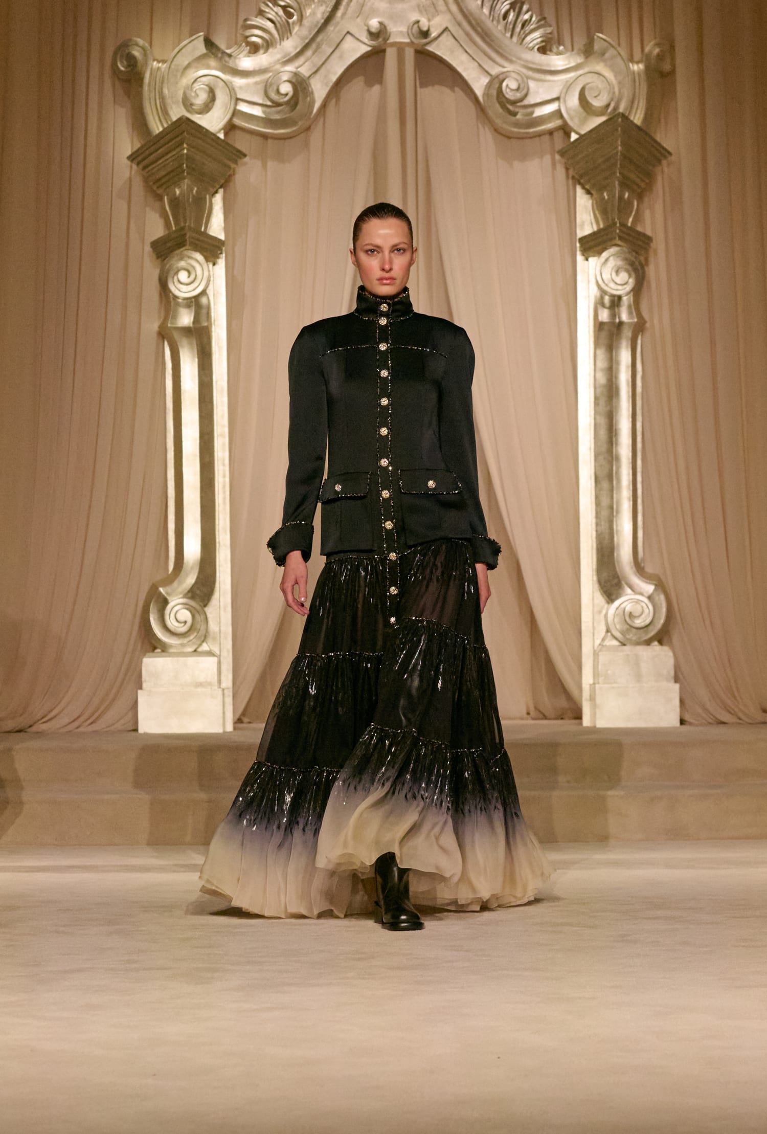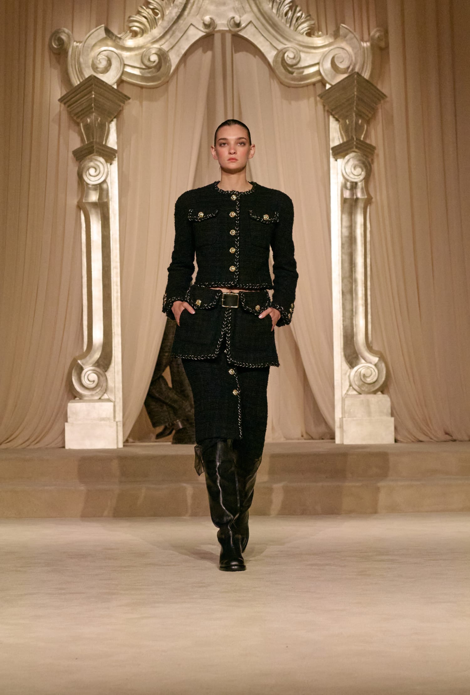 Серед інших елементів колекції Сhanel Haute Couture — сукні та спідниці в довжині максі, напівпрозорі та шовкові блузи, жилети та болеро, кейпи як найтрендовіший елемент гардеробу майбутніх сезонів. Водночас за стилізацію образів відповідали чоботи та ботфорти з гладкої шкіри, довгі рукавички та ремені з золотими пряжками.