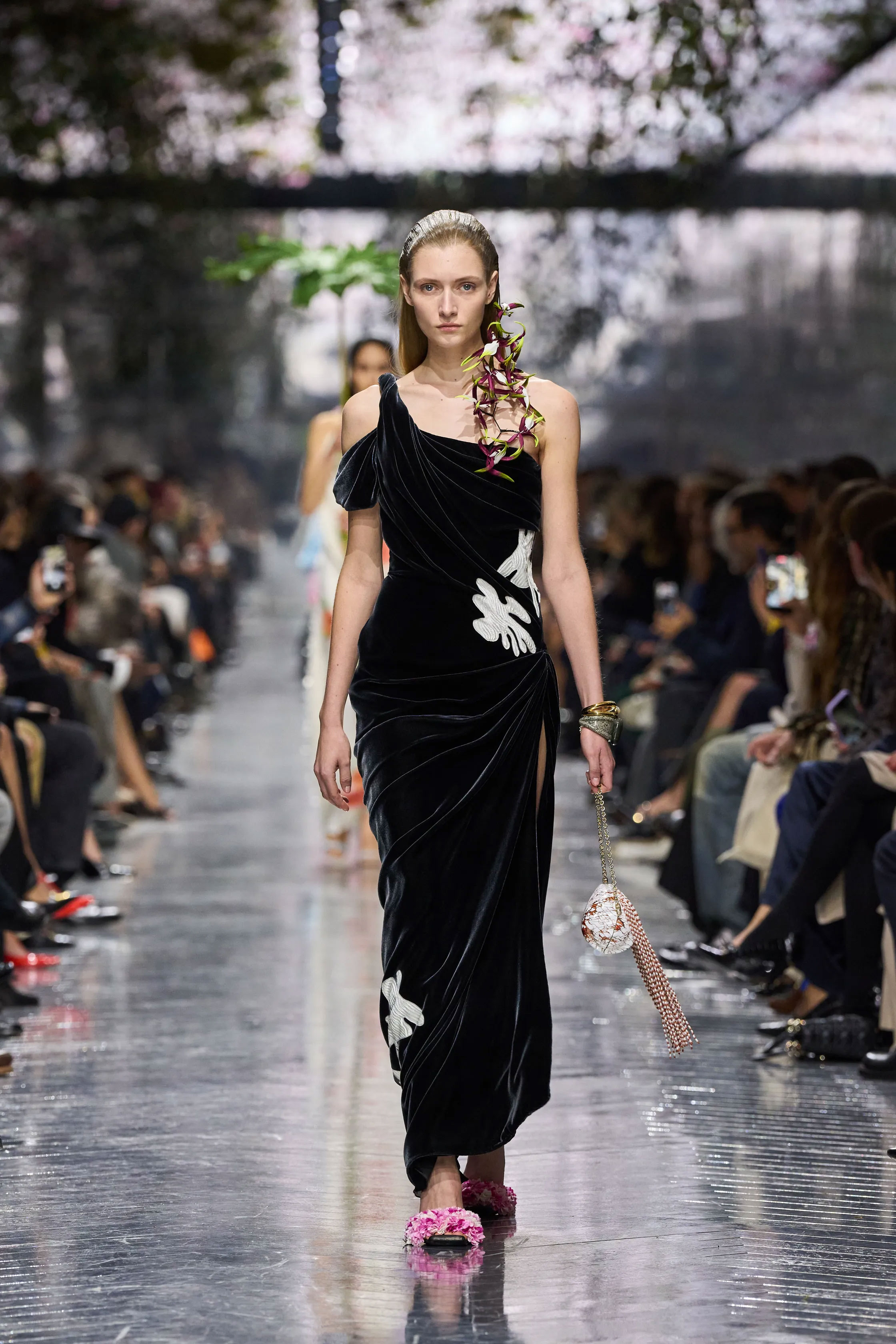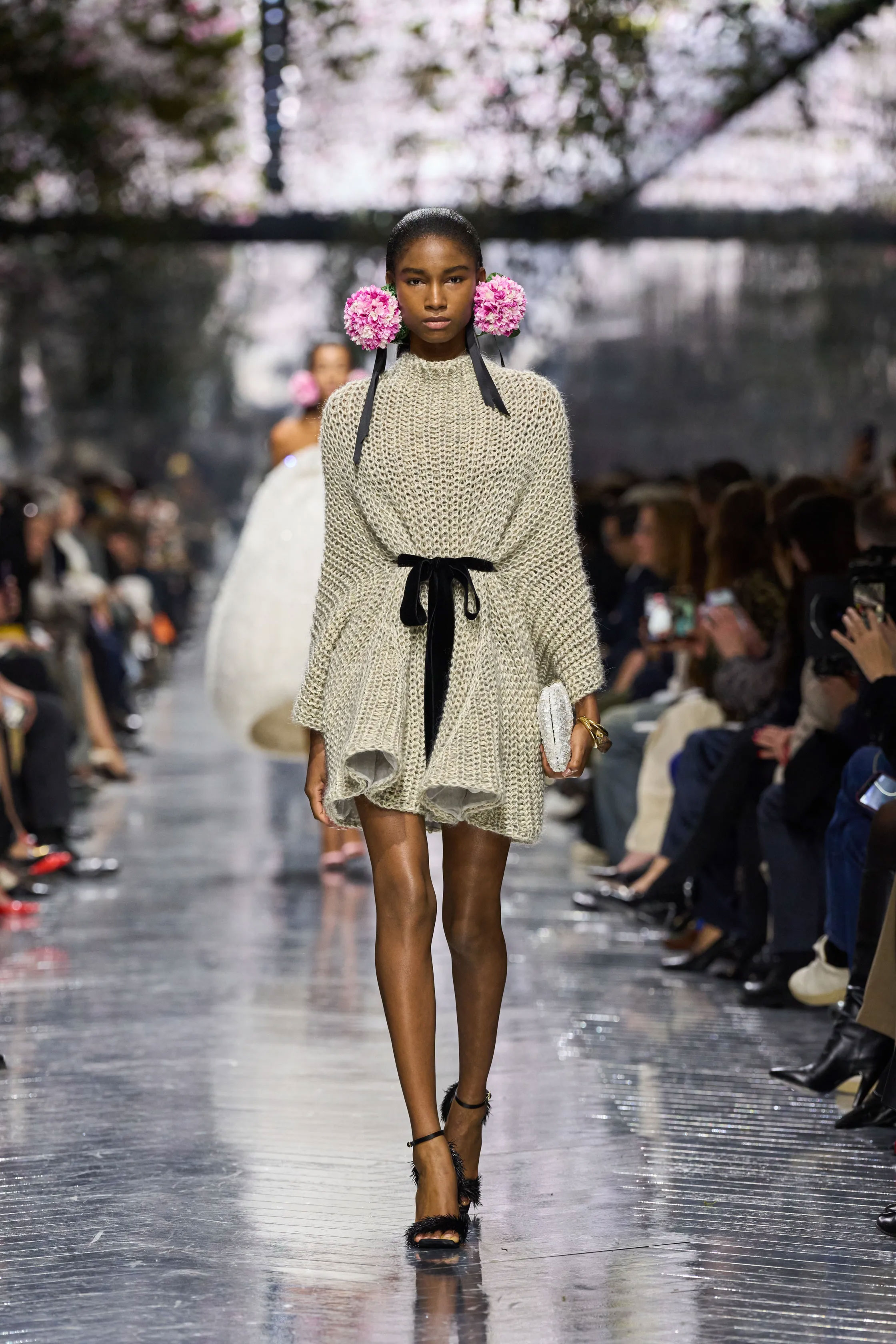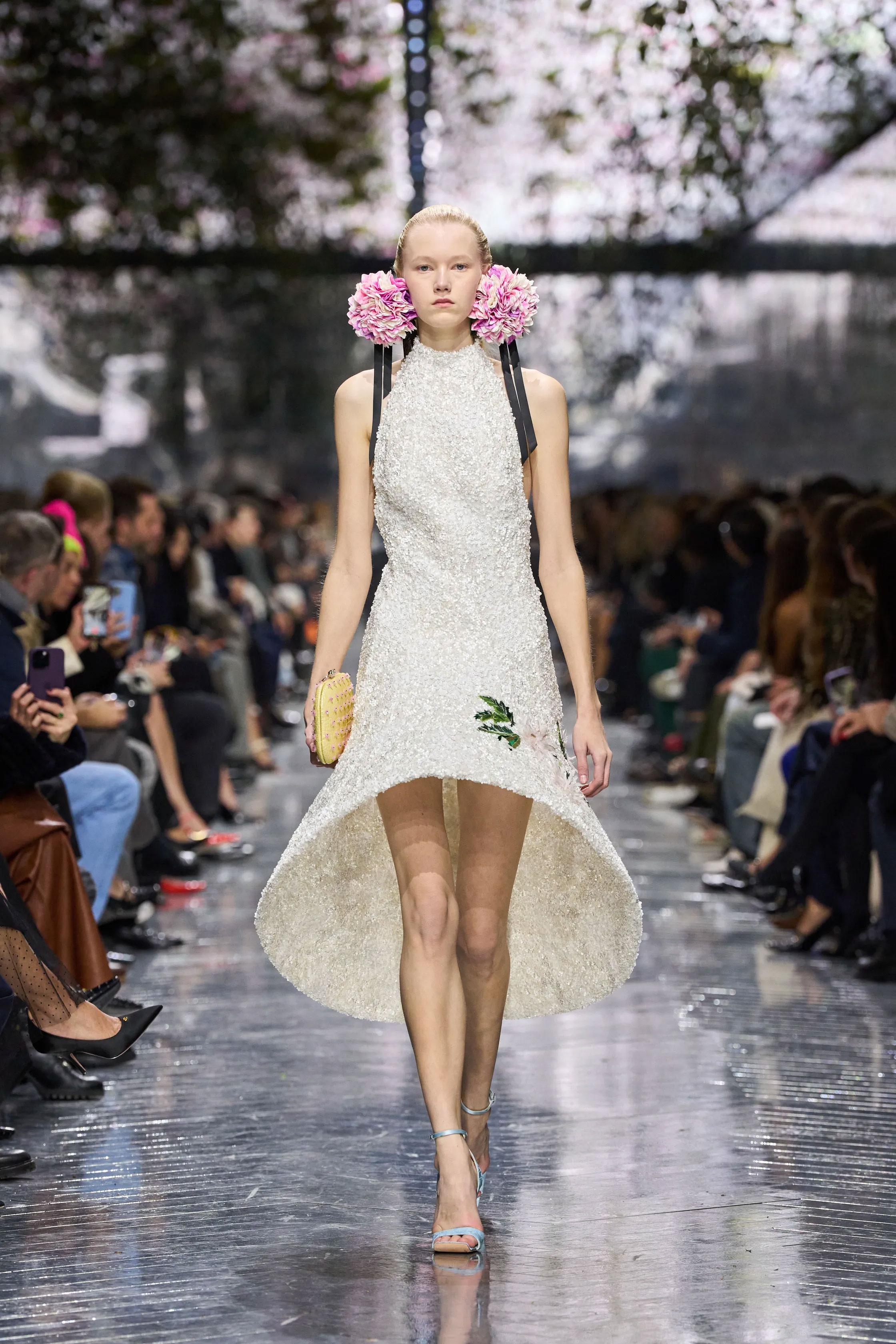 Серед найцікавіших образів — рожева сукня, текстура якої повторювала квіткові суцвіття, розшитий жакет Bar з високою лінією талії, топ з тюлі, який імітує пірʼя, а також весільна сукня з пелюстками в тон.