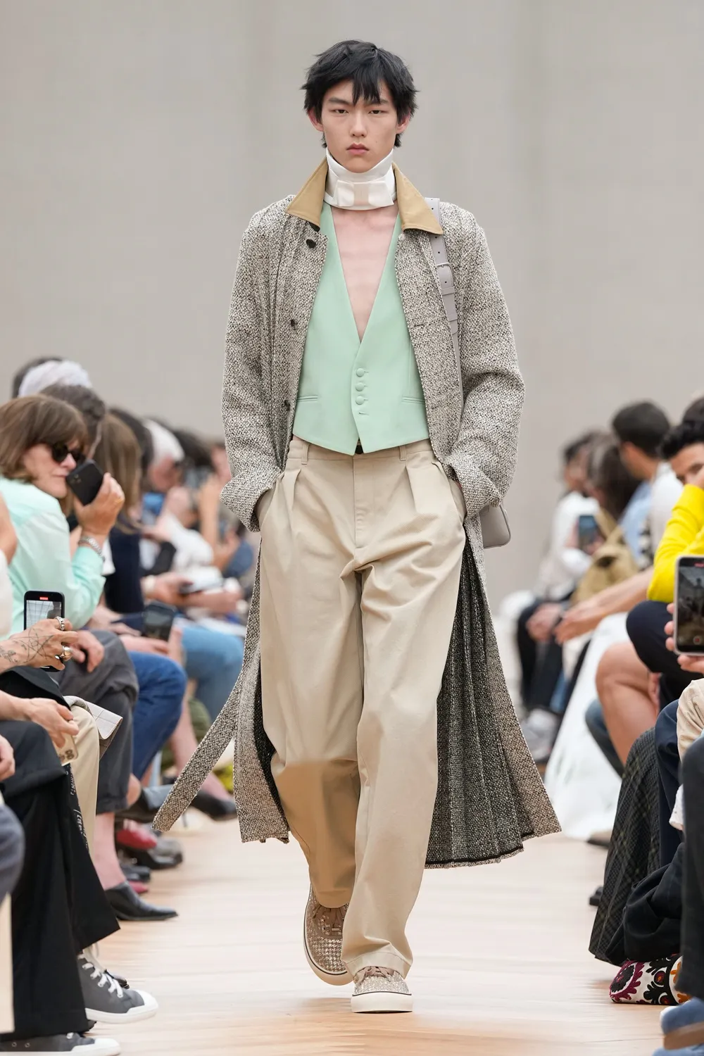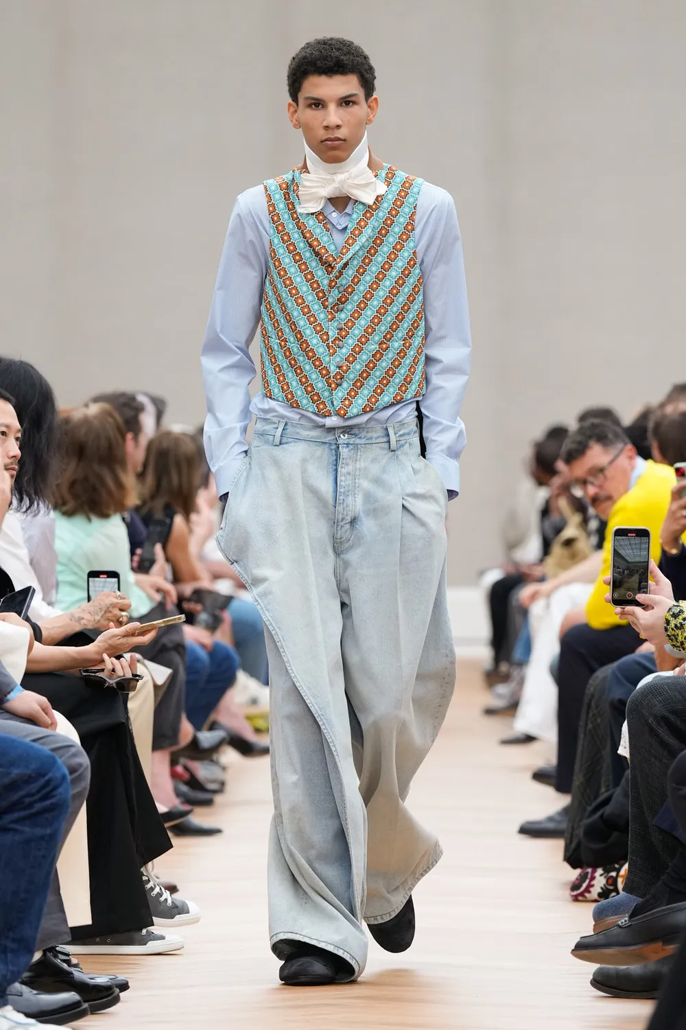 Обличчя героїв нового Dior Homme — різне. Вони однаково впевнено почувають себе як у денімі та дутих жилетах, так і брюках та білих сорочках, доповнених краваткою-метеликом. Серед інших творінь Андерсона, помічених на подіумі, — кейпи та пончо, шерстяні жакети та пальта, шорти в двох довжинах, а також трикотажні светри.