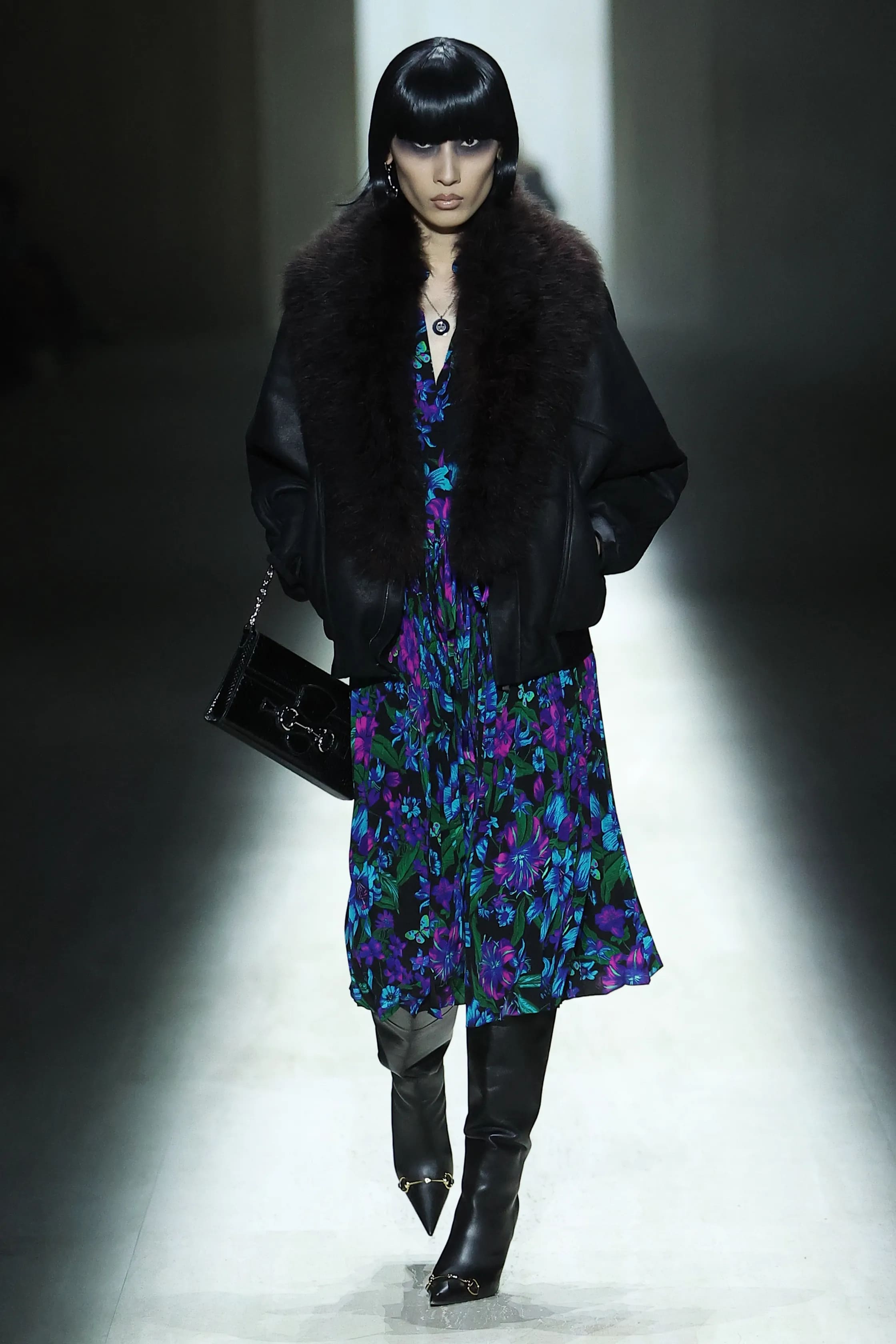 Естетика показу нагадала публіці про архівні колекції Тома Форда. Окрім знакових силуетів того часу, на подіумі було помітне й пряме цитування. У колекції з’явилась сукня з надглибоким вирізом на спині, яку, до речі, примірила Кейт Мосс.