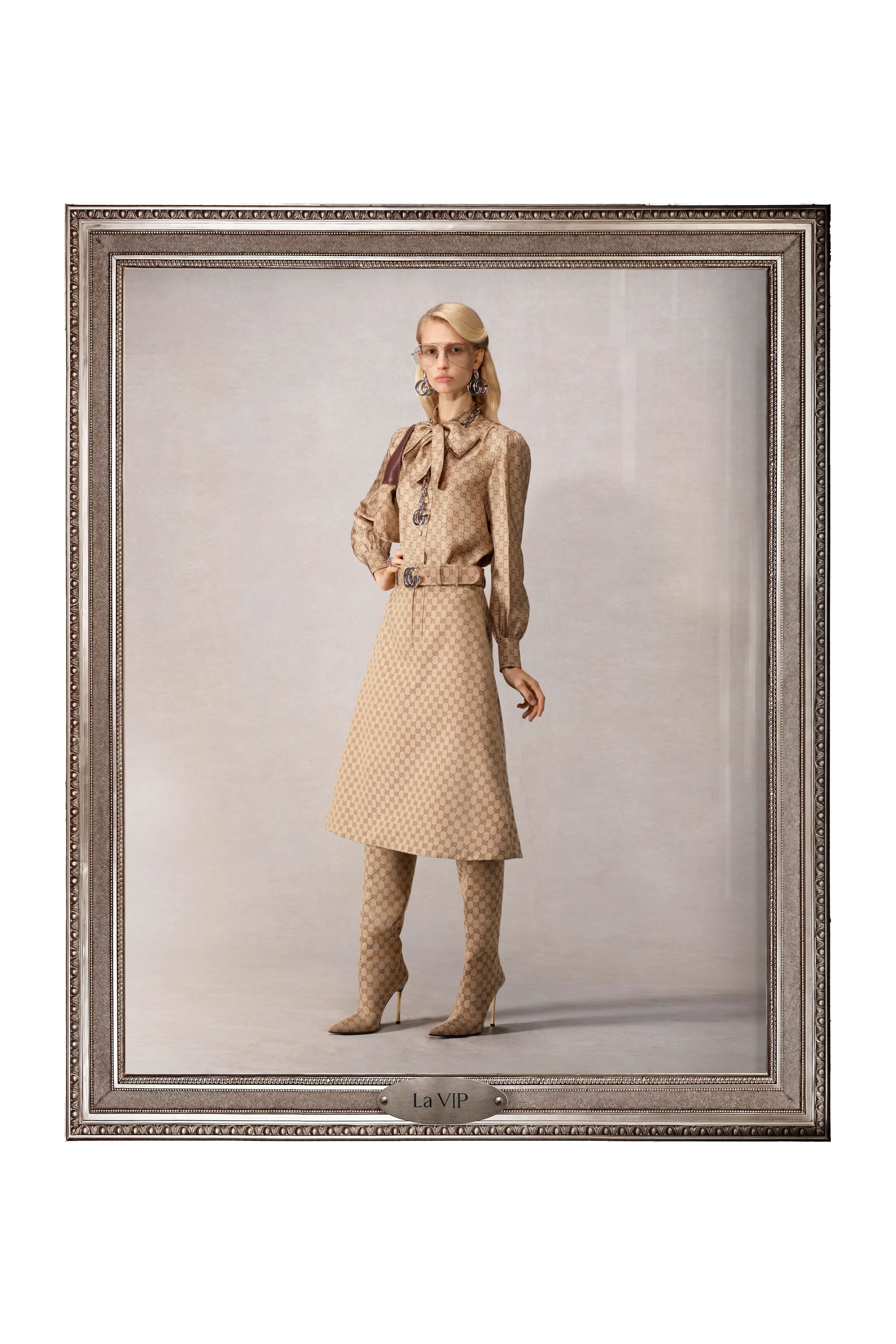 У центрі дебютної колекції Демни — образи великої вигаданої «сім’ї Gucci». Американська фотографка Кетрін Опі створила серію портретів, де кожен персонаж відображає окрему грань ДНК бренду. Так, L’Archetipo з монограмованою валізою символізує витоки Gucci як майстерні дорожніх аксесуарів. Incazzata в червоному пальті 1960-х втілює гарячий темперамент, La Bomba демонструє хижу грайливість, а La Cattiva — холодну елегантність фатальної жінки. Серед інших героїнь — Miss Aperitivo, L’Influencer, La Mecenate, La Contessa, Sciura та Primadonna