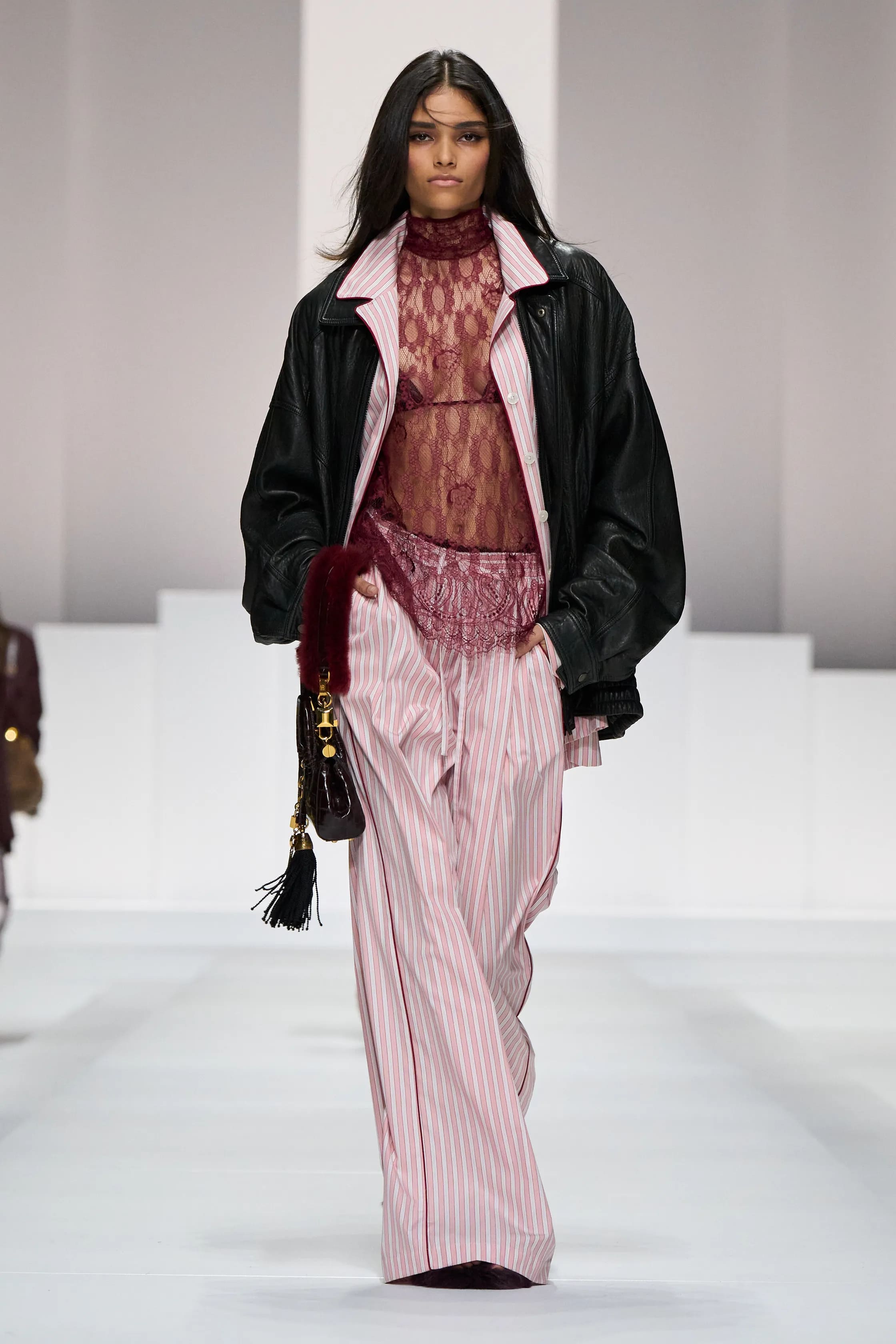 «Жінці не потрібен чоловік, їй потрібна колекція Луїз Троттер для Bottega Veneta», — так у Мережі відгукуються про дебют дизайнерки на міланському подіумі, яка стала єдиною жінкою серед нових креативних директорів у великій ротації модної індустрії. Колекція демонструвала впевненість і майстерність, з якими Троттер використовує ДНК бренду. Глибоку роботу зі знаковим ремісництвом Bottega Veneta втілювало класичне плетіння intrecciato, яке ожило не лише в аксесуарах, але й одязі. Серед інших резонансних елементів колекції — шуби з шовкової бахроми, яка точно стане it-річчю наступного сезону.