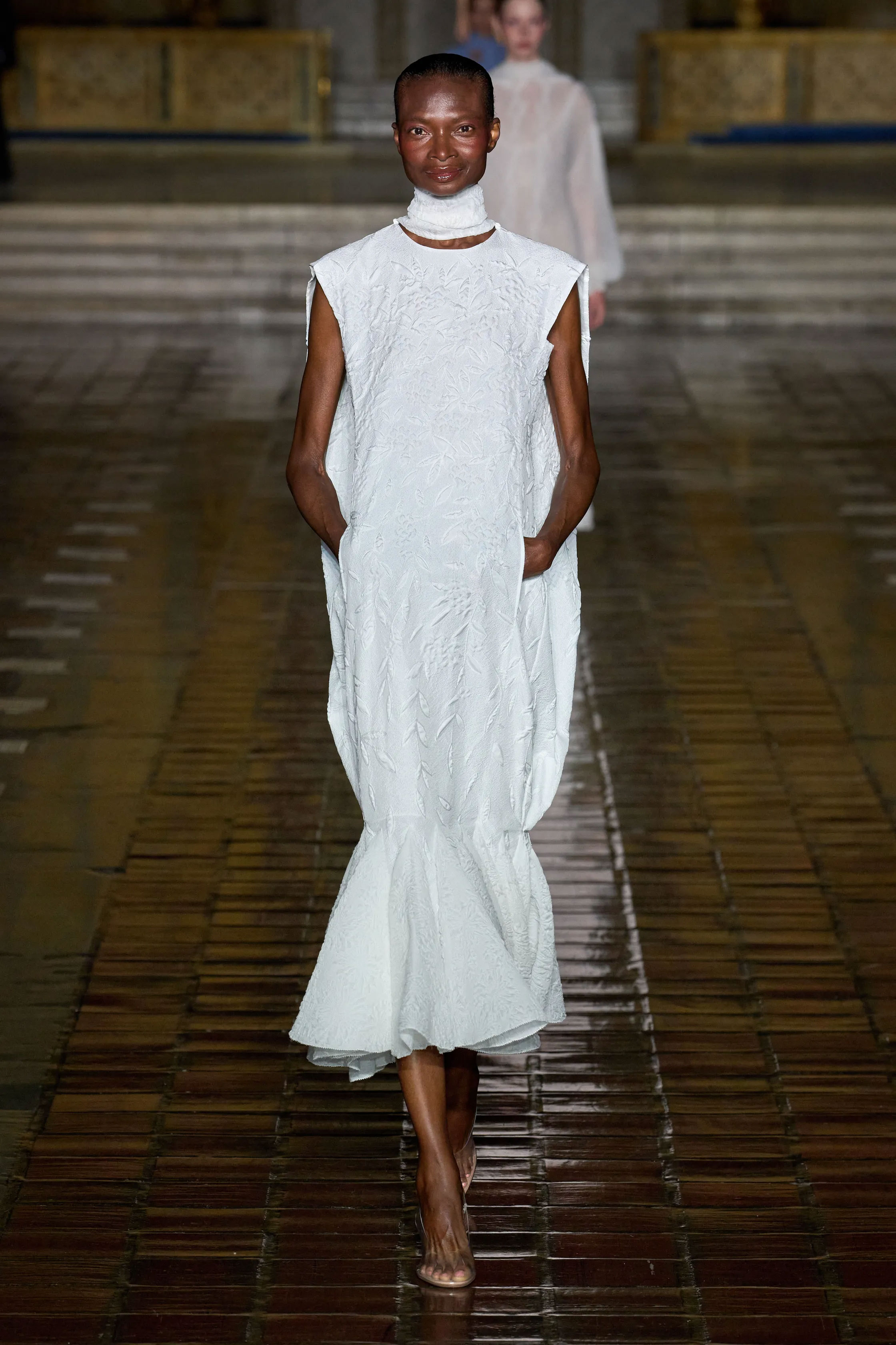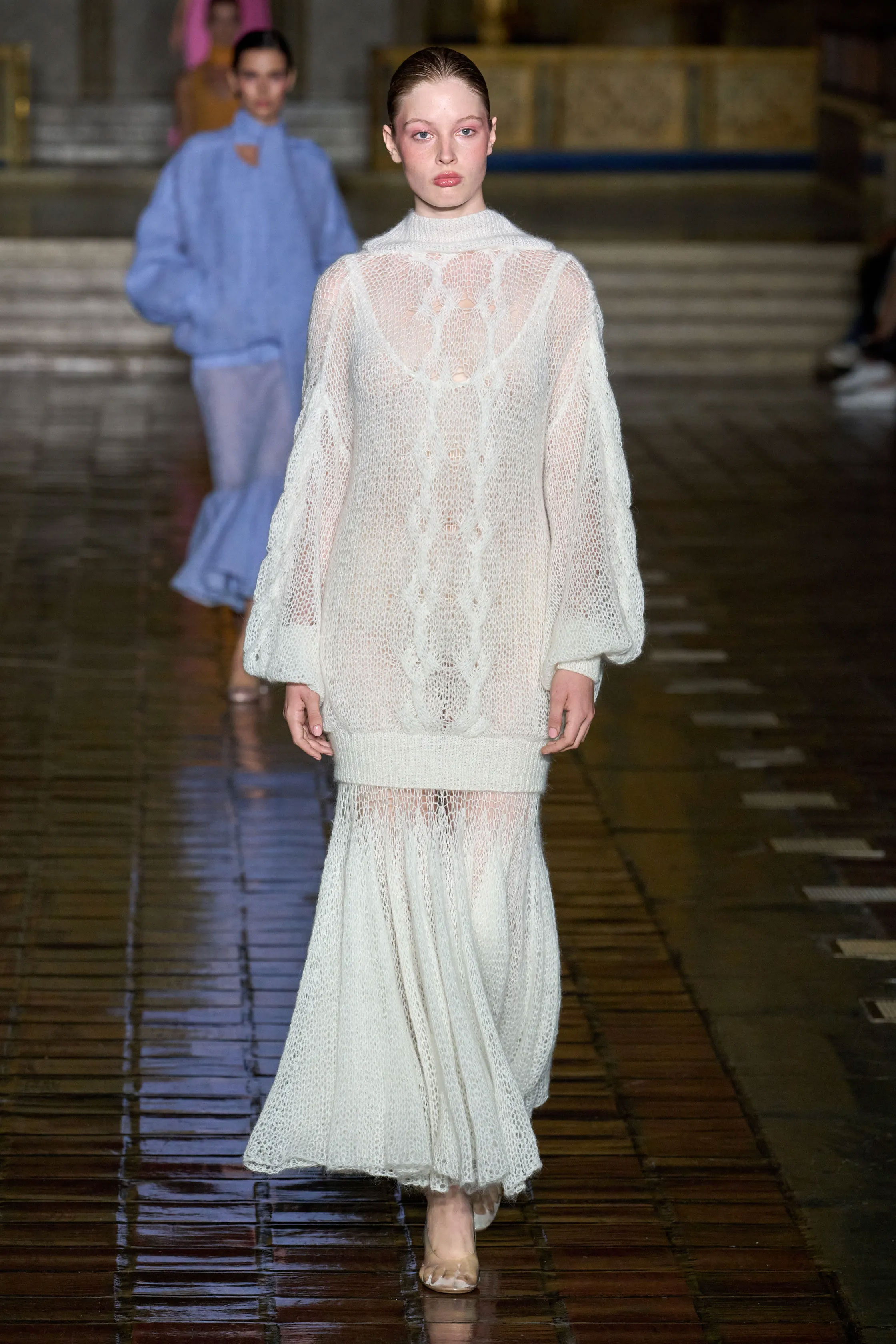 Показ Prabal Gurung відбувся у храмі Святого Варфоломія на Парк-авеню й отримав назву Angels in America. У колекції дизайнер звернувся до теми надії як форми спротиву — ідеї, яка звучала і в його цьогорічних мемуарах Walk Like a Girl. На подіумі це втілилося у вільних сукнях без рукавів, що звужувалися до колін і розкривалися об’ємними силуетами, у повітряних мереживних светрах-блузах, поєднаних із широкими брюками, та вечірніх образах — від суконь без бретельок до моделей з об’ємними спадаючими спинами.