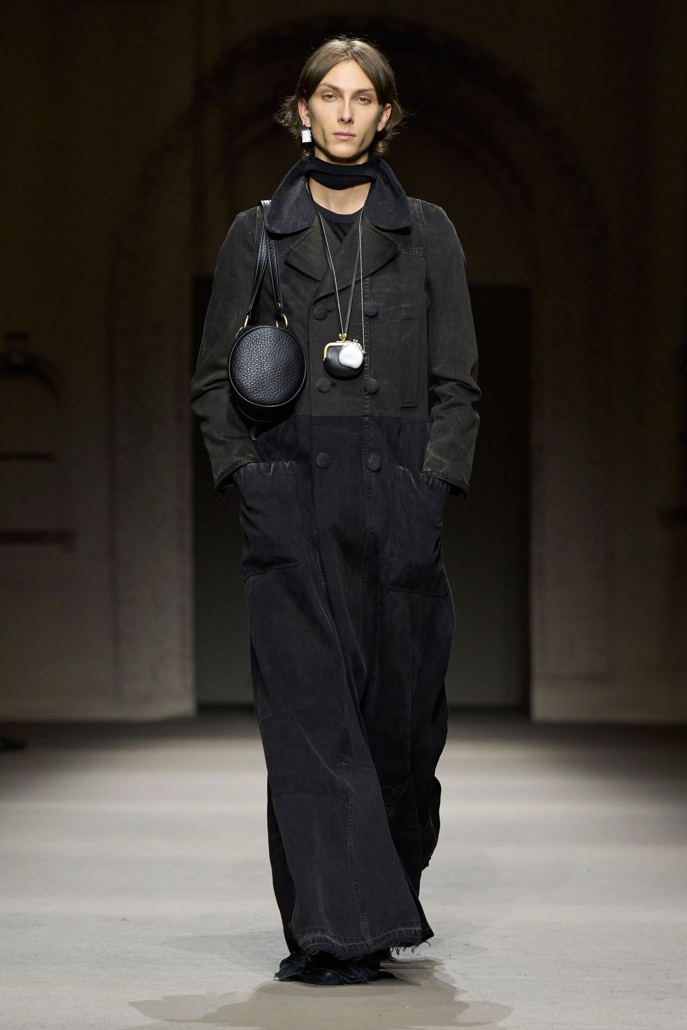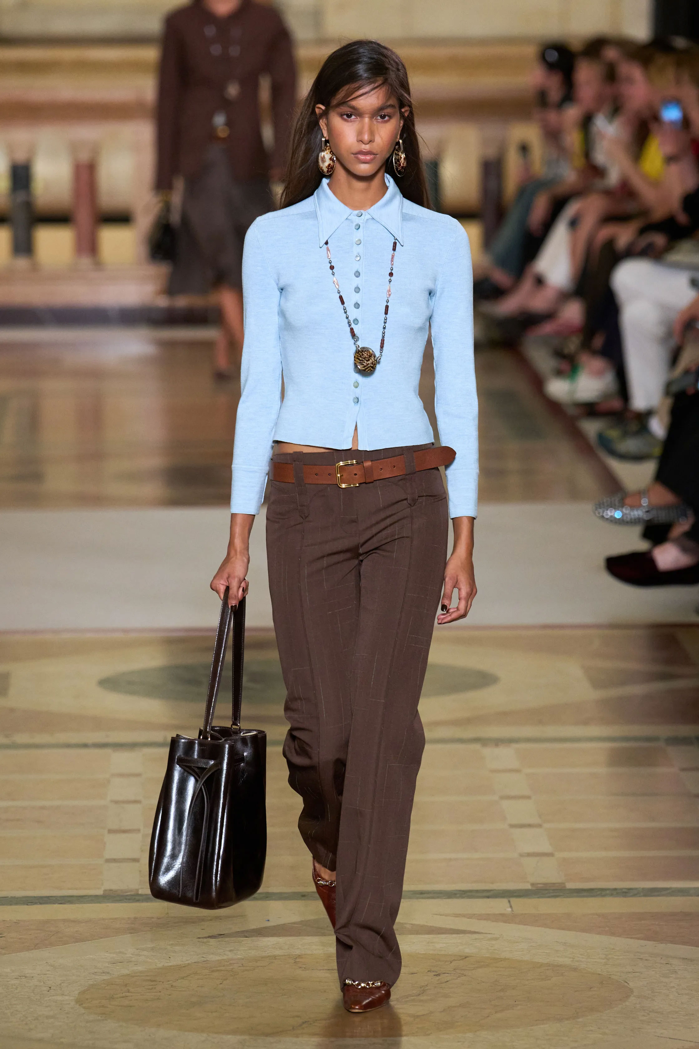 Цьогорічне шоу Khaite присвятили силі в слабкості. Шоу відкривав шкіряний блейзер, скроєний так, ніби він обіймає тіло моделі під косим кутом. Цей жест став відправною точкою для всієї колекції дизайнерки Кетрін Холстейн, яка шукала впевненість не у демонстративній силі, а у вразливості та сумнівах. Дизайнерка зізналася, що відчуває себе «аутсайдеркою», і саме цей внутрішній парадокс надихнув її на гру з формами та конструкціями.
