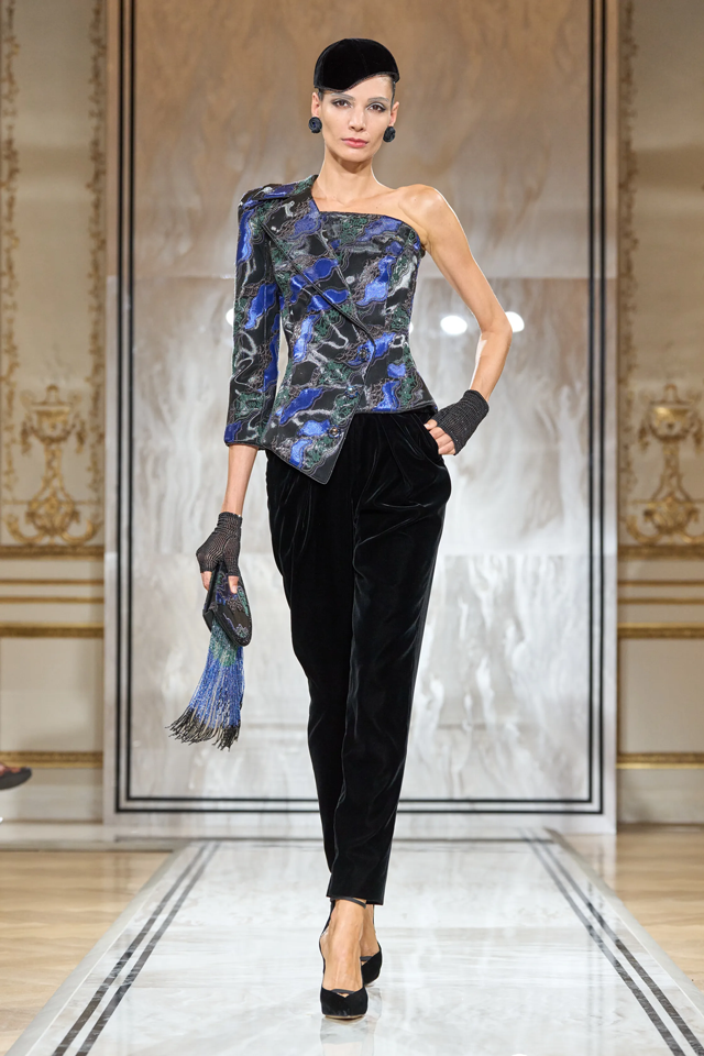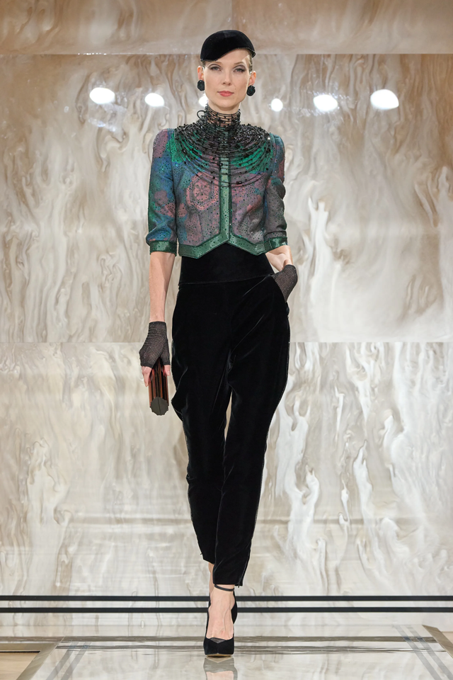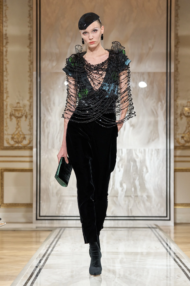 Вперше за історію лінії Prive Джорджио Армані не був присутнім на показі Дому. Дизайнер контролював роботу ательє зі свого міланського будинку, де зараз відновлюється після хвороби. Попри це колекція fall — 2025/26 під назвою Noir Séduisant об’єднала усе, що любить Армані — вишуканість, жіночність і чорний колір. Театральний дух образів прослідковувався у витонченій кольоровій вишивці, декоративному пір’ї, драпіруванні органзою, а також комбінацією оксамитових і шовкових текстур.