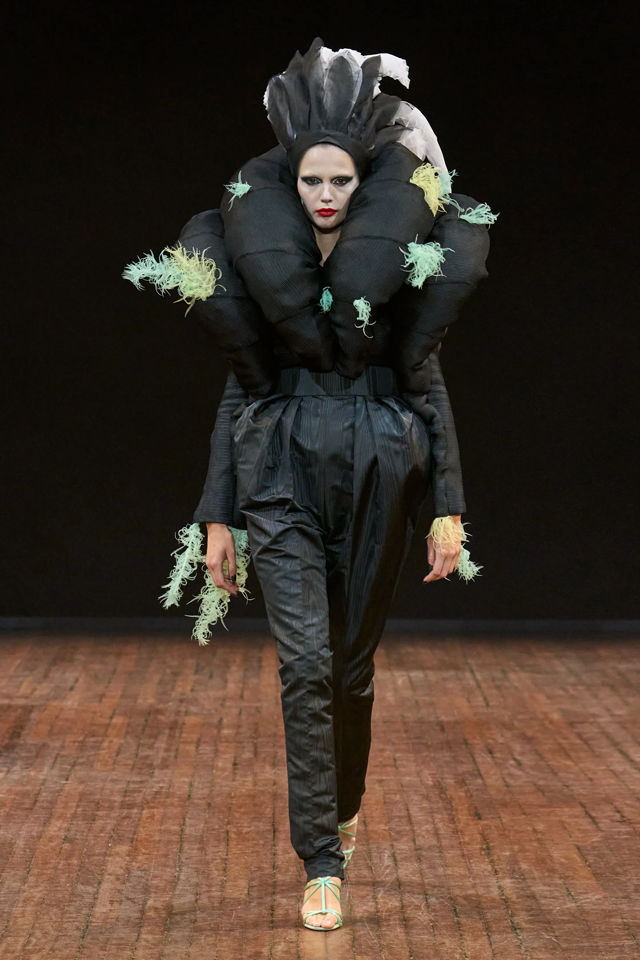 Кутюр Victor & Rolf має унікальну властивість викликати захват публіки. Дизайнери Дому відкривають для глядачів високу моду, де витончені тканини, розкішний декор та сміливий дизайн перетворюються на розповідь. Цього разу Victor & Rolf експериментували з пір’ям, обожнюваною іншими дизайнерами текстурою, яку, на диво, Віктор Хорстінг і Рольф Снорен майже не використовували в своїх колекціях. Декоративний елемент став спектральним в нових образах та їх стилізаціях — штучне пір’я з органзи було присутнім як на сукнях, так і аксесуарах, наприклад, на капелюшках унікальних форм.