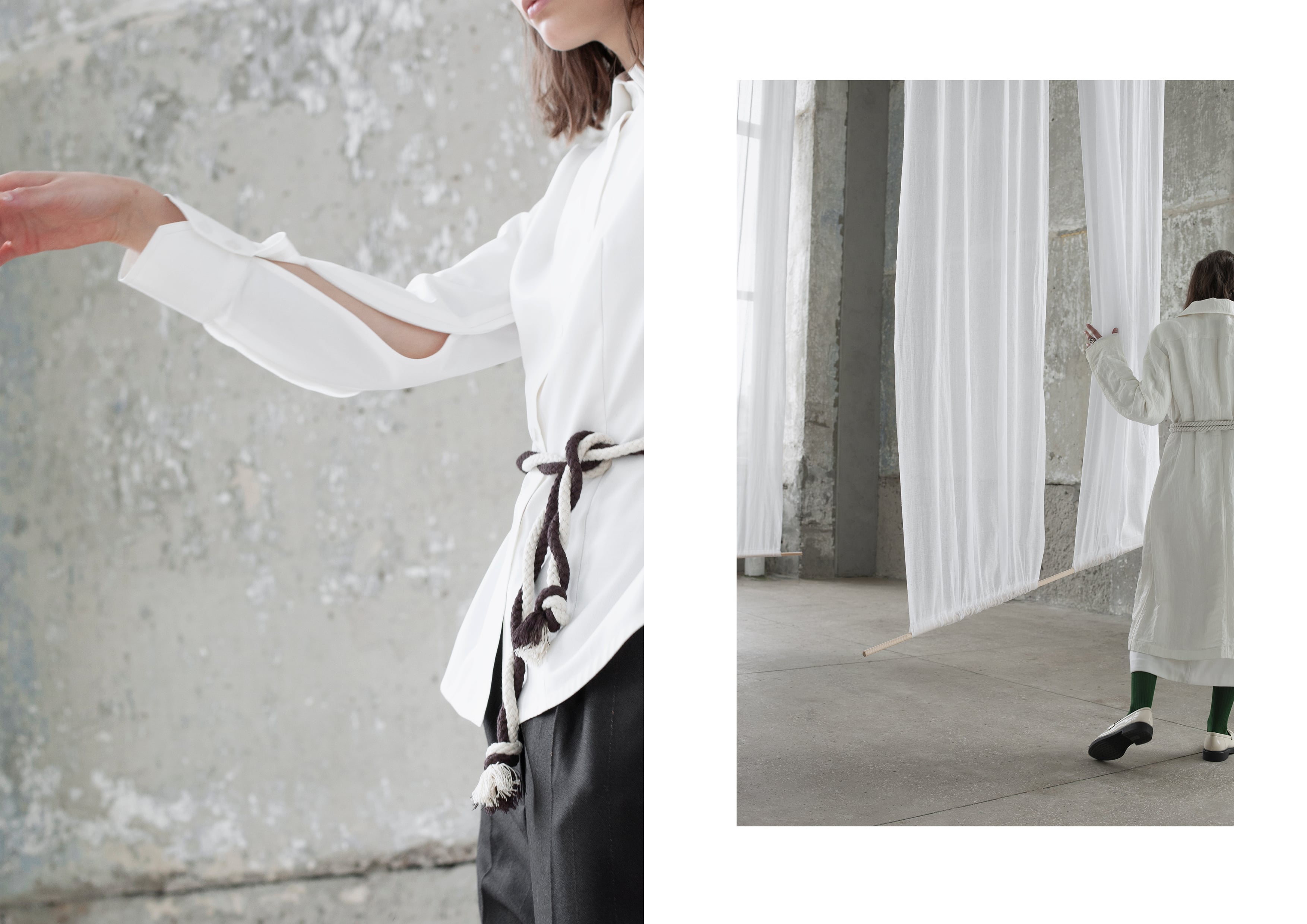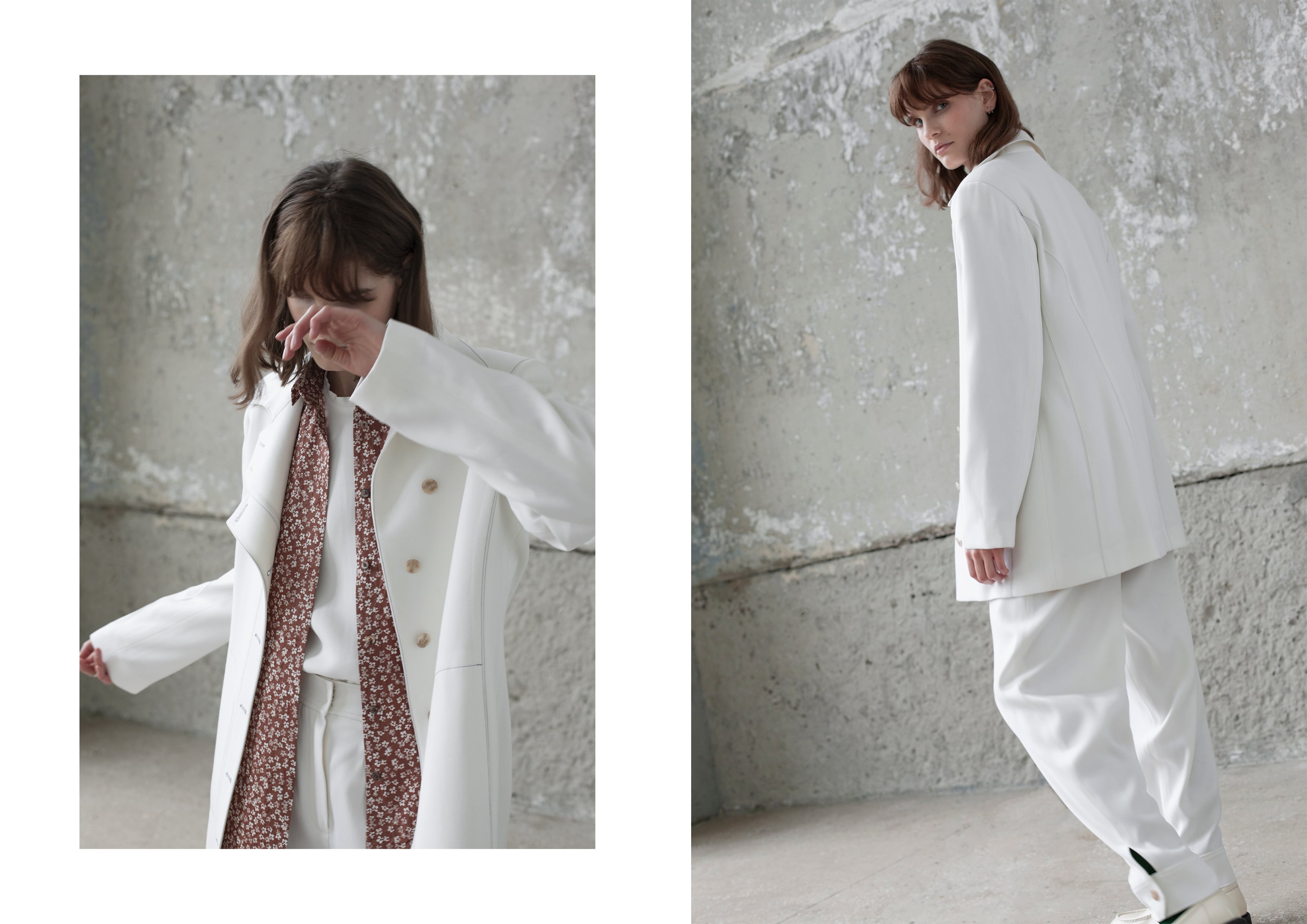 В коллекцию вошли легкие платья, туники и костюмы из натуральных тканей светлых оттенков, которые легко можно комбинировать с вещами из предыдущих коллекций бренда. Деликатные вкрапления буколической эстетики в виде канатного пояса, "мохнатой" окантовки некоторых изделий, рубашки в крошечных цветах или пастушьей сумки-рюкзака придают коллекции особый дух уюта. Умиротворение сообщают пальто-халаты из мягкого велюра, которые так полюбились поклонникам бренда прошлой весной, что решено было вернуть их в новый сезон, оттенки утренних трав и молока, костюмы и стеганные вручную детали. Нежные платья с корсетными вставками легко комбинируются с кашемировыми пальто в полоску, светлые свободные брюки — с объемными пиджаками. Коллекция не привязана к определенному времени года, лето в ней мягко переходит в теплую осень, а вещи изготовлены таким образом, чтобы в них было комфортно прохладным августовским вечером и ясным днем теплого сентября.
