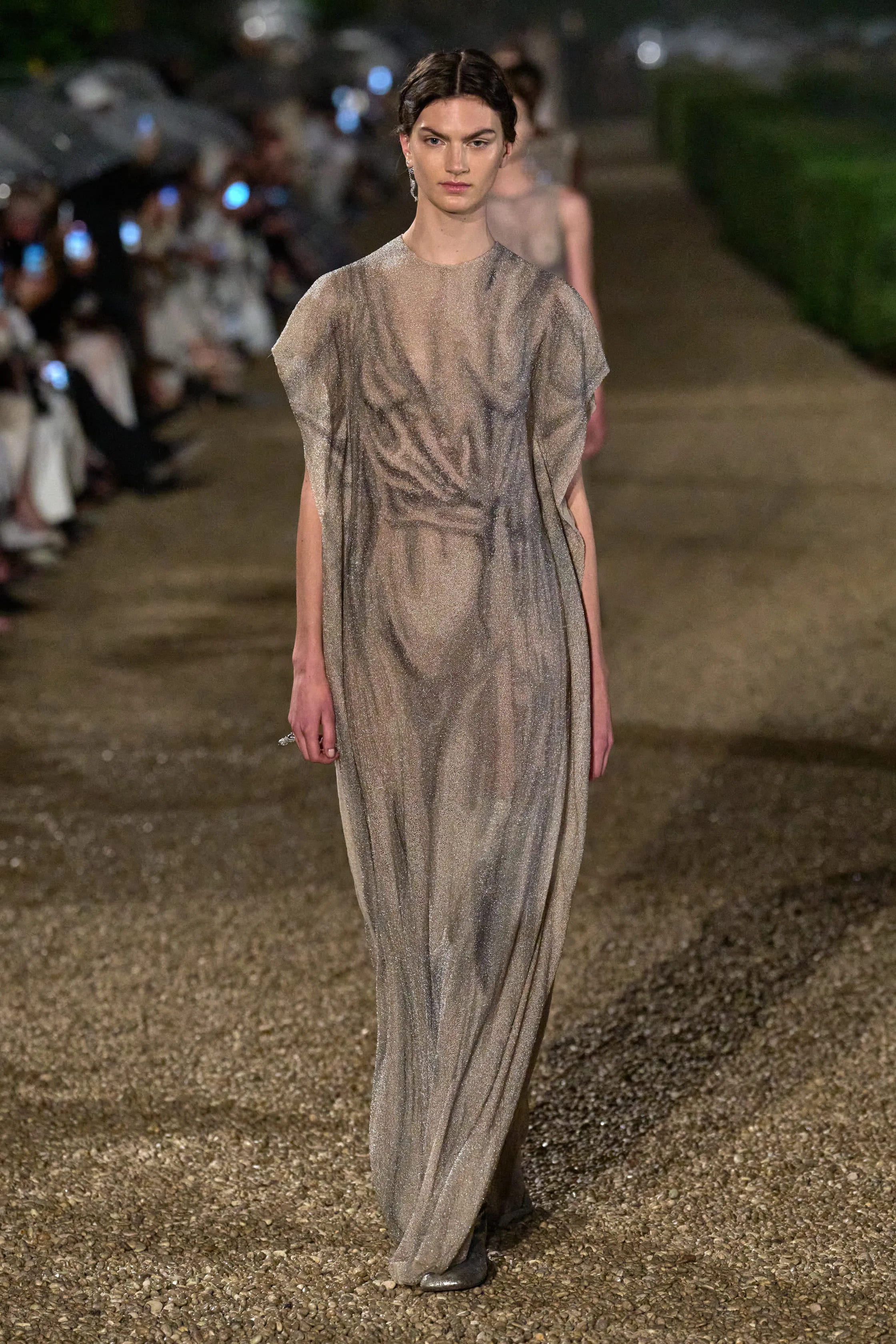 Вже не вперше The Row, заснований Мері-Кейт та Ешлі Олсен, забороняє використання мобільних телефонів на своєму показі. Це трапилося й із колекцією Resort 2026, яку більшість світу побачила лише після виходу офіційних світлин. Моделі були одягнені в лаконічну розкіш, та, що цікаво, не мали жодного взуття. Їх супроводжувала серія укорочених тренчів, светрів поверх сорочок, максісуконь — всі в традиційних нейтральних кольорах.