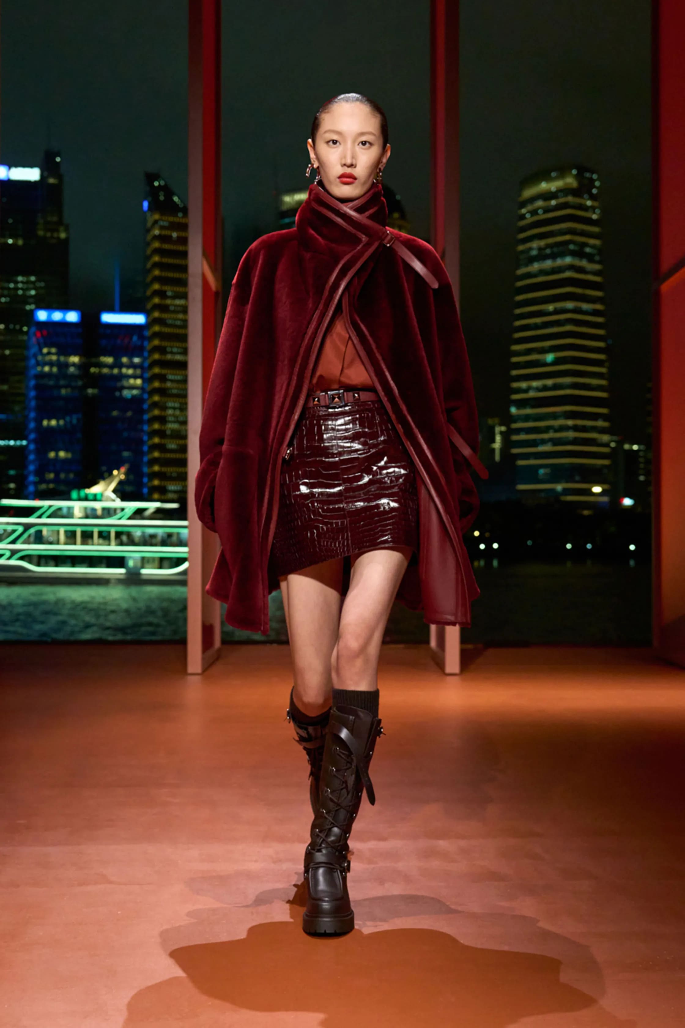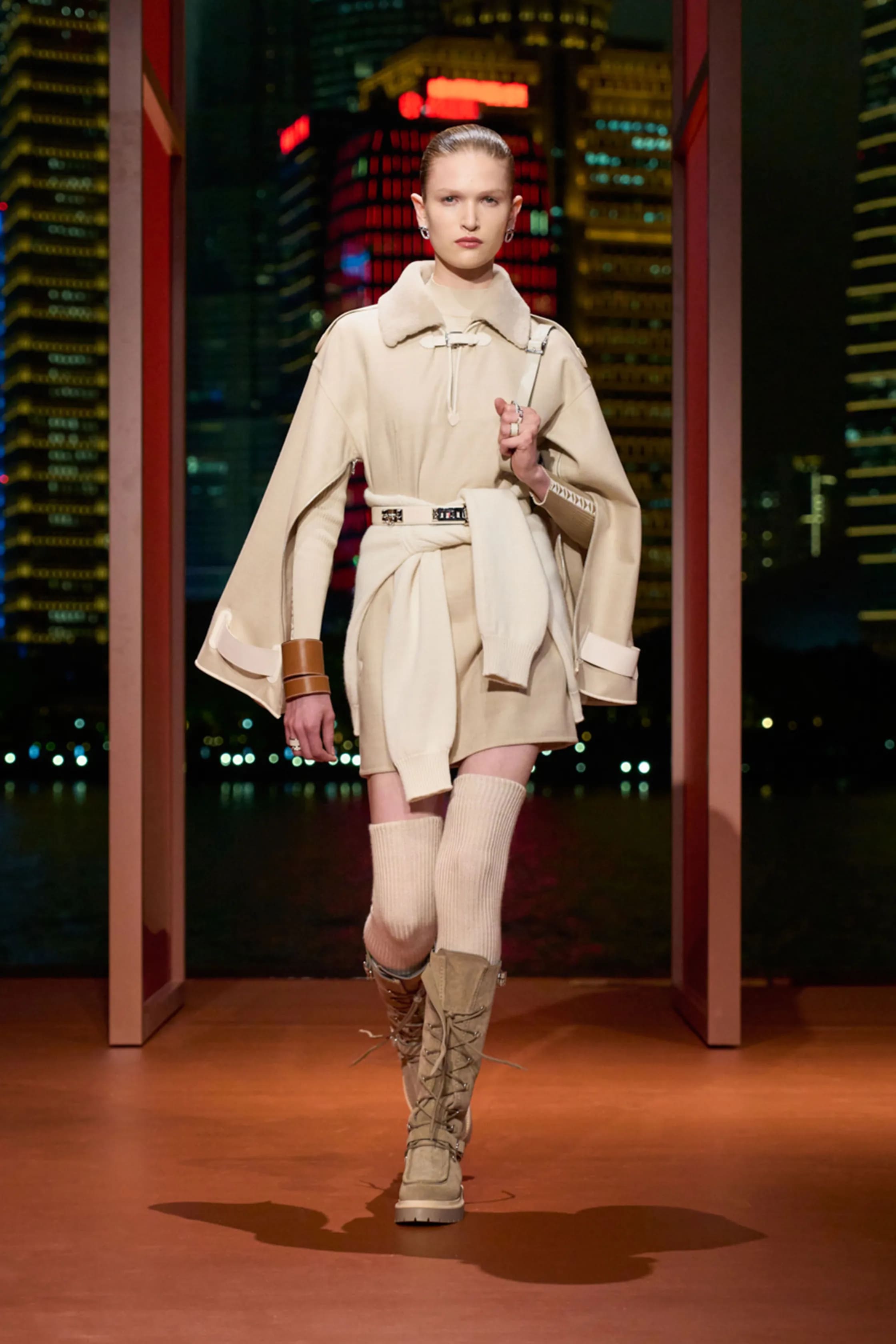 У сезон показів круїзних колекцій Hermès прибули в Шанхай, щоб показати другу частину жіночої колекції осінь-зима 2025/2026. У її центрі був образ впевненої фемінності, між традиціями та сучасністю. Одяг втілював функціональність, що проявлялася, приміром, у можливості з допомогою блискавок трансформувати вигляд речі. Шанхайська героїня Hermès рішуче крокувала у светрі-пончо, спідниці-олівці з розрізом, хутрі, двосторонньому кашемірі, кремезних шнурованих чоботах, і, звісно, з сумкою Kelly.