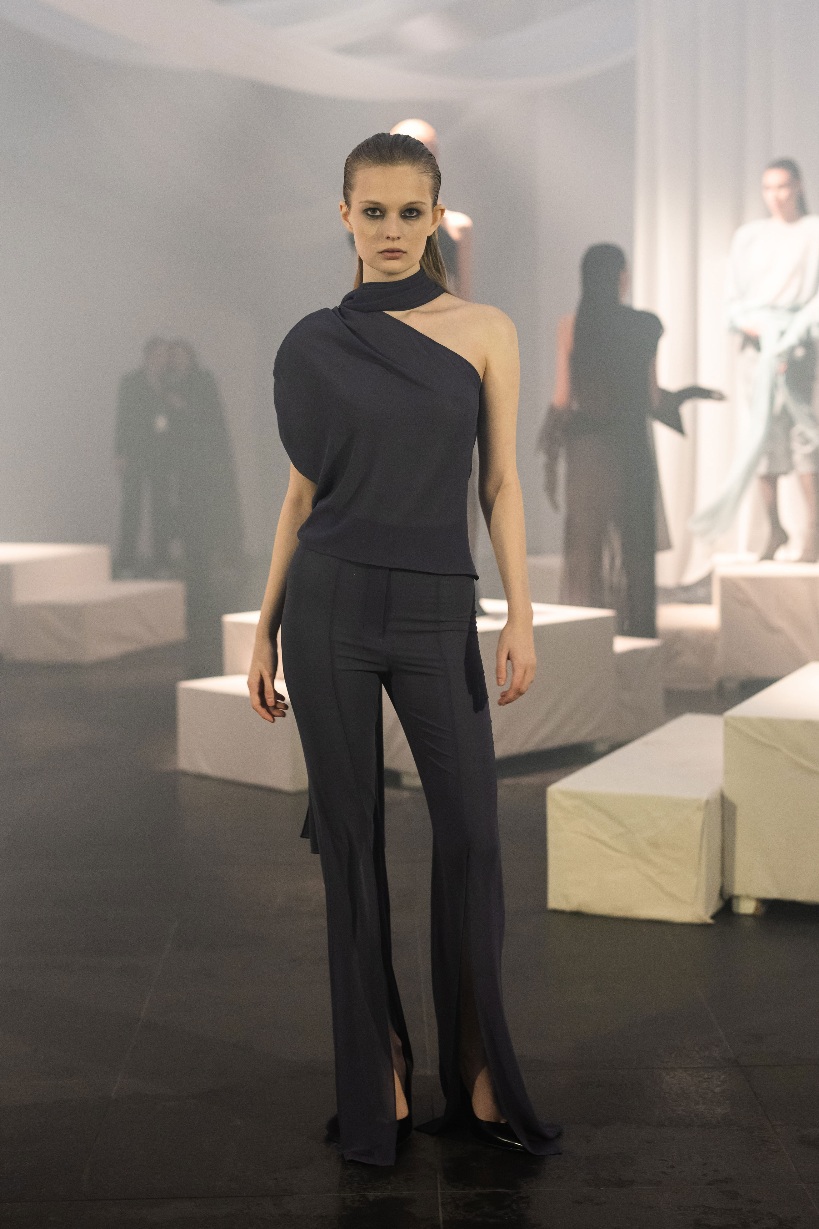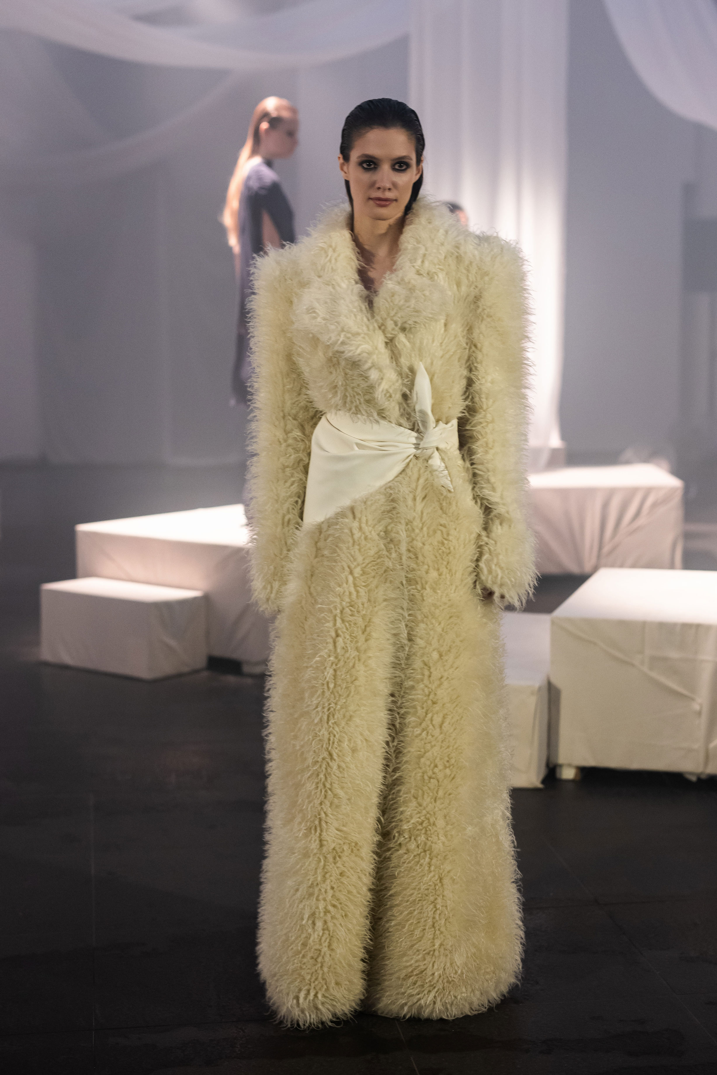 Колекція FW2026/27 отримала назву Berlin та осмислює досвід життя між двома країнами. В її основі — утвердження себе в новому суспільстві без втрати власної ідентичності. Об’ємні шуби зі штучного хутра, оксамитові корсети, напівпрозорі міні сукні з делікатним блиском і латексні силуети складають провокаційний гардероб — без зайвих пояснень і виправдань. Поєднання шовку, оксамиту, хутра та екошкіри разом зі сміливими акцентами на відкритій спині, прозорих тканинах і корсетних формах складає виразну, чуттєву колекцію з характером і свободою самовираження.