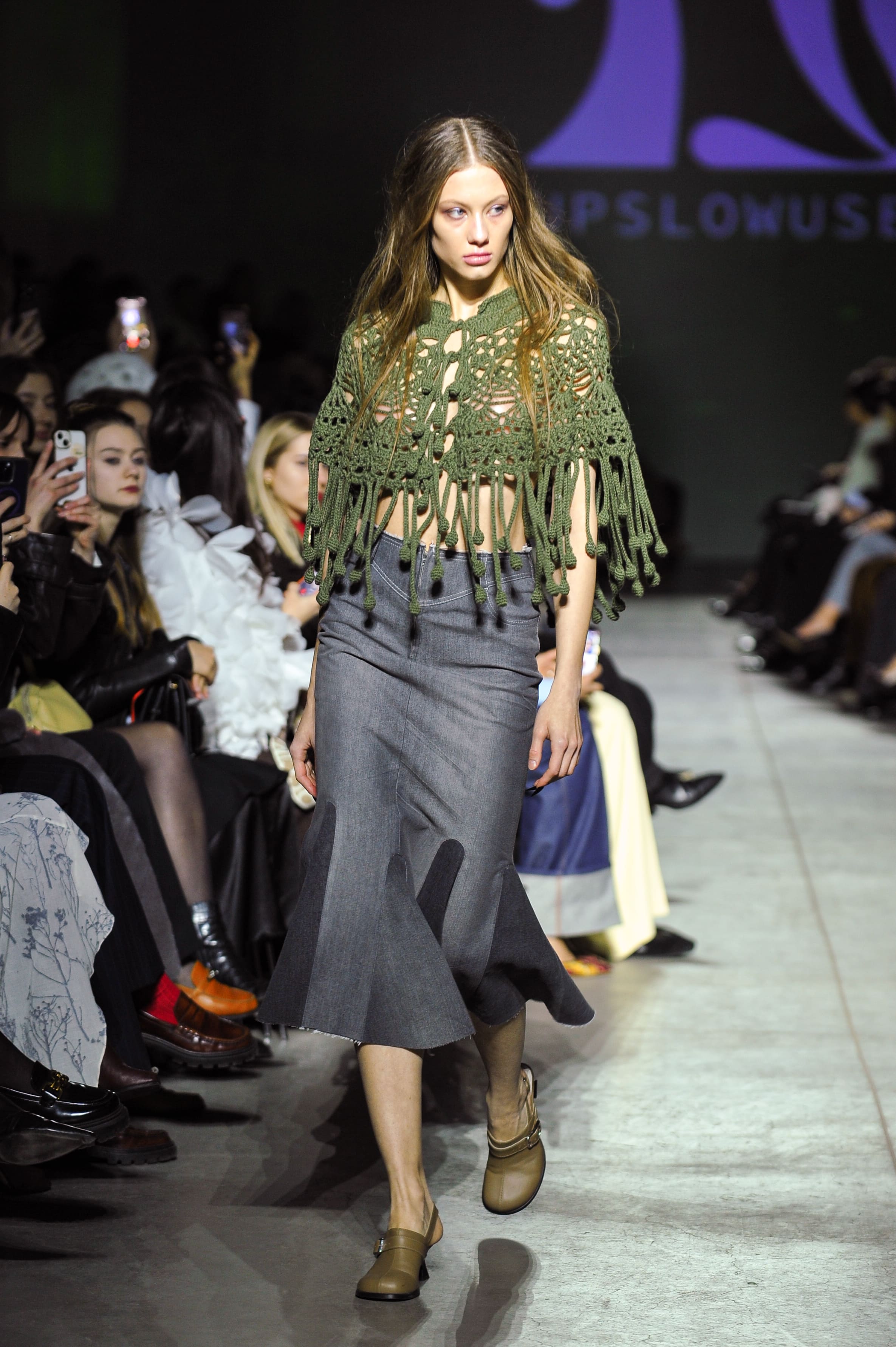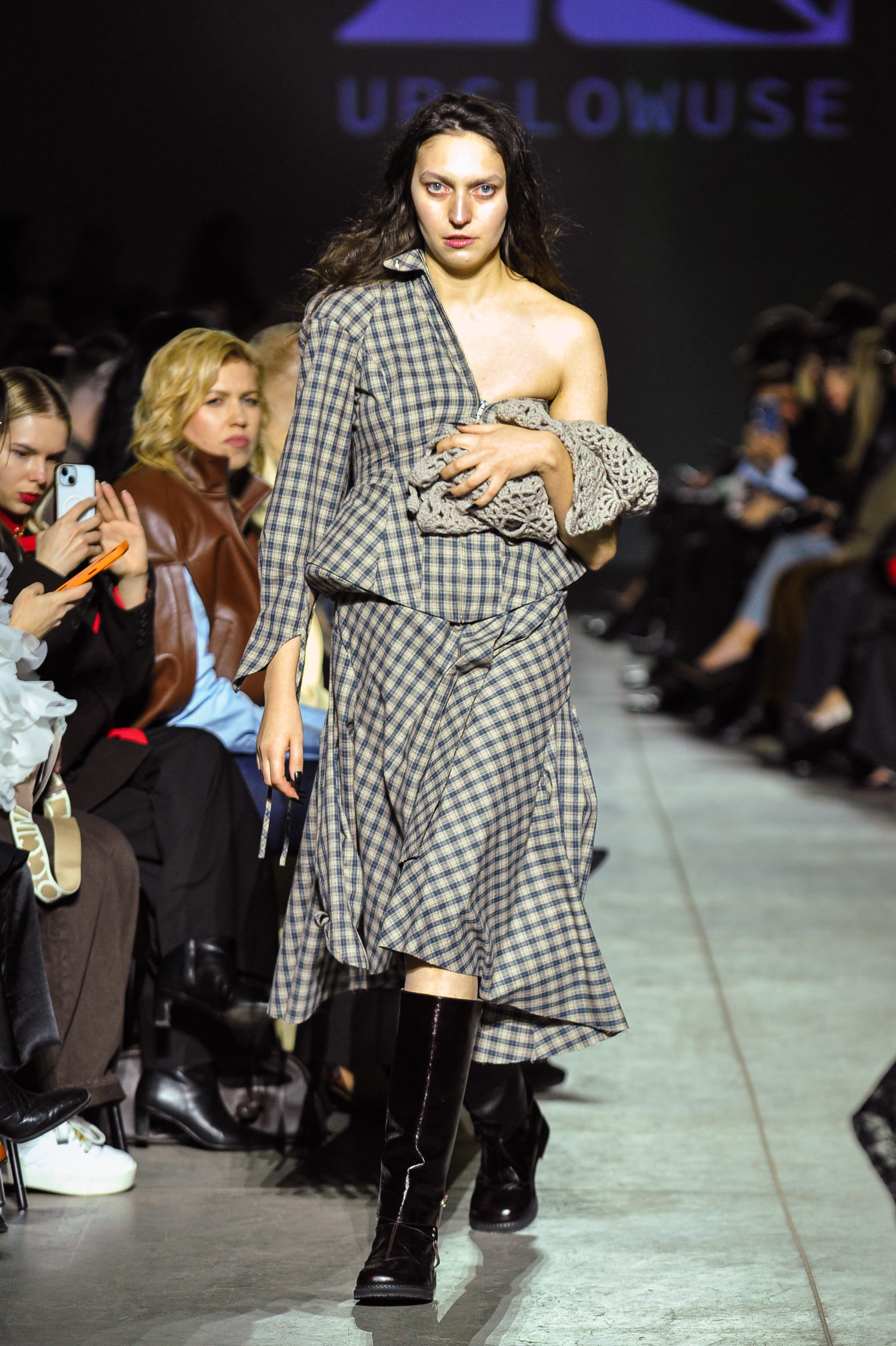 У процесі створення колекції команда UPSLOWUSE співпрацювала з культурологами, досліджуючи історичні, народні та усні джерела, пов’язаних з українськими міфічними істотами. Основу образів формує впізнавана мова бренду: апсайкл-вироби з деніму та вручну в’язані речі з переробленої шерсті. Уперше в колекції з’являється картатий мотив. На перший погляд — новий, насправді ж глибоко вкорінений в історії бренду. Від початку UPSLOWUSE працює з уживаними картатими сорочками, часто використовуючи їх як внутрішню підкладку. У LIMINAL клітинка виходить назовні — як стримане розкриття того, що завжди було всередині. Силуети, матеріали та ручні техніки передають стани, темпераменти й напругу ключових персонажів.