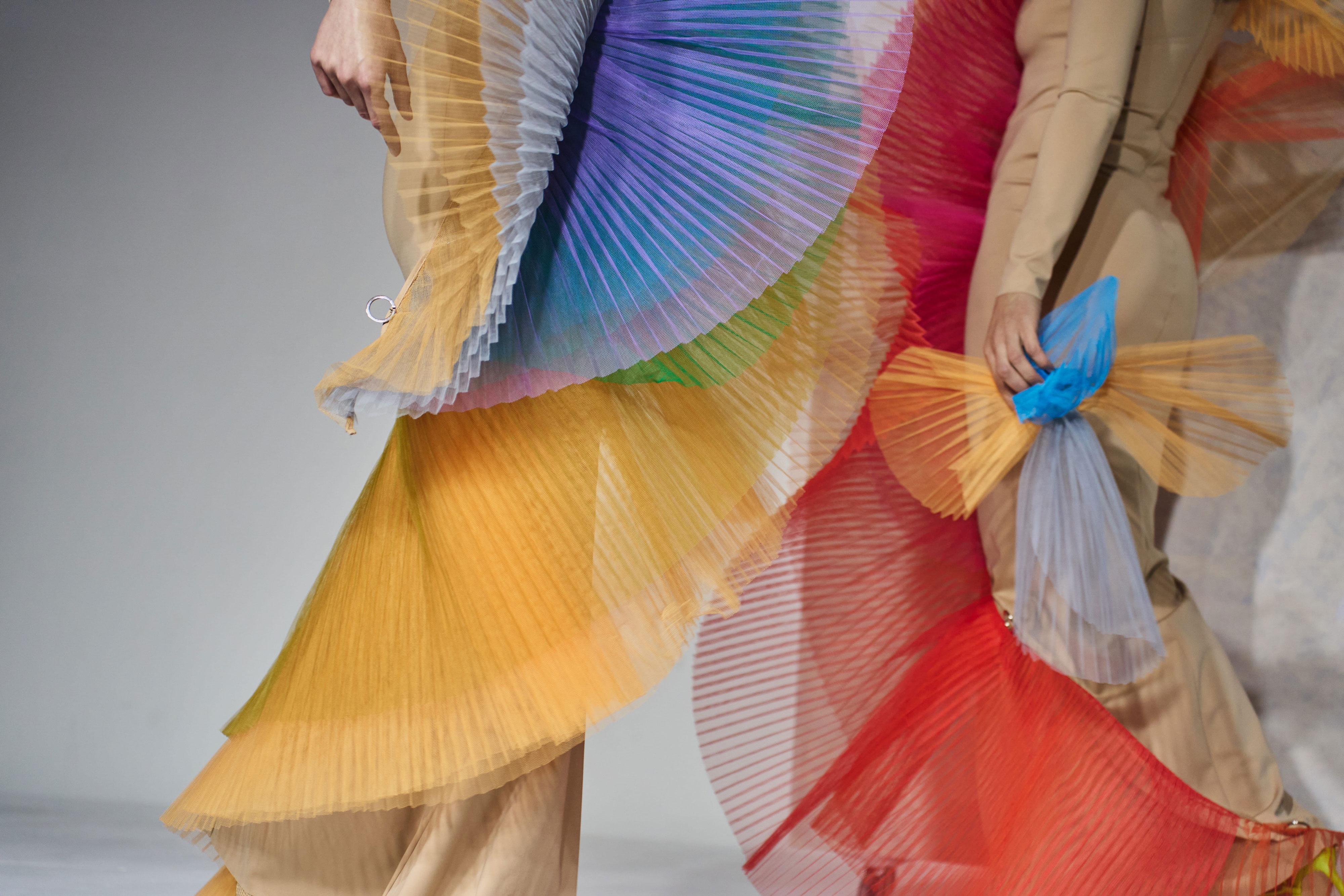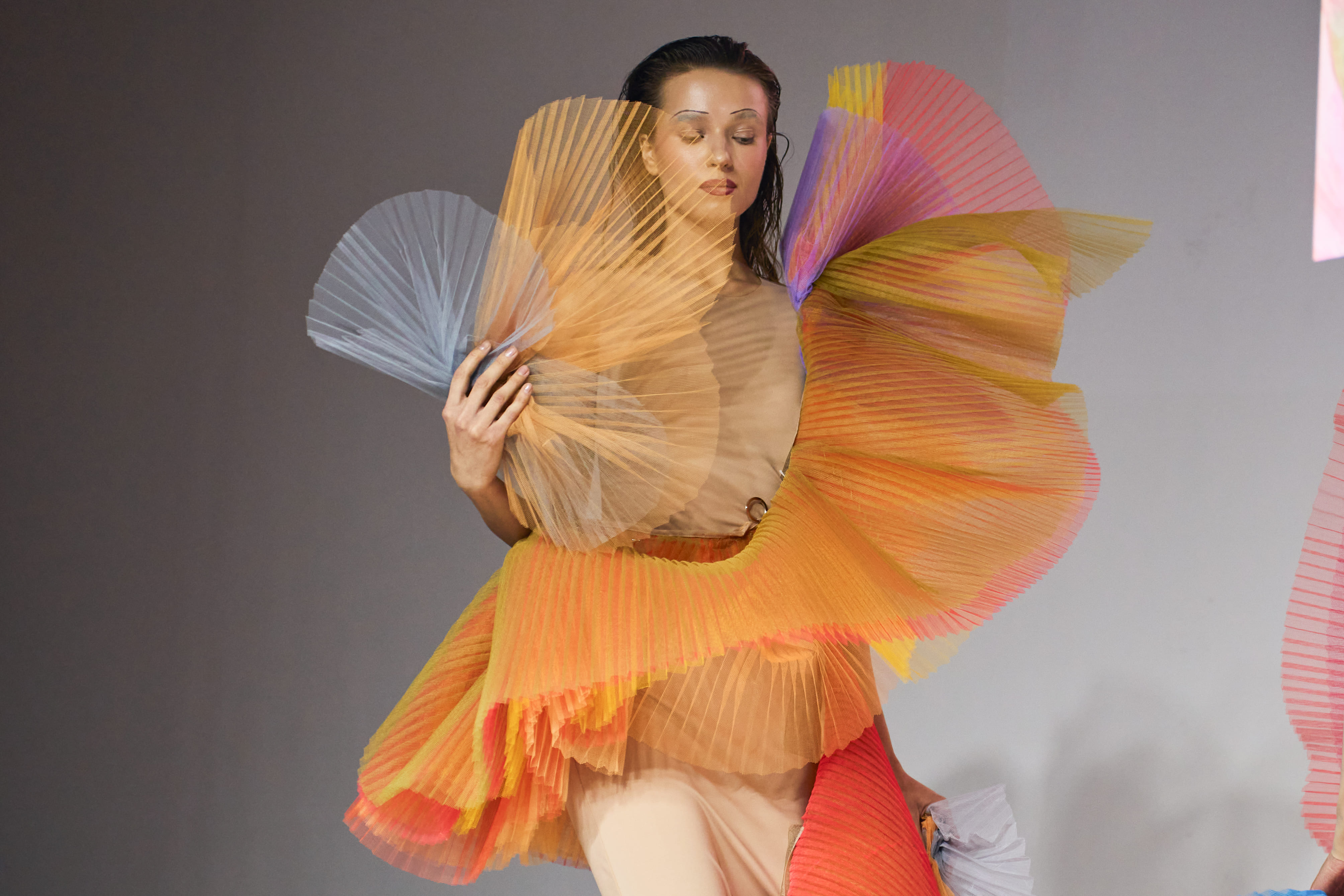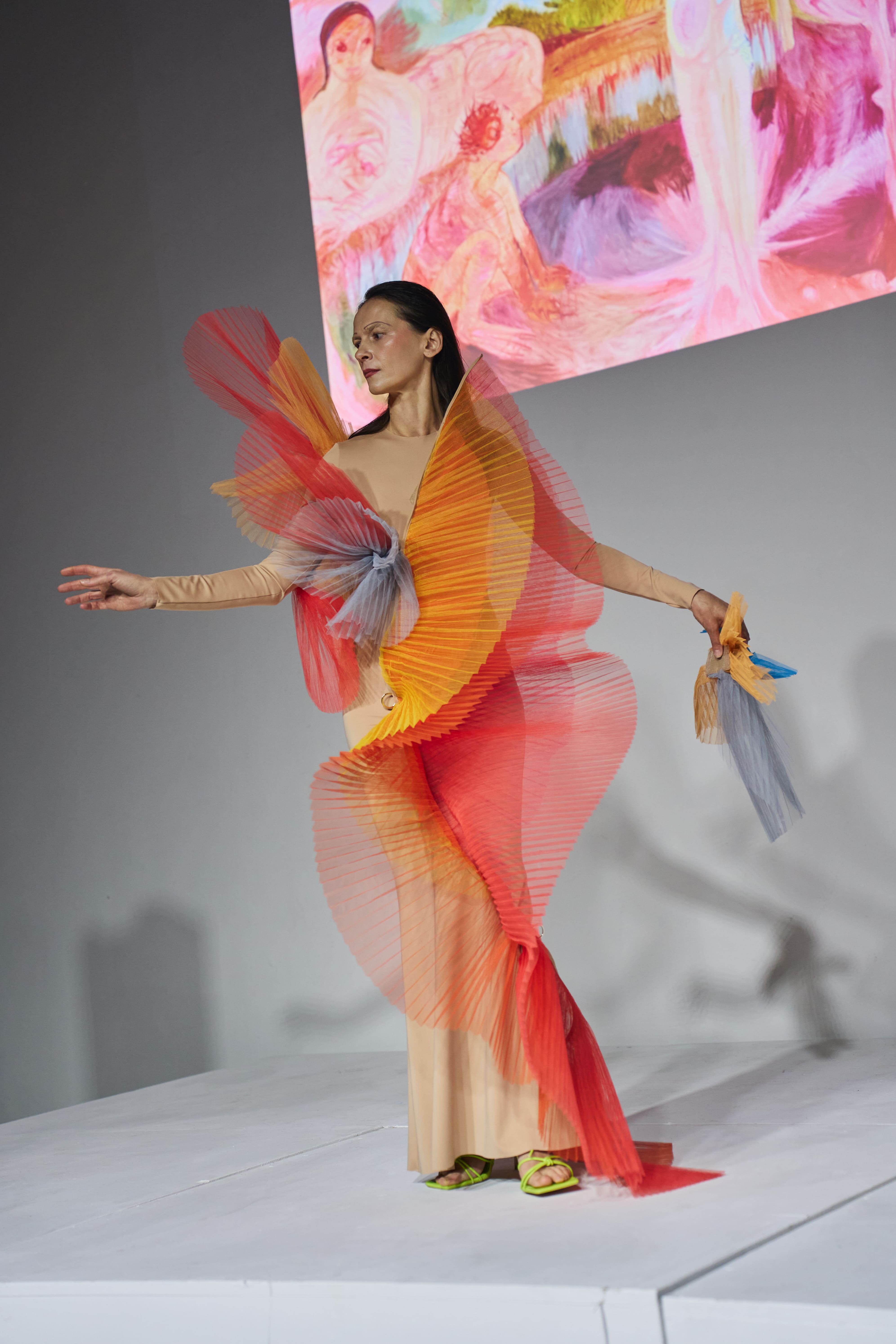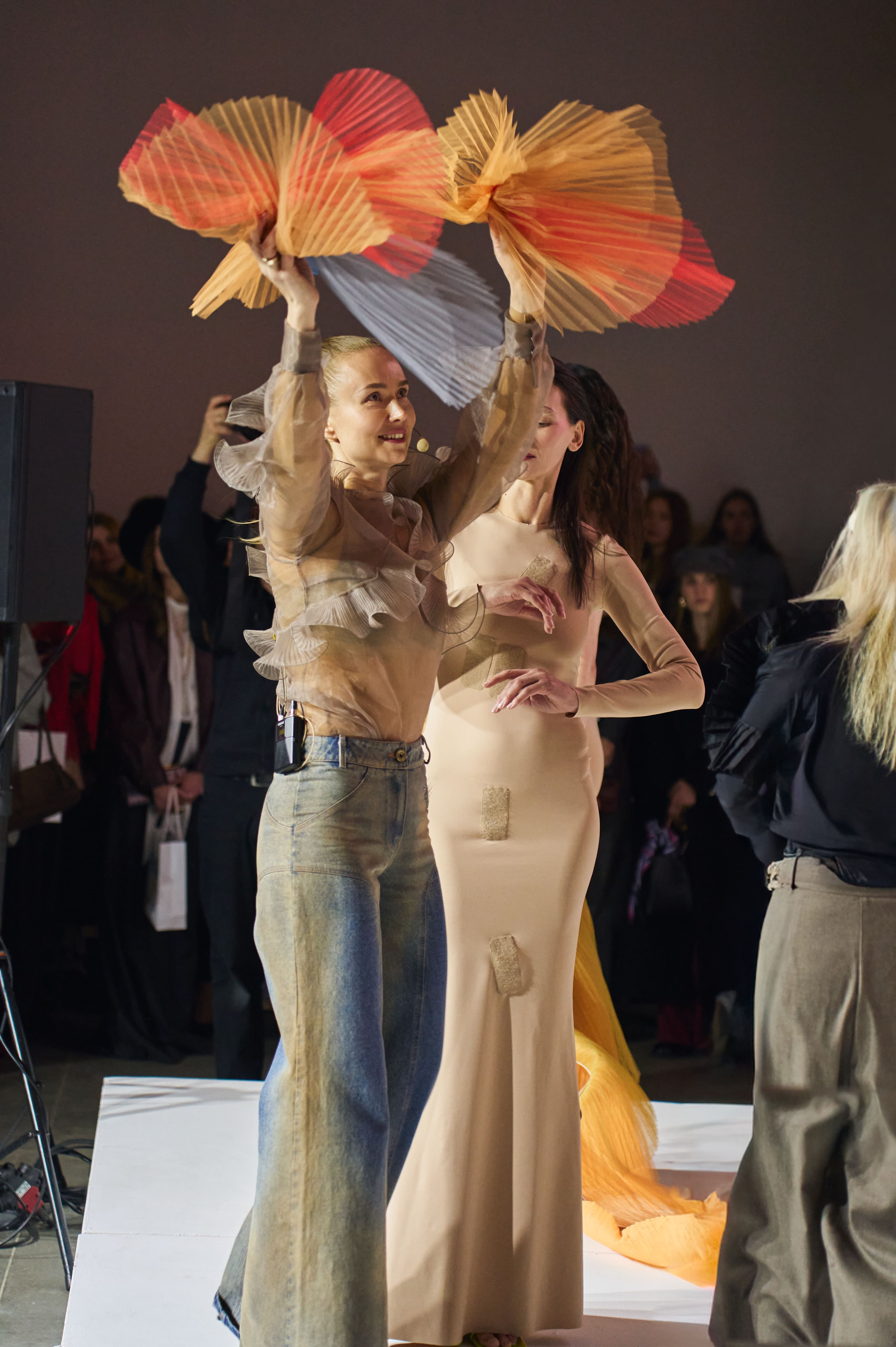 13 березня в Мистецькому Арсеналі в рамках Ukrainian Fashion Week дизайнерка Надя Дзяк представила авторський артперформанс ROOTS OF LIGHT. Подія відображала процес трансформації - від художнього образу до одягу і до артоб’єкта. Під час дії елементи колекції поступово змінювали свою функцію і ставали частиною просторової інсталяції. Через пластику тканини, геометрію, світло та звук дизайнерка досліджувала момент, коли мода переходить у площину художнього жесту.