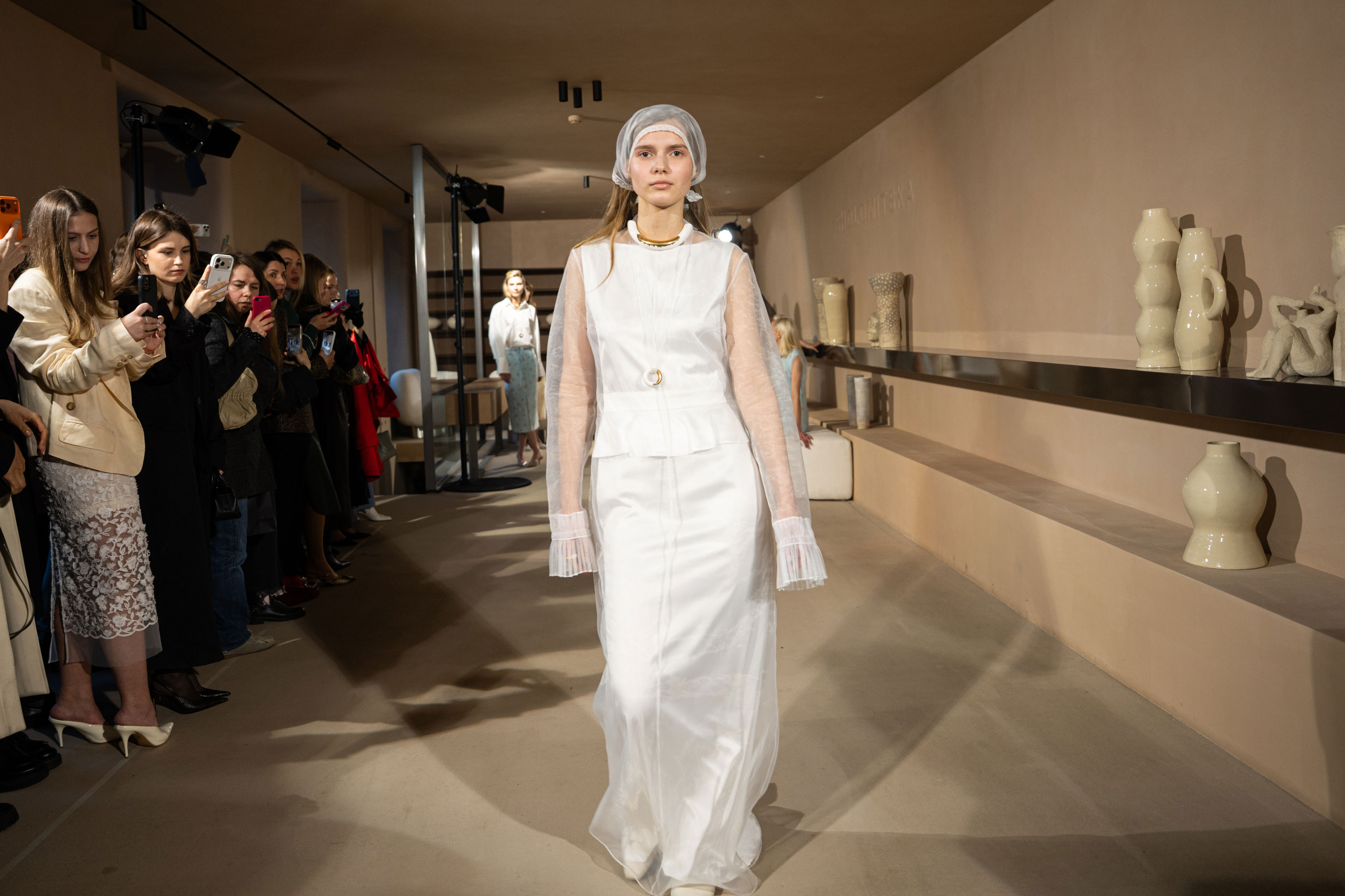 Перший день UFW завершився в бутику the COAT by Katya Silchenko. Під час камерного прескоктейлю гості змогли ближче познайомитися з новою колекцією бренду та розглянути її в деталях. В основі образів – діалог історичного костюма та сучасної конструкції. Говорячи про форму, креативна директорка бренду Катя Сільченко зазначає: «Для мене виділяється два конструктивні «герої» колекції. Перший — тренч із трансформованим Medici collar (скульптурним коміром), переосмисленим у сучасній, функціональній формі. (До речі, це моє друге повернення до родини Медічі, але на цей раз взяла елементи інших їхніх костюмів). Другий — кейп-бомбер із кулеподібною, бафовою формою, зібраний у верхній частині, із силуетом cocoon. Комір тут високий і сучасний, тоді як сама форма має історичний характер».