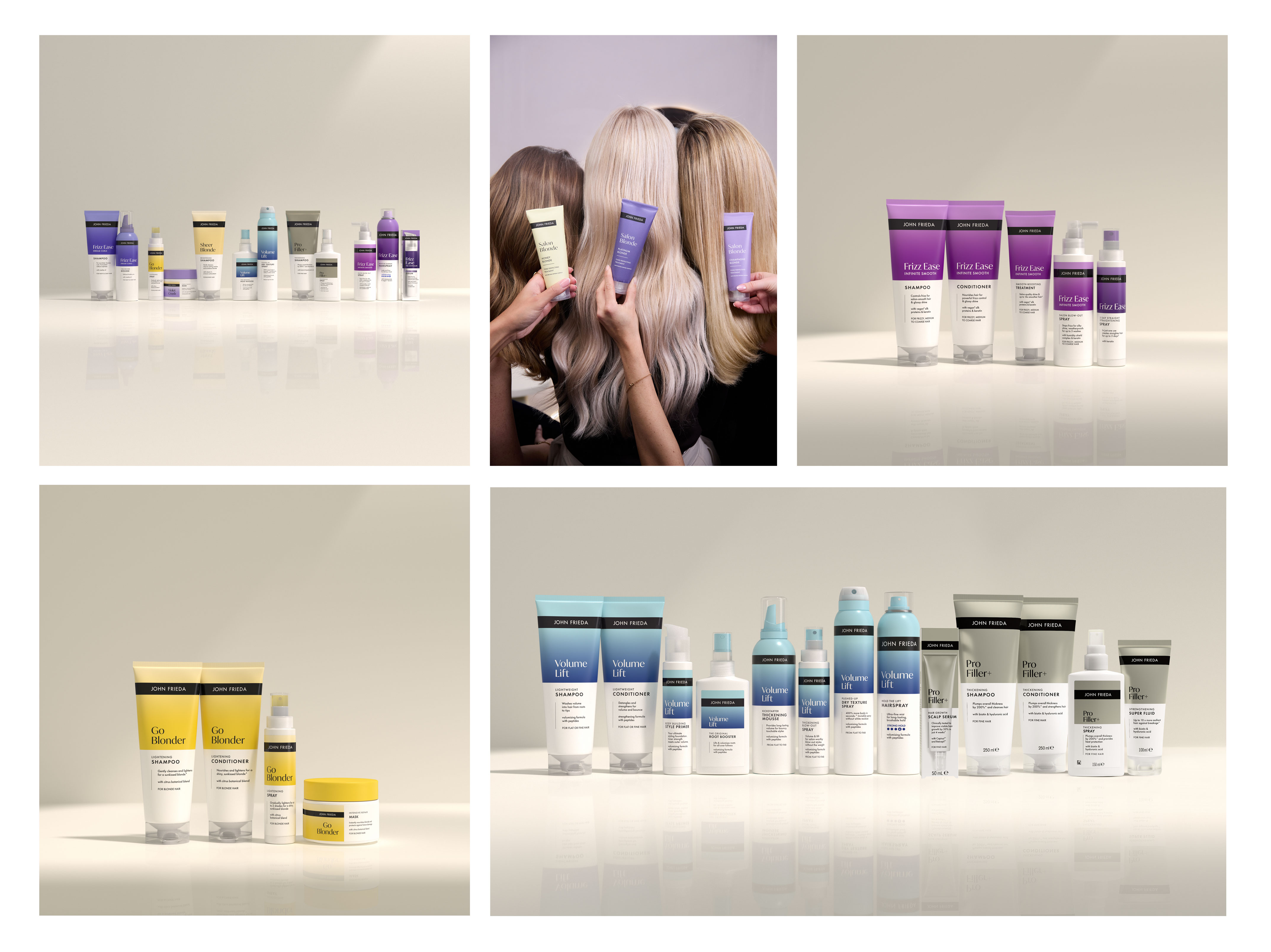 Редизайн упаковки став ще одним важливим жестом бренду. Візуально John Frieda став стриманішим, чистішим і більш преміальним, але за цією естетикою стоїть і практичний зміст: менше матеріалів, краща придатність до переробки та продумана зручність у щоденному використанні.