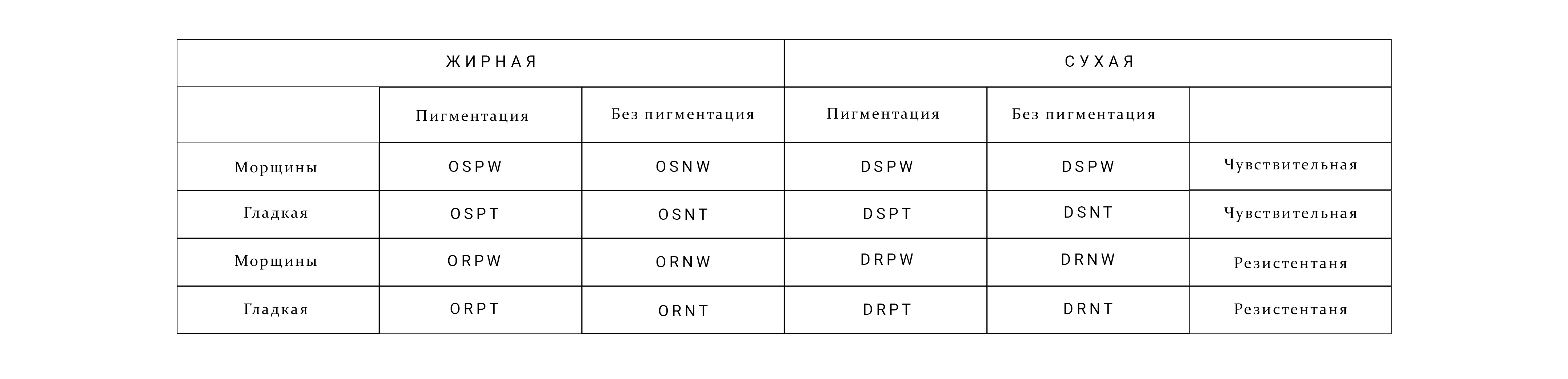 Но как быть, если нужного специалиста нет? Предлагаю разобраться в этом вопросе с помощью классификации дерматолога, профессора из США Лесли Бауманн. Данная классификация поначалу сложна для понимания и требует определенных усилий и времени. Но она способна наиболее полно раскрыть картину.