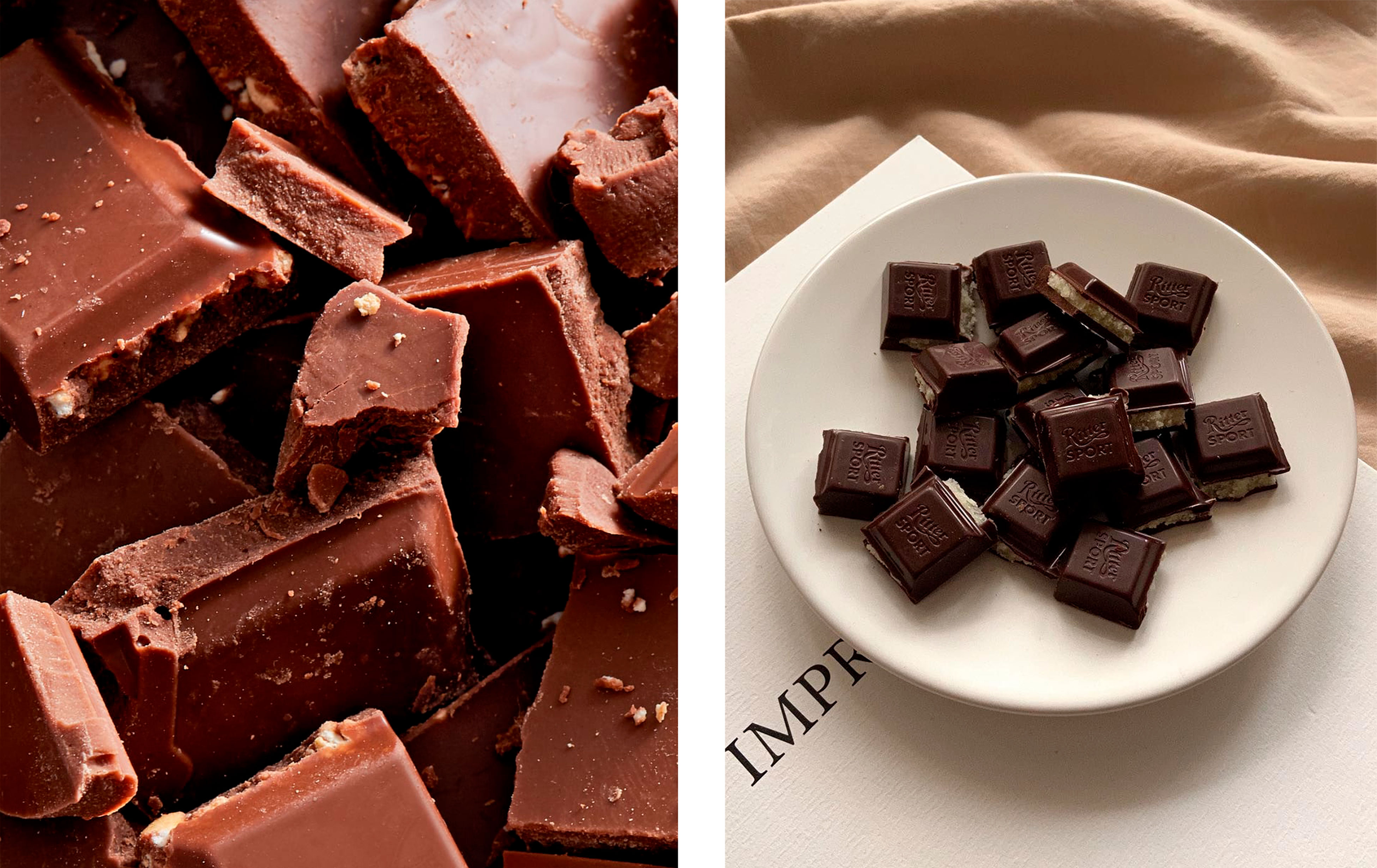 Для здоровья будет лучше черный, а не молочный шоколад. В нем больше флавонолов, растительных нутриентов, которые могут уменьшить уровень сахара в крови и количество жира в организме. Лайфхак в том, чтобы не открывать плитку, а покупать ломтики в индивидуальной.