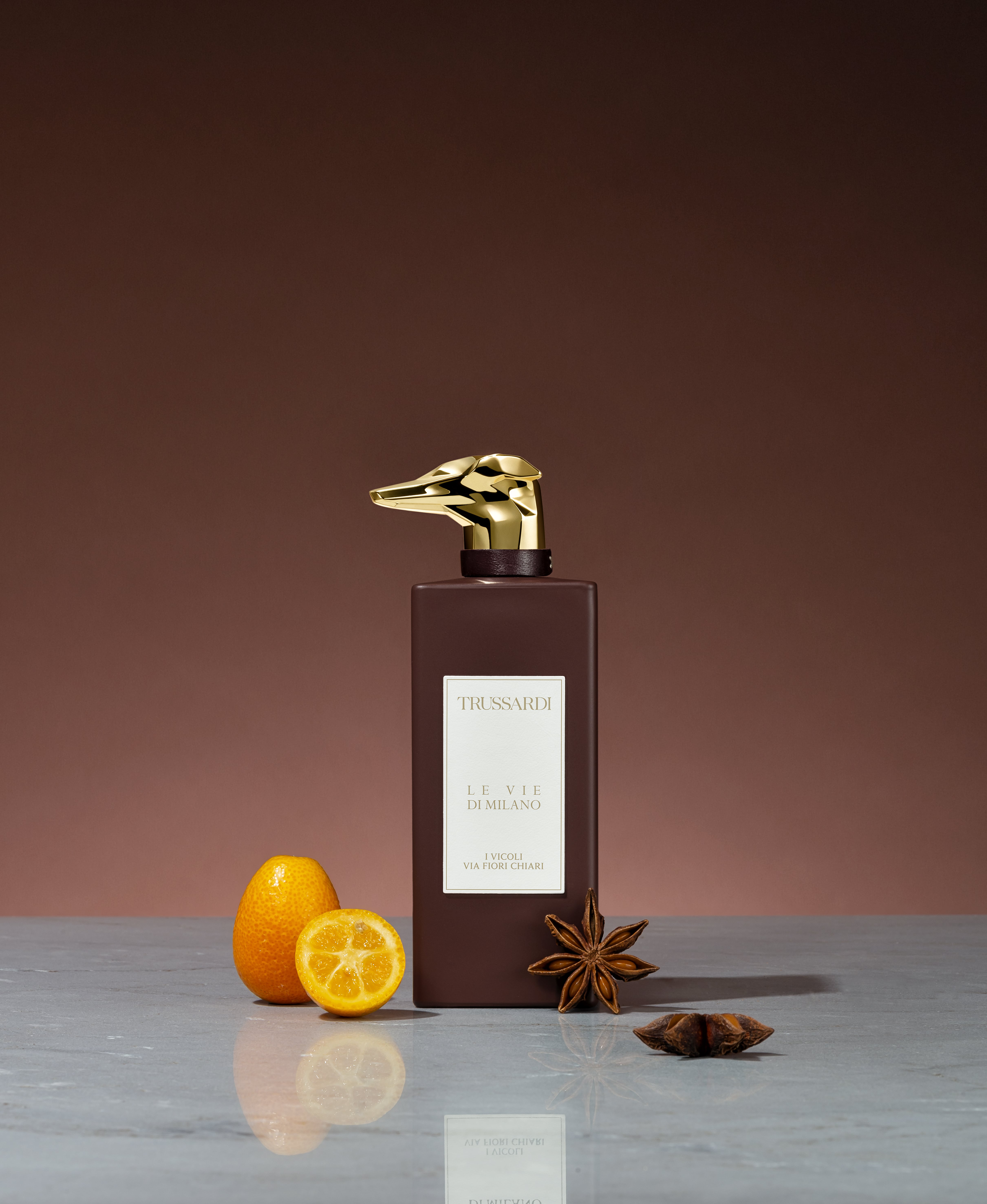 Ритм міста, його райони, архітектура та жителі надихнули команду парфумерів бренду Trussardi створити унісекс-колекцію ароматів на честь Мілана — #Le_Vie_di_Milano. 6 композицій створюють ольфакторну мапу італійського міста. Для кожного флакону розроблено окремий колір, який має підтекст, а на боковій стороні упаковки є приховані золоті символи-асоціації, пов’язані з ароматом. Наприклад, палаццо Віа делла Спіга в перспективі, арка Порта Нуова, інтер'єр Ла Скала, лінія склепінної стелі Галереї, колонада фасаду Академії Брера або відбиті шпилі Дуомо.