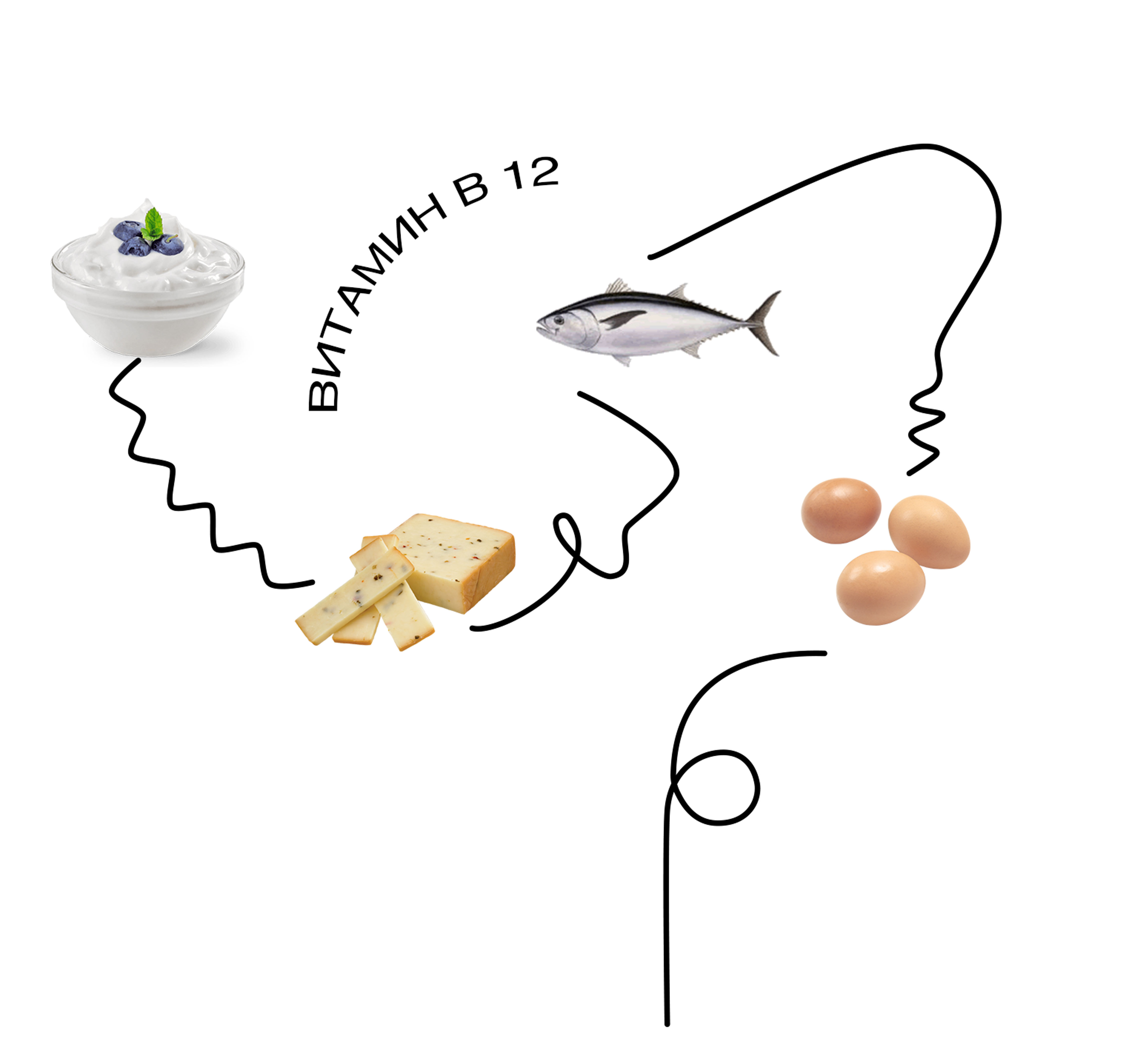 Участвует в образовании красных кровяных телец (эритроцитов), синтезе жирных кислот, продуцировании энергии, отвечает за нервную проводимость и настроение – впрочем, как почти все витамины группы В, а также необходим для синтеза новых ДНК в клетках. Его недостаток грозит психоэмоциональными расстройствами, деменцией, нарушением концентрации, потерей веса и аппетита, слабостью, депрессией, нарушением менструального цикла. Витамин В12 содержится исключительно в продуктах животного происхождения: говядине, свинине, телятине, мясе курицы, рыбе (особенно в тунце), в молоке, сырах, йогуртах, яйцах. Веганам, которые полностью отказываются от таких продуктов в рационе, необходимо принимать витамин В12 в виде добавки.