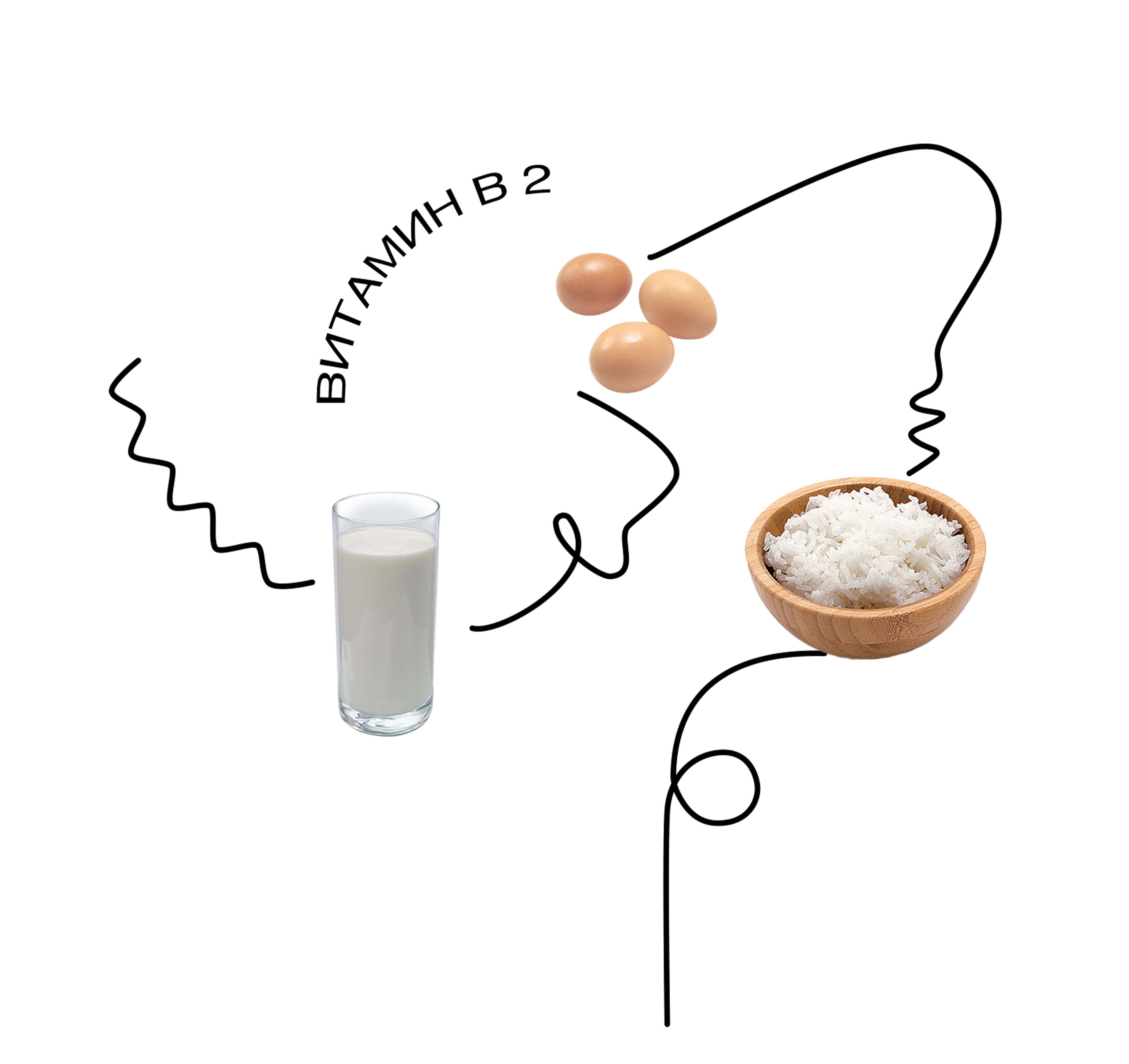Отвечает за прекрасное состояние кожи, зрение, нервную проводимость, силу и энергию. Содержится в молоке, яйцах, рисе. Ультрафиолетовое излучение разрушает рибофлавин, поэтому в идеале эти продукты не должны храниться под прямыми лучами солнца. Суточная дозировка витамина В2 составляет 1,3 мг для мужчин и 1,1 мг для женщин. У него нет депо в организме, поэтому нужно пополнять им рацион ежедневно.