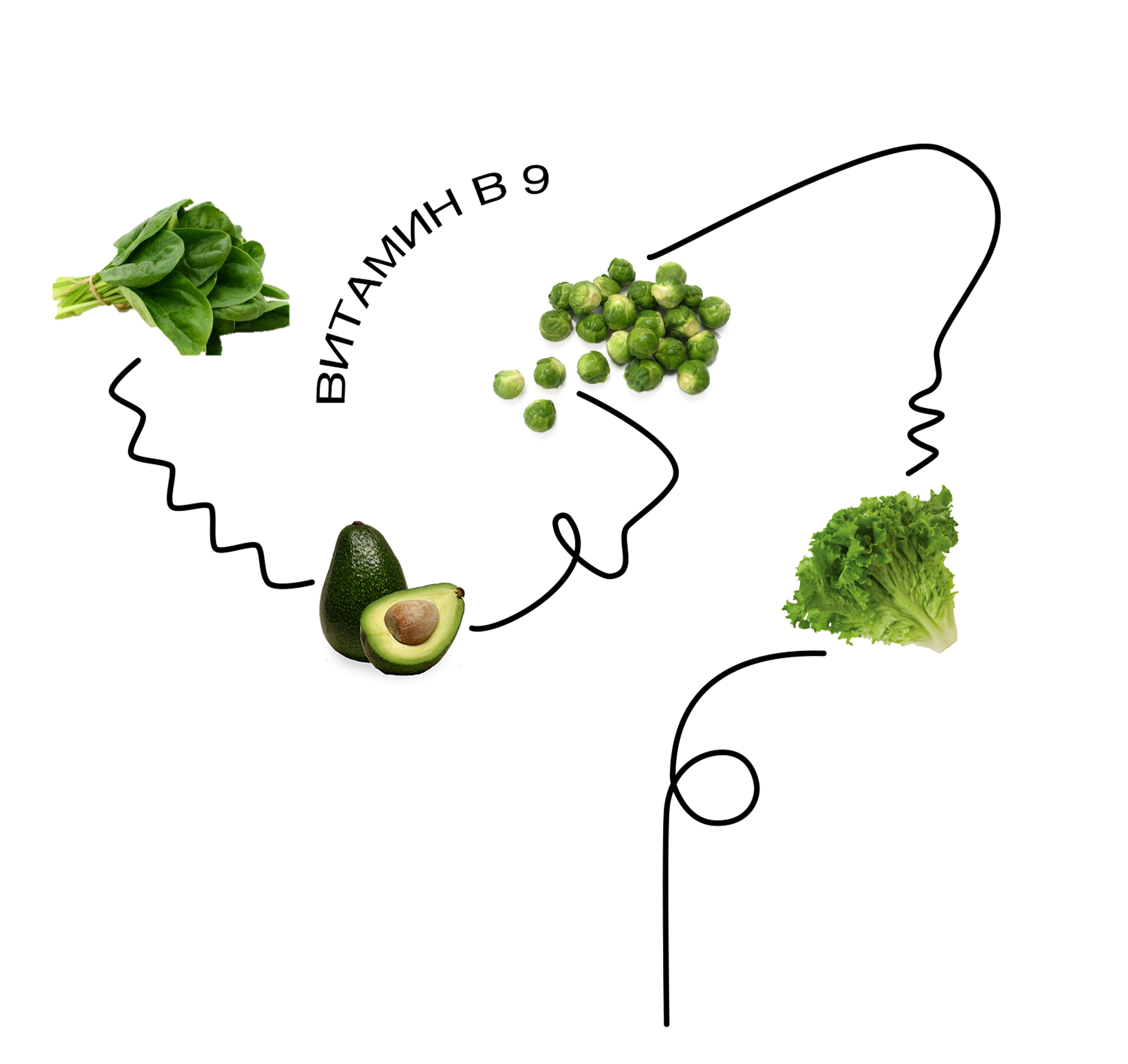 Играет огромную роль в росте клеток и формировании ДНК. Дефицит витамина В9 провоцирует заболевания сердечно-сосудистой системы, анемию, нарушение формирования нервной трубки плода и невынашивание беременности, а также повышает риск возникновения раковых заболеваний. Важно знать, что нашему организму нужна исключительно активная форма фолиевой кислоты – 5-MTHF, в которую обычно трансформируется принимаемый витамин В9. Суточная норма составляет примерно 200-400 мкг. При употреблении фолиевой кислоты с другими витаминами группы В (например, с витамином В6) ее конверсия в активную форму происходит гораздо лучше. Содержится в аспарагусе, авокадо, брюссельской капусте, листовой зелени (латук и шпинат). На протяжении всей беременности дополнительный прием фолиевой кислоты является обязательным.