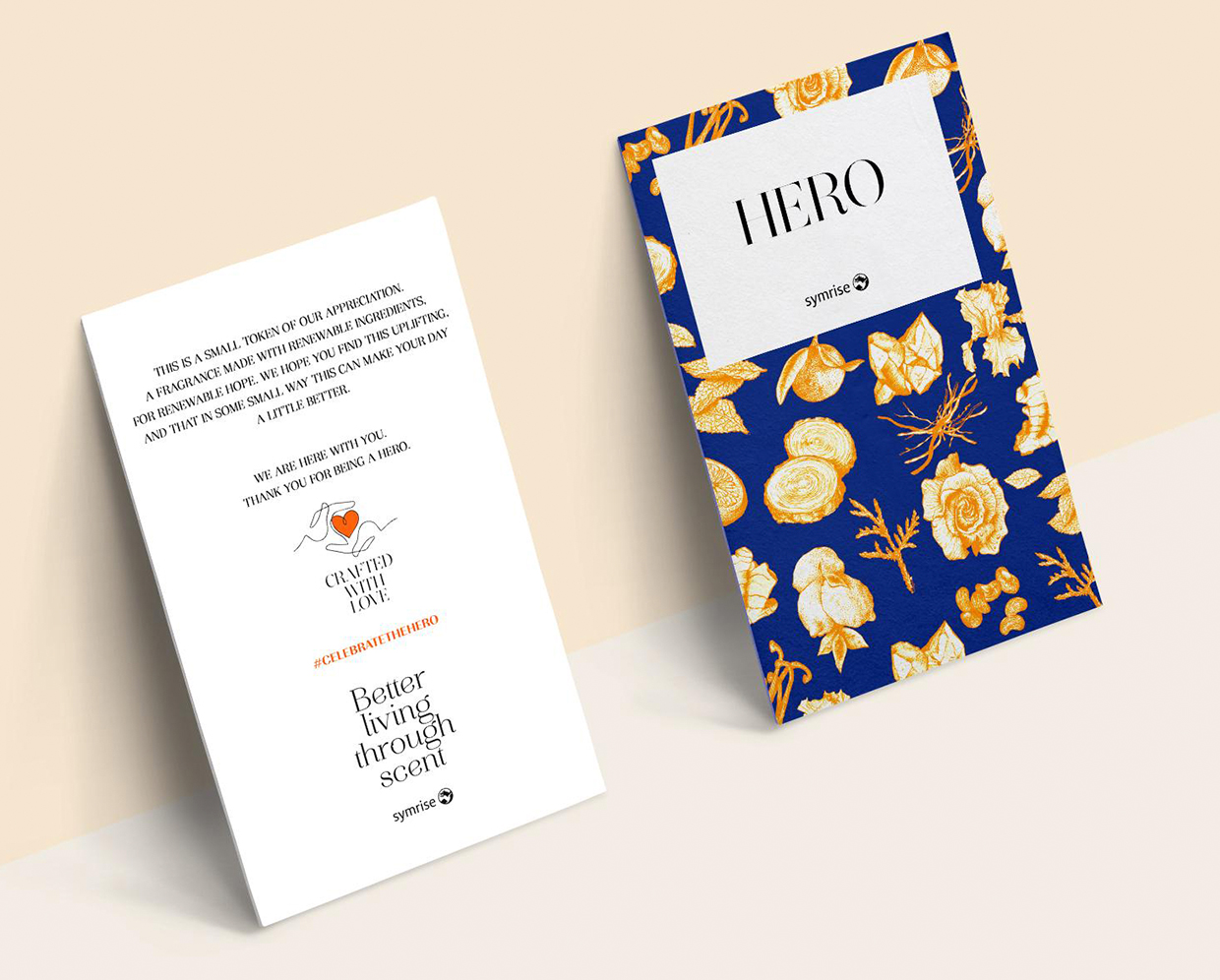 Компания парфюмерных композиций Symrise придумала создать аромат в благодарность врачам, борющимся с COVID-19. Над унисекс-одеколоном Hero работали 19 парфюмеров из разных стран, каждый из которых внес свою ноту в аромат. В основе аромата мускус, ваниль, бергамот, ноты мадагаскарского мандарина, розы, ириса и имбиря. Композиция также разбавлена аккордами мяты, имбиря, сандалового дерева, ветивера и кипариса.