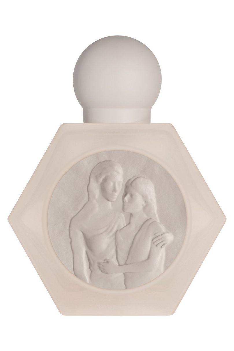 Дизайн флакона выполнен в пудровом оттенке с изображением матери и дочери.