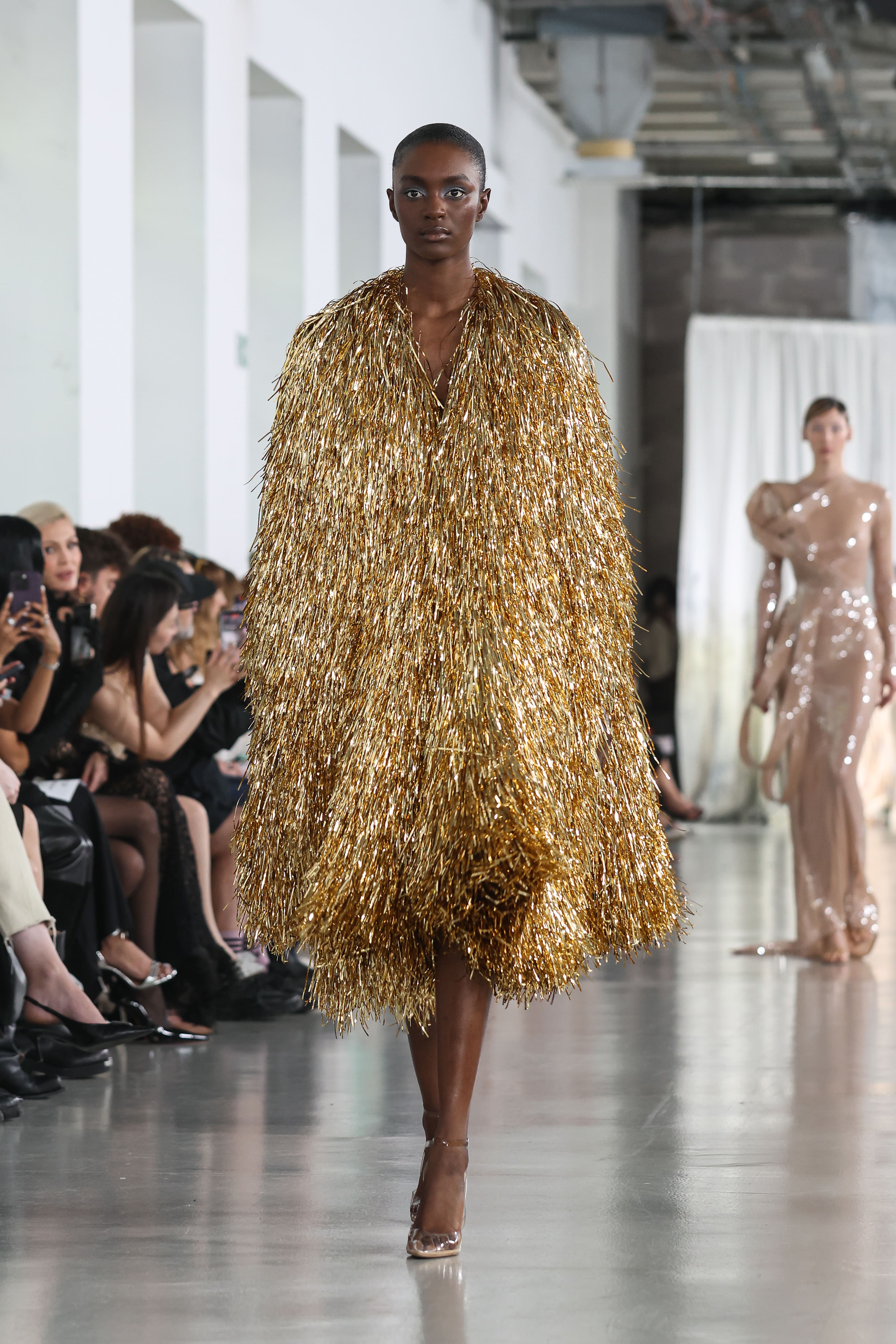 Безперечно, золотий кейп. Ми працювали над ним понад три місяці. Кожна золота нитка впліталася вручну. Він водночас нагадує броню й прозору пелену. У ньому — баланс сили та вразливості, який став однією з центральних тем колекції.