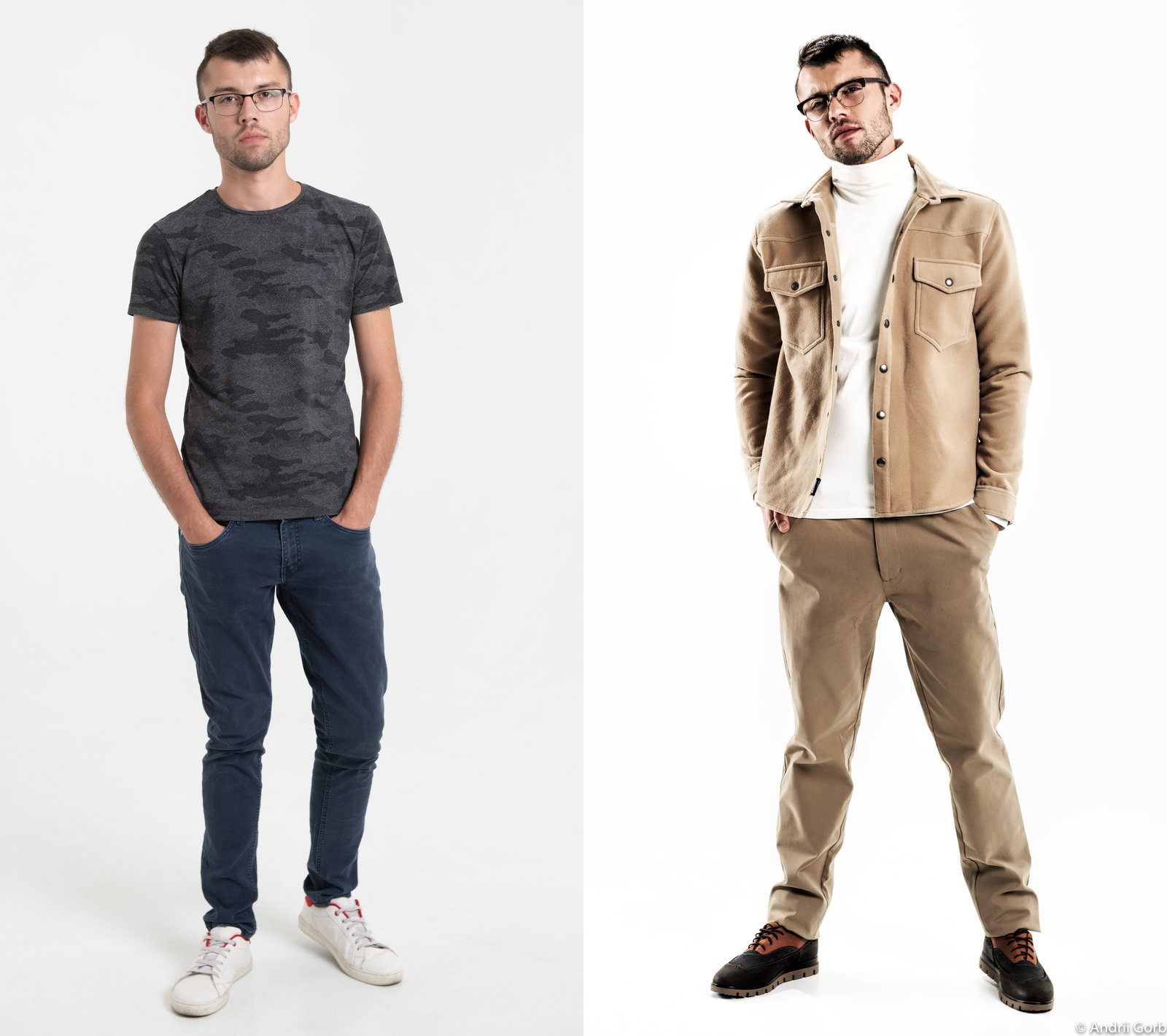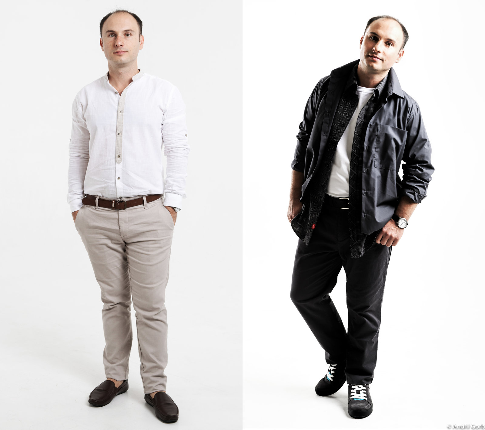 На Юрии: Брюки SEVEN MOUNTAINS, рубашка однотонная Duck Side, рубашка в клетку Truman, туфли Duck Side, ремень ANJEY&ALEX