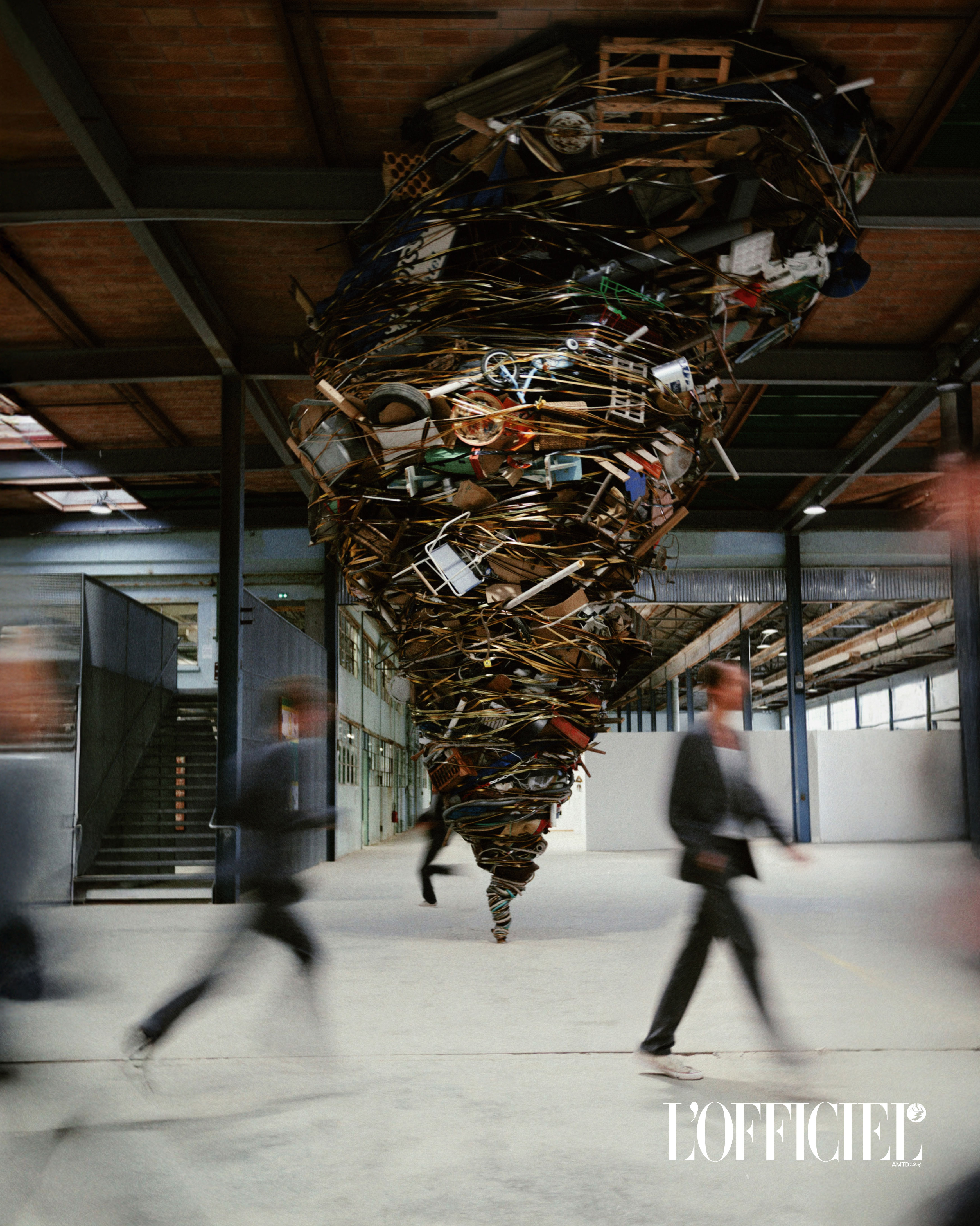 Костюм з вовни, LANVIN Майка, BURBERRY Кеди, CONVERSE. José Yaque, Interior con Huracиn, 2024. Exhibition views Galleria CONTINUA Les Moulins. ADAGP Paris, 20