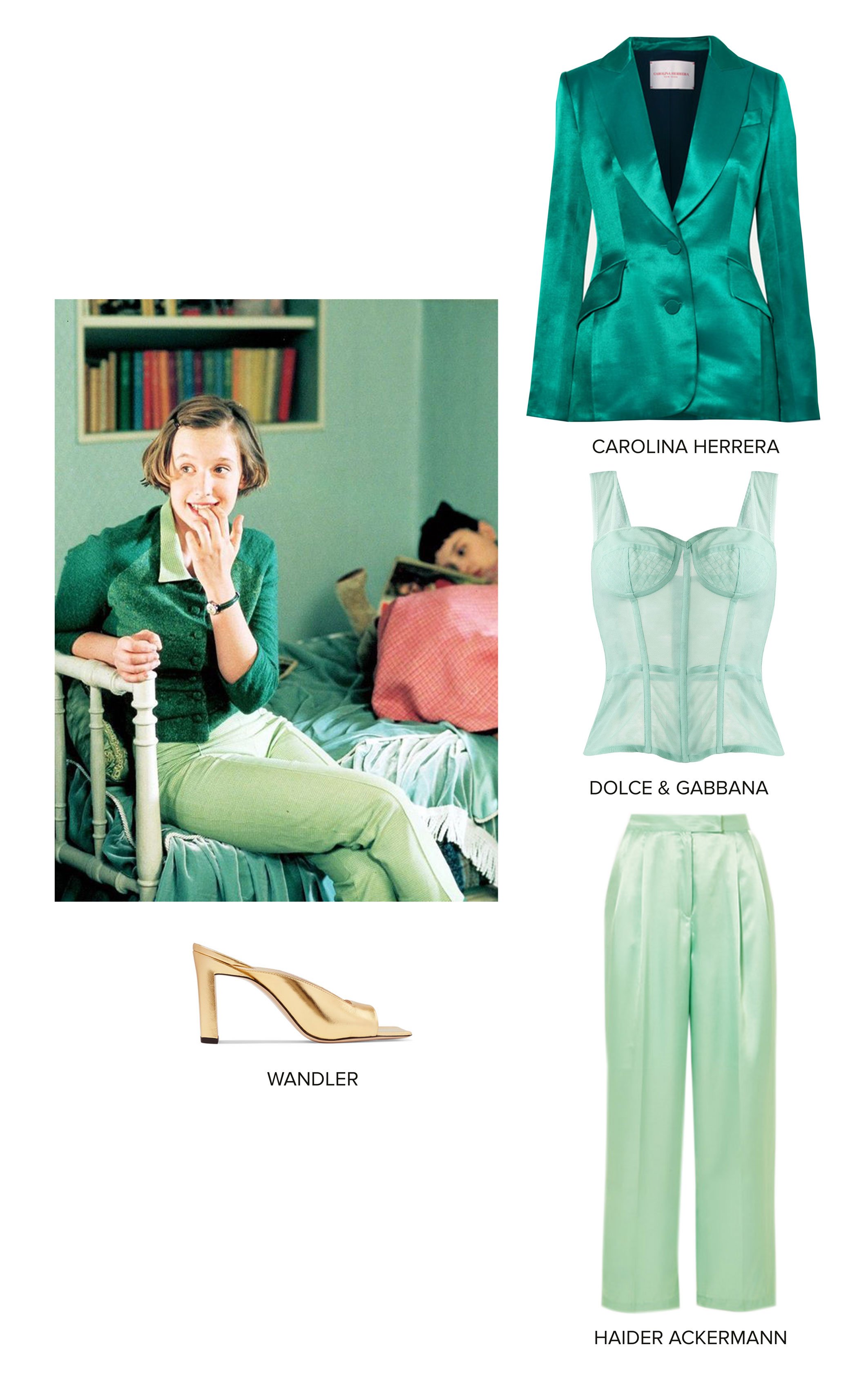 Образ старшей сестры Кэтрин выстроен нарочито девичьим: короткая челка, аккуратные воротнички, конфетно-розовые или пурпурные наряды с непременными пышными юбками делают её миловидной и преувеличенно инфантильной. Однако секрет Сюзон один из самых порочных. При всей утрированности образа героини Виржини Ледуайен повторить его в более современном и уместном ключе не составит труда. Главное — выбрать менее пышную юбку и разбавить насыщенную фуксию более сдержанными пудровыми оттенками.