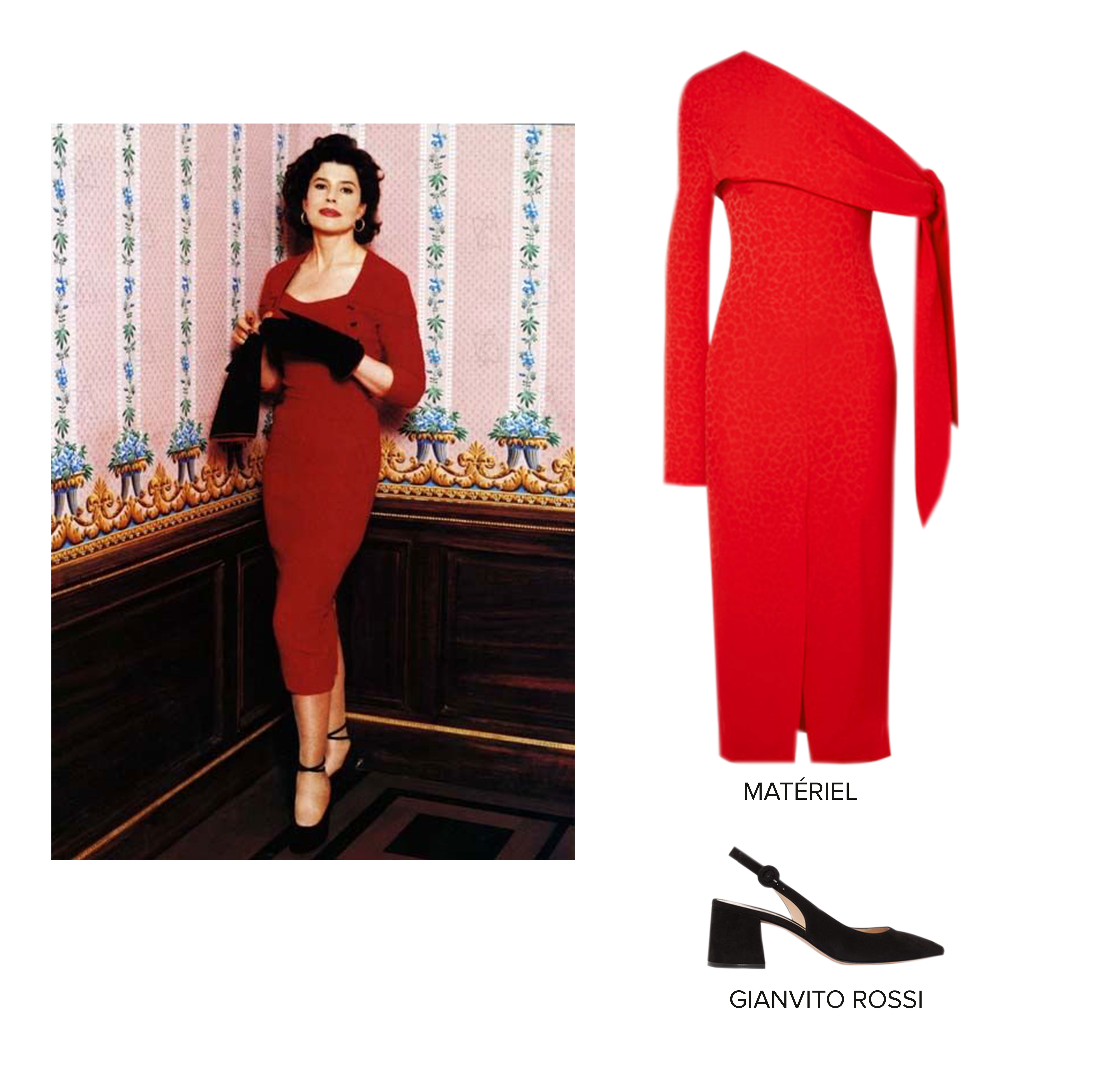 Роковая женщина, сестра умершего героя, Пьеретт обладает тайнами, кажется, поболее остальных. Такое впечатление производит её появление в доме — ночью, тайком от всех. Дополняют эффектный персонаж красное платье, черный плащ с красной подкладкой, уложенные крупными локонами волосы и кровавая помада. Такой образ пригодится для вечера с дресс-кодом black tie и creative black tie.