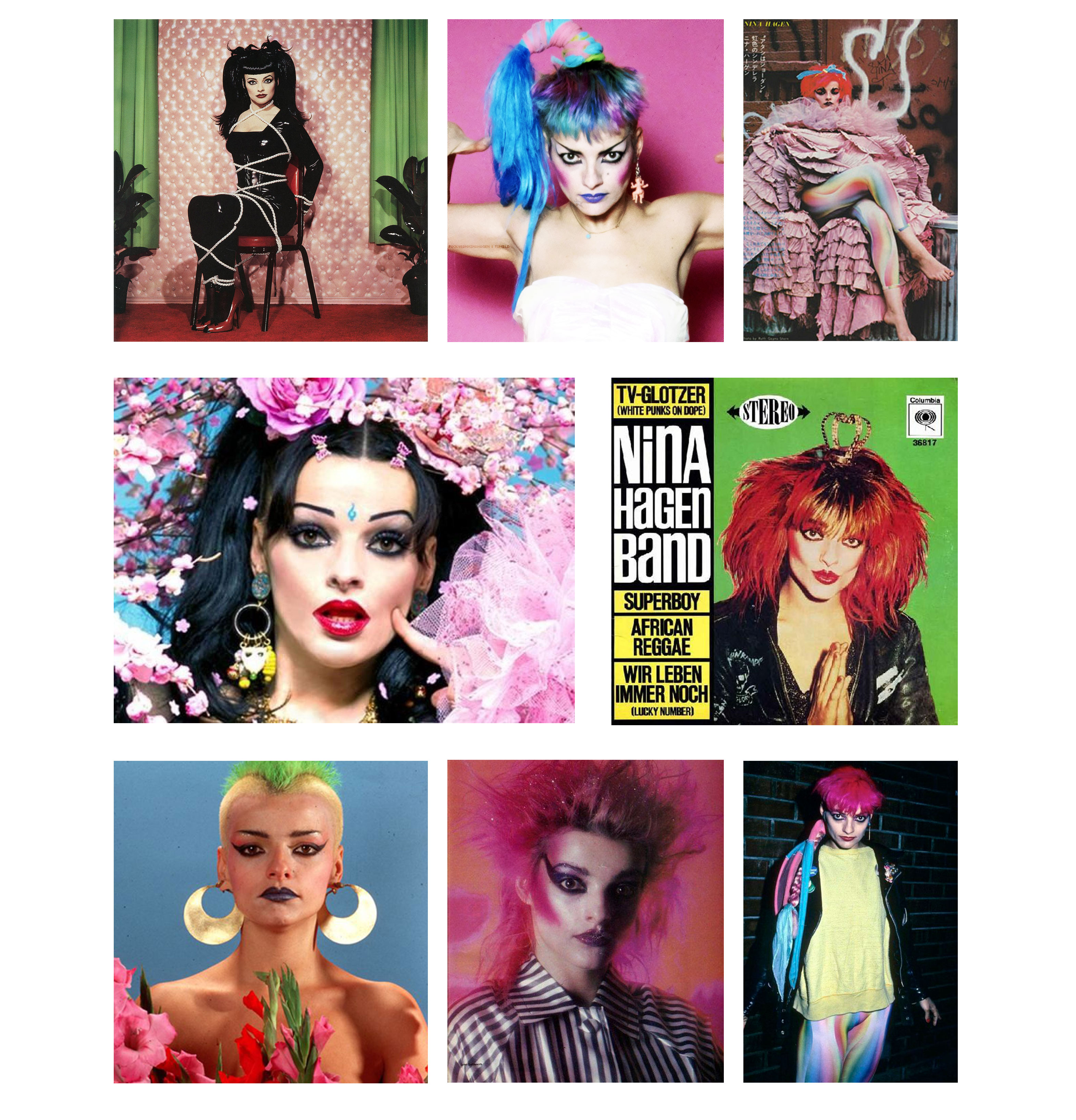 Нина Хаген родилась 11 марта 1955 года в тогда еще Восточном Берлине. Её по праву называют крестной матерью немецкого панка, однако в юности Нина считалась оперным вундеркиндом, обладая уникальным вокалом в 4 октавы, и снималась в кино. Свою группу Nina Hagen будущая панк-рок-икона создала еще в 70-х, однако вскоре, обосновавшись в Западном Берлине, начала сольную карьеру. С тех пор как остроумная, шокирующая и талантливая артистка стала появляться в ТВ-шоу, активно пропагандируя защиту прав животных, свободу женской сексуальности и право открыто выражать свое мнение, пусть это даже рассказы об инопланетянах или самоудовлетворении, внимание на её персоне заострилось. Образ Нины оказался той концентрацией свободы, фантазии, неугомонного креатива и эротизма, которая сообщала окружающим: нет никаких рамок и преград для выражения себя и своей индивидуальности. Имидж Нины стал своего рода манифестом феминизму и свободе, естественным образом происходящим из внутреннего, а не просто внешней сценической упаковкой.
