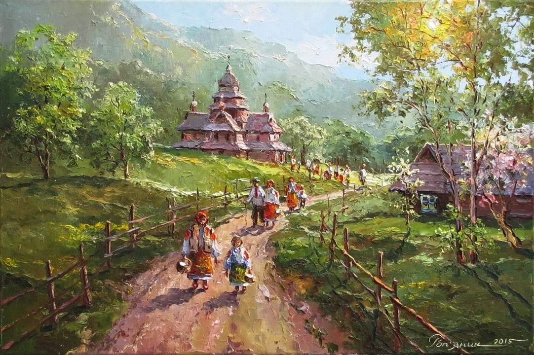 Великдень — одне з головних свят року для українців, що об’єднує їх у колі найближчих і найрідніших та в супроводі традицій. Тож він органічно відобразився у творчості українських живописців — крізь десятиліття й століття. І не лише сам Великдень: митці зображували також важливі дні, що передували йому, як-от Вербну неділю або ж Чистий четвер.