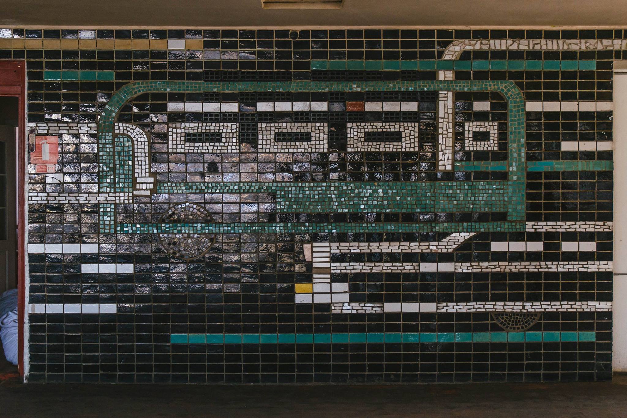 Панно «Перетин» в інтер’єрі Київського центрального автовокзалу до реновації. Автор фото — Д. Соловйов (джерело — Ukrainian Modernism)