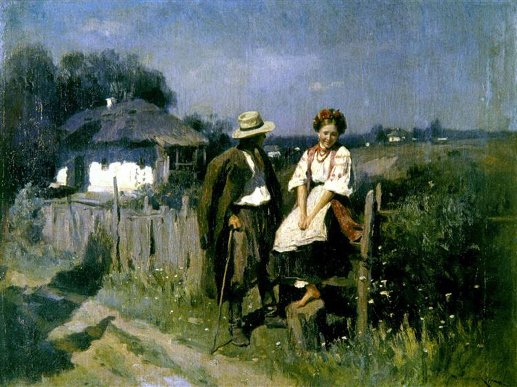 Майстриня «наївного мистецтва» Марія Приймаченко поміщала своїх закоханих поміж казкової природи. Шістдесятник, творець української неосецесії Віктор Зарецький звертався до еротизму, а Микола Пимоненко у властивій йому реалістичній манері змалював сцену побачення з зашарілою дівчиною в національному строї на початку XX століття.