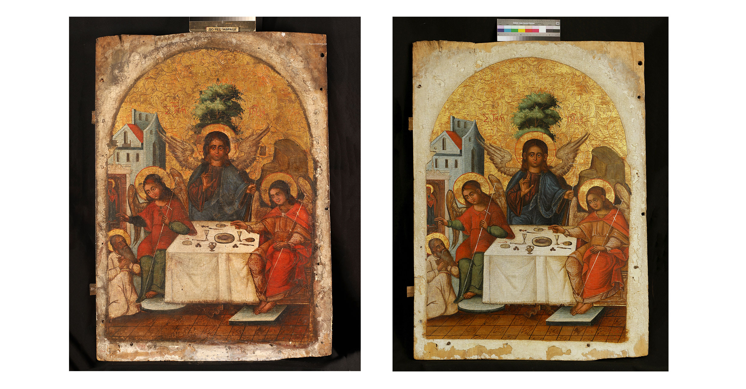 Я працювала над реставрацією чотирьох ікон: «Апостол Фома», «Хрещення», «Усікновення голови Георгію» та «Трійця». Особливо цінною є ікона «Трійця» з центрального ряду іконостасу, адже на ній добре зберігся авторський підпис у нижньому правому куті. Для мене велика честь і вдячність, що саме цю роботу довірили мені як фахівцю.