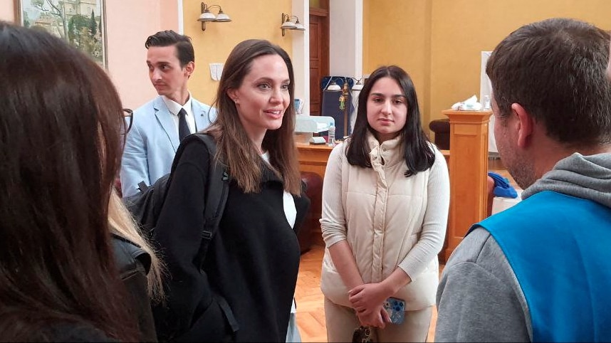 У 2022-му році Анджеліна Джолі прибула до Львову, де поспілкувалася з дітьми, постраждалими від ракетного удару в Краматорську. Також знаменитість зустрілася з лікарями місцевого медзакладу, волонтерами та сиротами, які були евакуйовані з прифронтових частин України. Джолі відвідала Львів з власної ініціативи — за словами офіційного представника ООН Метта Солтмарша, він дізнався про поїздку акторки з соціальних мереж.