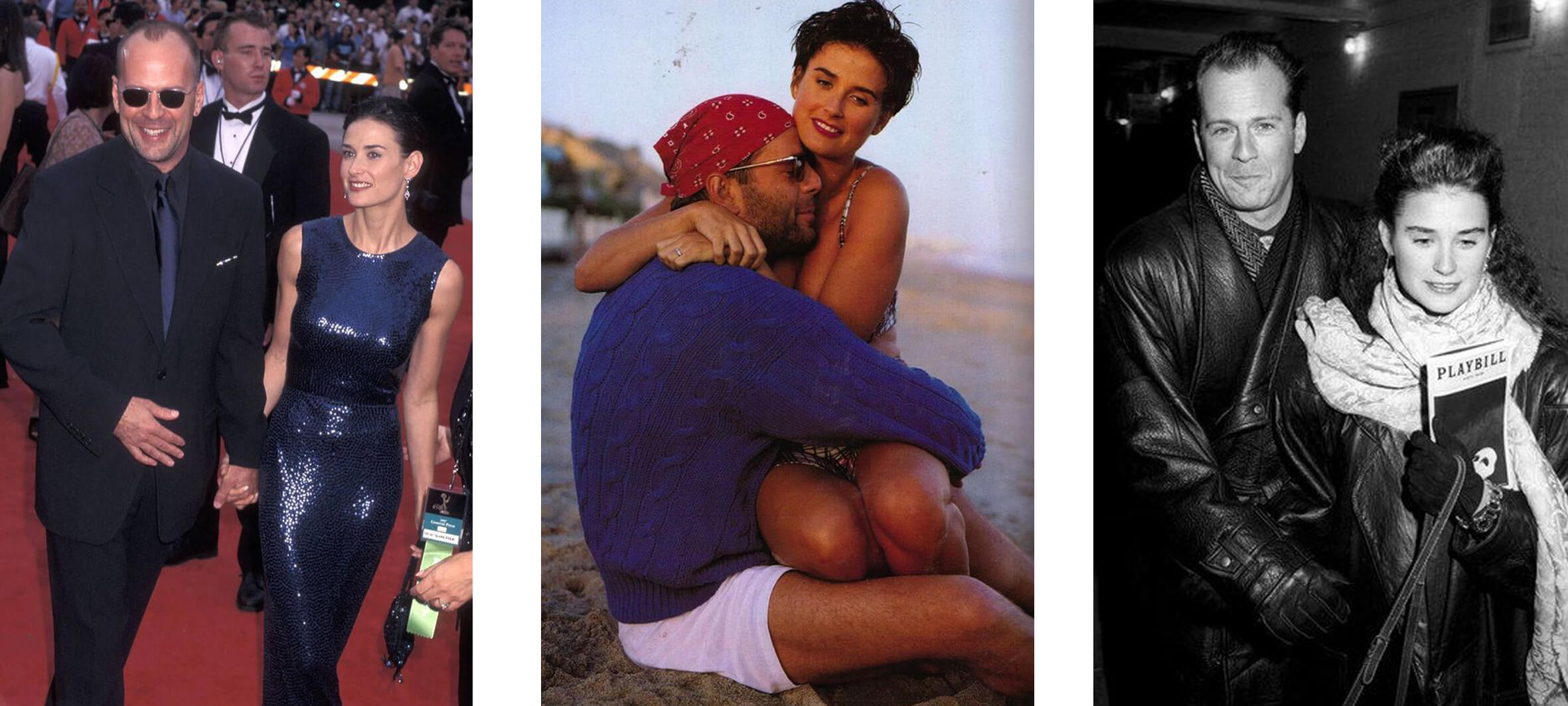 Яким же було здивування журналістів, коли пара спокійно пройшла перевірку першими місяцями стосунків. Демі завагітніла, і на той момент уже подружжя вирішило змінити спосіб життя. Кар'єра до цього тільки підштовхувала — обидва були на злеті. Актори перетворилися на улюблену пару Голлівуду: три доньки, кохання, ось це все. Щоправда, лиха вдача обох взяла гору — через десять років у шлюбі невірність як Брюса, так і Демі вилізла назовні, що призвело до розлучення 1998 року. Варто сказати, що в той момент Мур якраз закрутила роман з молодим і перспективним Лео Ді Капріо.