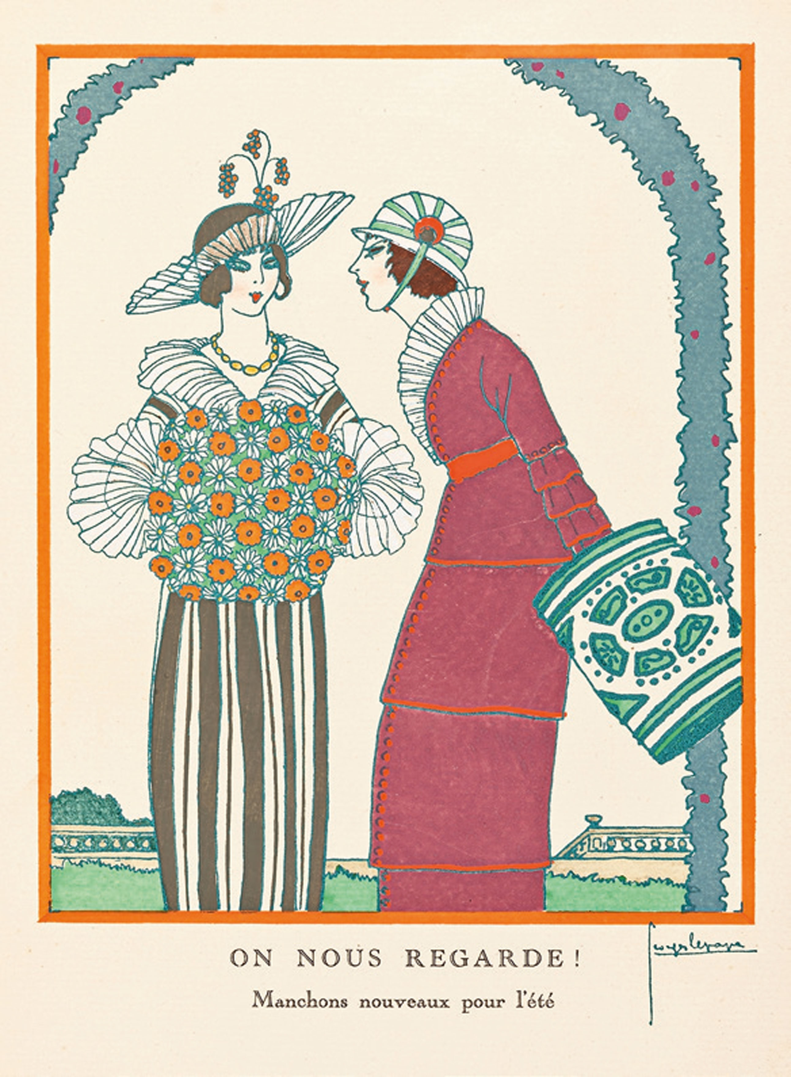 Следующий новаторский виток в развитии модной гравюры сделал культовый французский кутюрье Поль Пуаре. Он первым пригласил современных иллюстраторов для создания каталогов своих платьев. Новая эра началась с его сотрудничества с Полем Ирибом (Paul Iribe), родоначальником стиля ар-деко, иллюстратором, карикатуристом, декоратором.