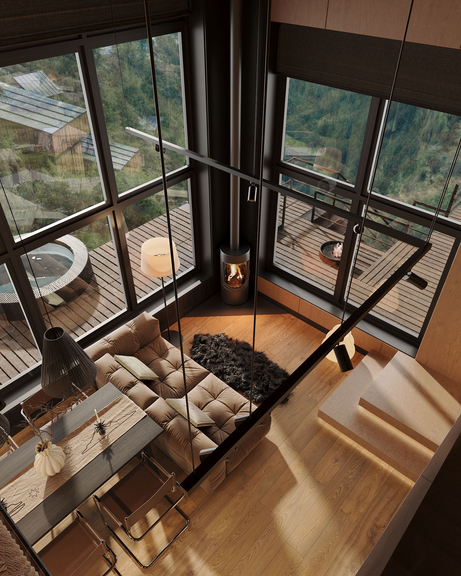 Тут ліс починається буквально за вікном. Панорамні вікна відкривають краєвид на вершини Карпат, та настрій. Ви прокидаєтеся у віллі, де тиша звучить по-особливому; берете в руки теплу чашку кави, приготовлену так, як любите саме ви; а ввечері дозволяєте собі розкіш нічного неба у приватному чані.