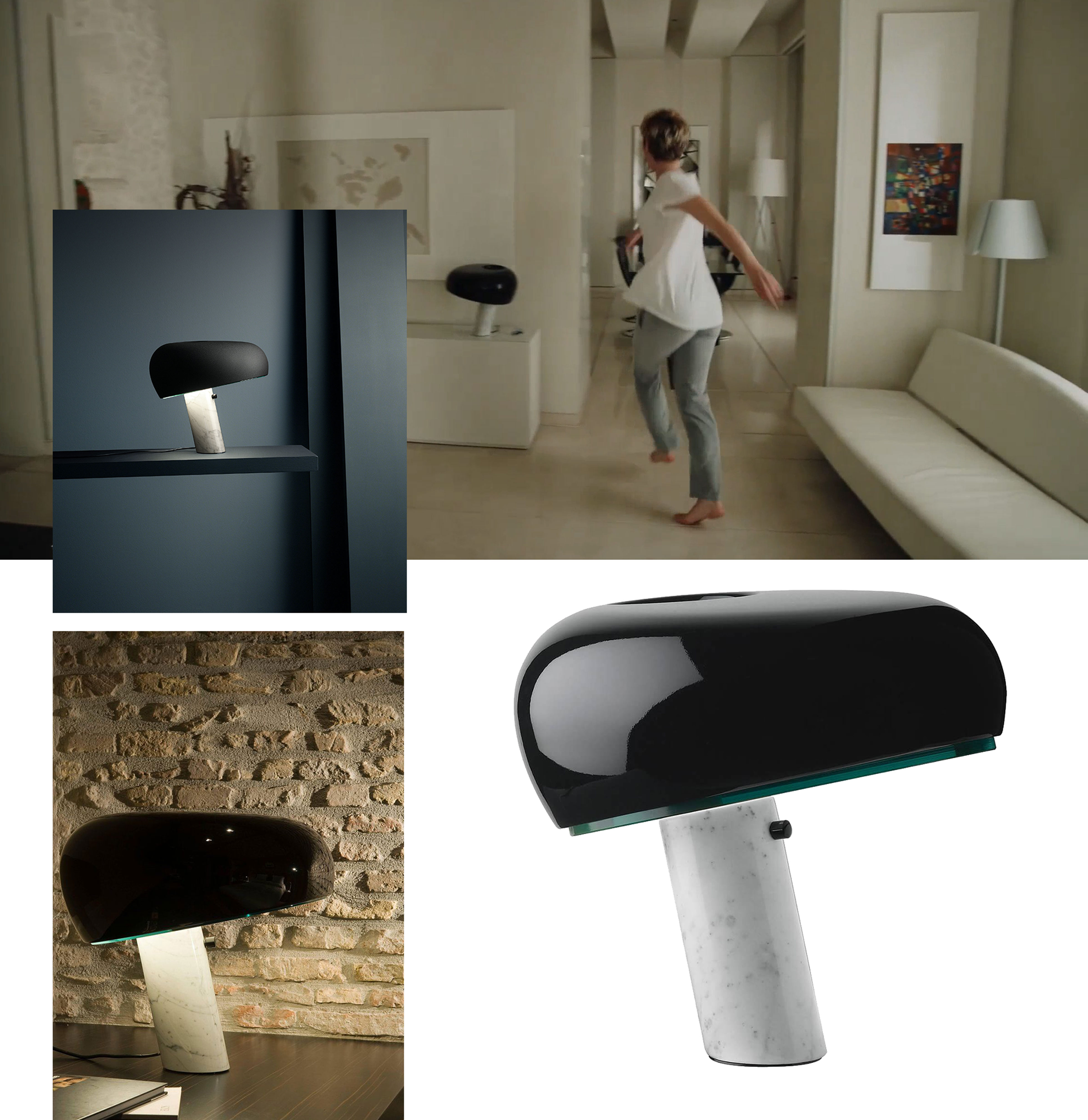 Настольный светильник Snoopy, который стоит на комоде Софии, был создан в 1967 году. Выключатель светильника напоминает нос мультипликационного персонажа — пса Снупи, отсюда и пошло его название. Дизайн разработали Акилле и Пьер Джакомо Кастильони совместно с фабрикой FLOS. Это одна из самых популярных моделей среди подделок на рынке.