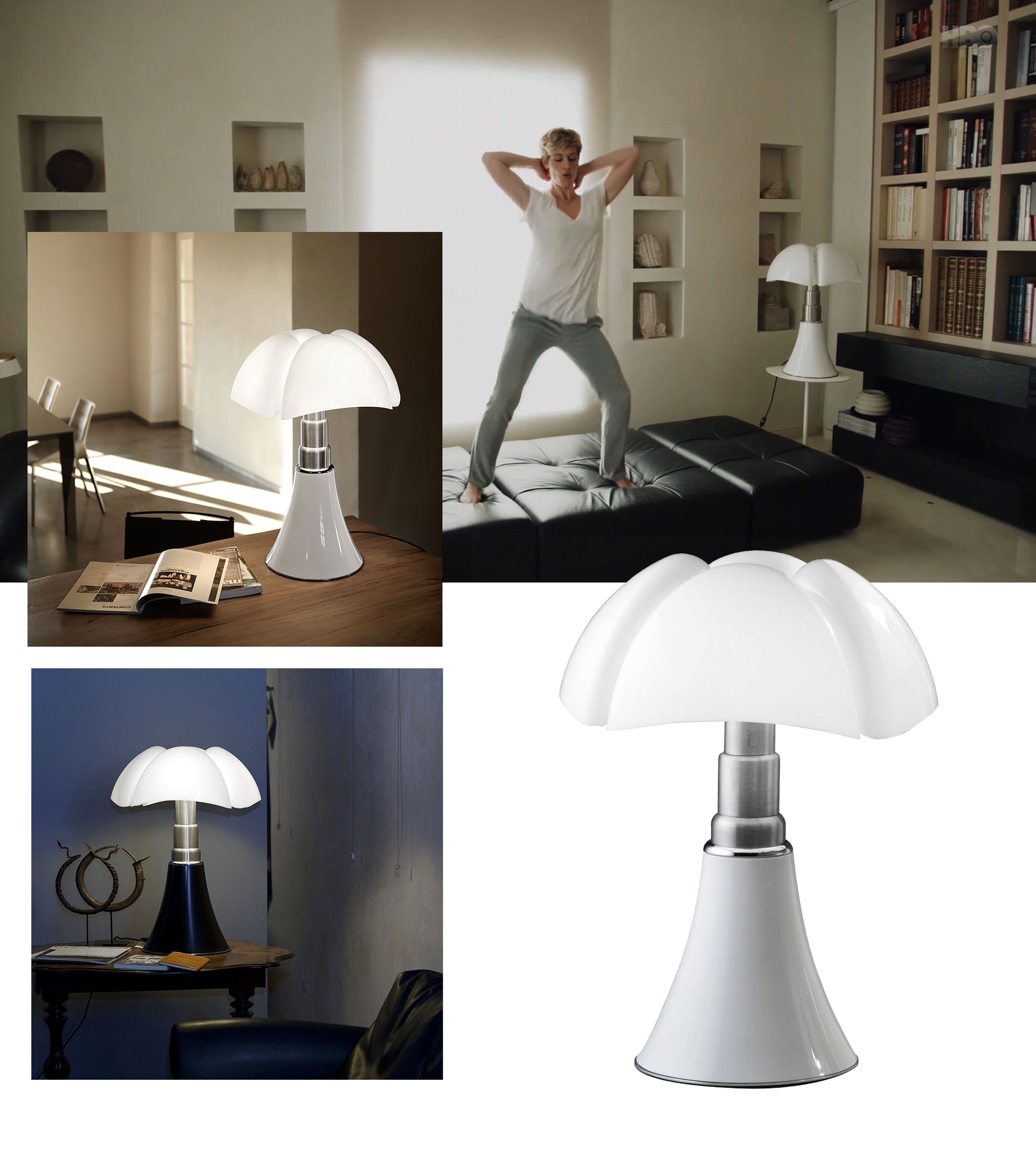 В 1965 году итальянский дизайнер и архитектор Гае Ауленти разработала для компании настольную лампу с цветной алюминиевой основой Pipistrello. В переводе с итальянского модель называется "Летучая мышь", так как форма из матового белого метакрилата, состоящего из четырех секций, напоминает раскрытые крылья ночного животного.